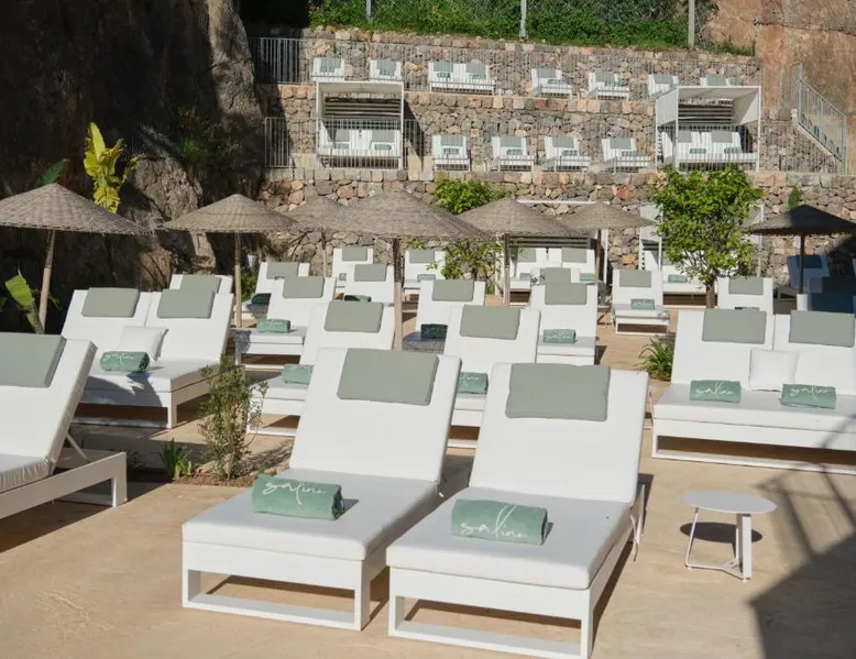 Beachfront Location: Salino Port Soller in Port de Soller offers direct beachfront access with stunning sea views. Guests can relax on the sun terrace or take a dip in the rooftop swimming pool. Comfortable Accommodations: Rooms feature air-conditioning, private balconies, and modern amenities such as free WiFi, flat-screen TVs, and mini-bars. Additional facilities include a fitness center, sauna, and spa and wellness center. Dining Experience: The modern restaurant serves Mediterranean cuisine with a buffet and à la carte breakfast options. Guests can also enjoy a pool bar and coffee shop for refreshments. Nearby Attractions: Playa d'en Repic is just a few steps away, while Palma de Mallorca Airport is 24 mi from the hotel. Other nearby points of interest include Palma Yacht Club and Palma Cathedral. Boasting a private entrance, this air-conditioned suite features 1 bedroom and 1 bathroom with a walk-in shower and a hairdryer. Featuring a terrace with sea views, this suite also features soundproof walls and a flat-screen TV with cable channels. The unit has 1 bed.