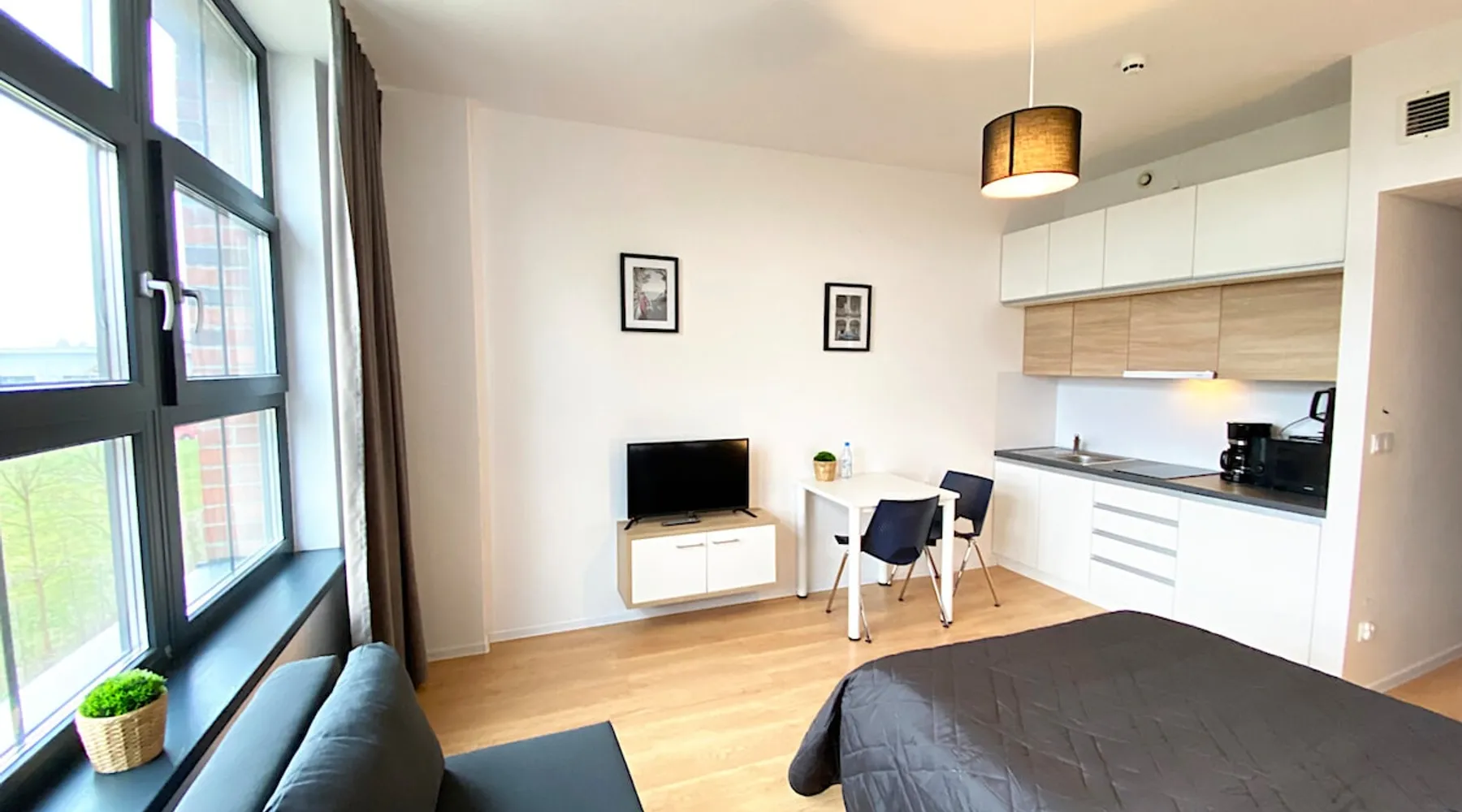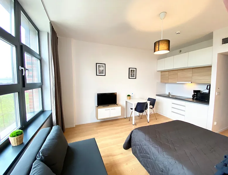 Apartimento Hydral Stilo is a stylish studio apartment located in a historic industrial building within the Wrocław Business Park. Self check-in at any time using a secure code. Fully equipped kitchen, private bathroom, living area with dining space, and Other things to note The door is opened with a code. Before arrival (typically 1-2 days prior), the entry code for the apartment will be sent out. Upon entering the apartment, you will find a chip card for quick and convenient opening of the apartment.---- The guest can cancel the reservation free of charge up to 7 days before arrival (refundable offer). The guest will be charged the total price of the reservation if they cancel within 7 days before arrival (refundable offer) or at any time (non-refundable offer). If the guest does not show up at the property, they will be charged the total price of the reservation.