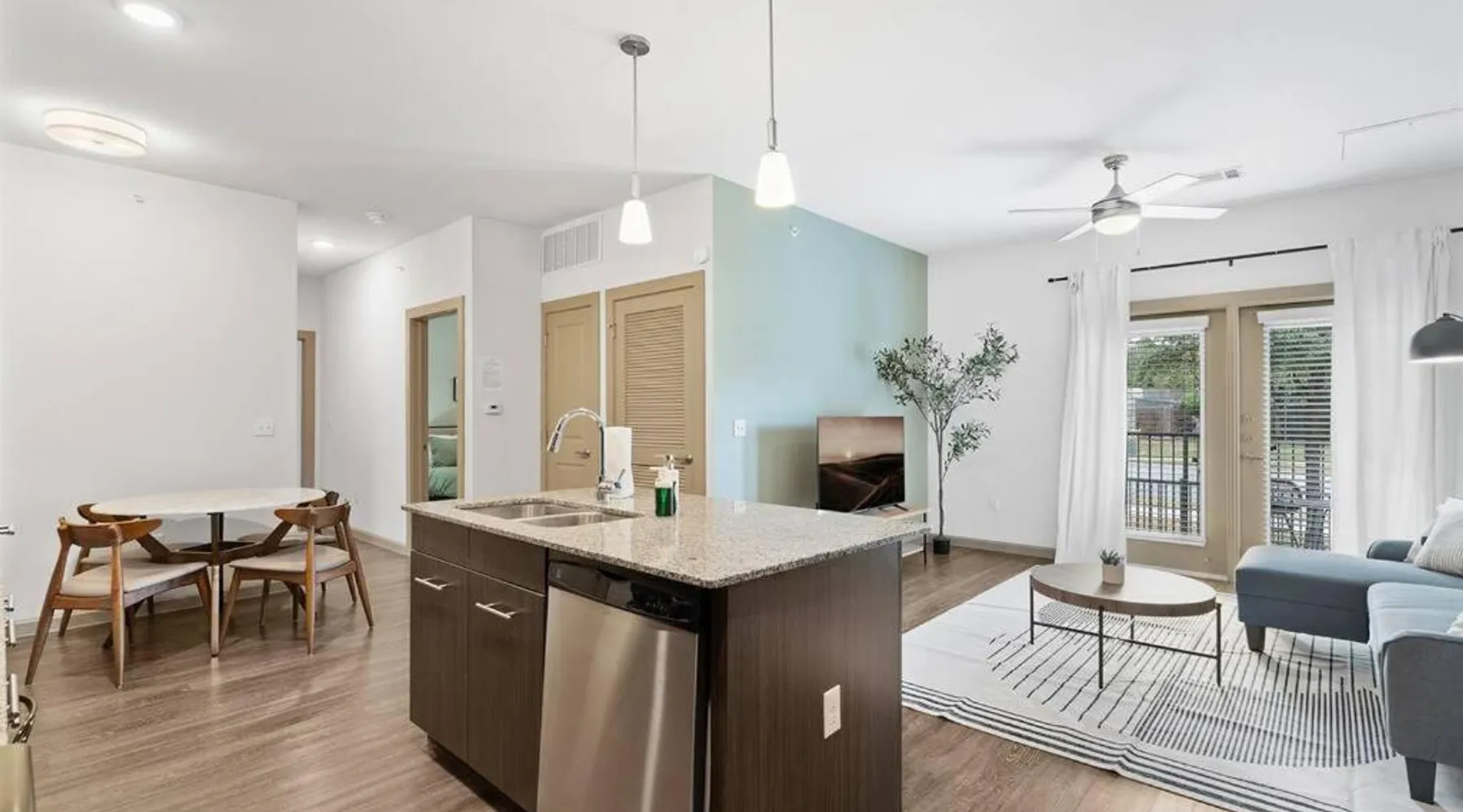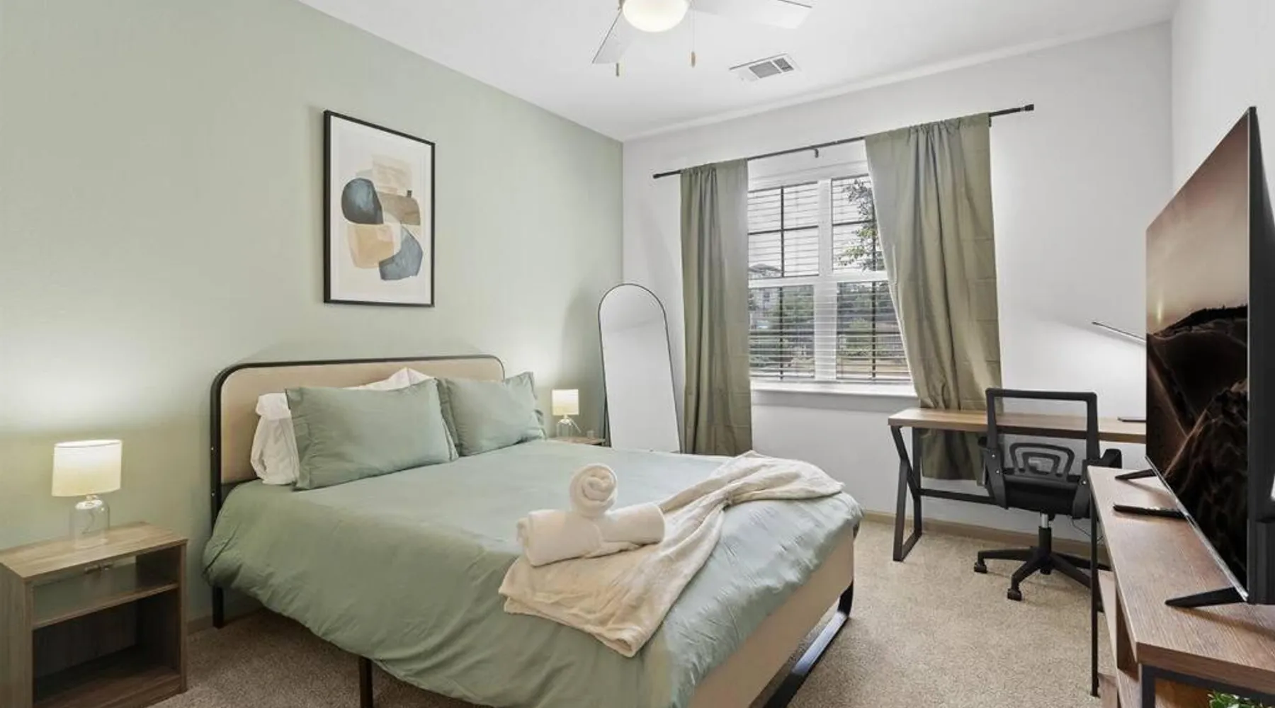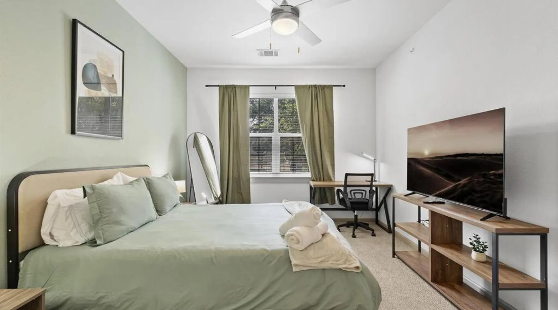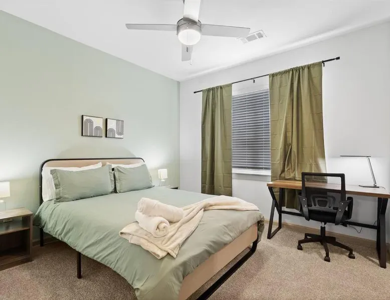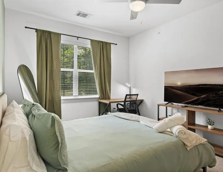 Spacious Accommodations: Luxe 2B/2B Getaway in Leander offers a spacious apartment with two bedrooms and two bathrooms. The property includes a balcony, air-conditioning, and a fully equipped kitchen with a refrigerator, microwave, dishwasher, oven, and stovetop. Modern Amenities: Guests enjoy free WiFi, a private pool, and a gym. Additional amenities include a washing machine, sofa bed, work desk, and a TV. Free on-site private parking is available. Convenient Location: Located 32 mi from Austin-Bergstrom International Airport, the apartment is close to attractions such as Dell Diamond (21 mi), University of Texas at Austin (27 mi), and Mount Bonnell (24 mi). Reception staff speak English and Chinese. This apartment's standout feature is the private pool. This spacious apartment includes 2 bedrooms, a kitchen and 2 bathrooms with a hairdryer. In the fully equipped kitchen, guests will find a stovetop, a refrigerator, a dishwasher and an oven. This apartment has air conditioning, a washing machine, a flat-screen TV and a balcony. The unit has 2 beds.