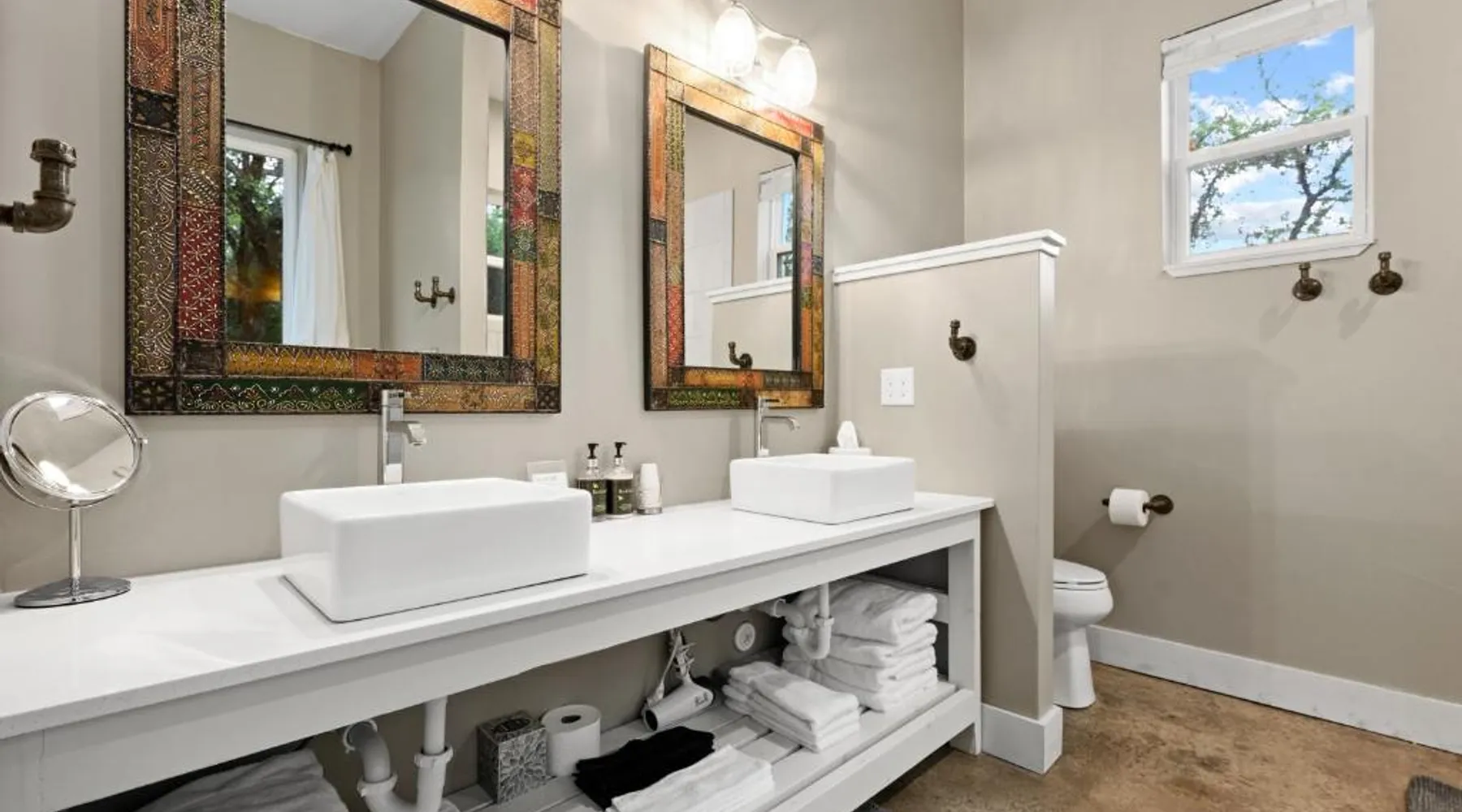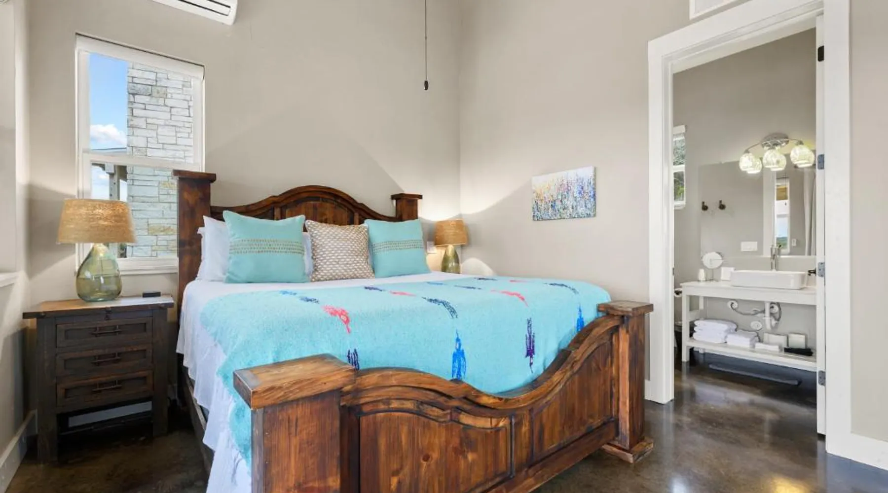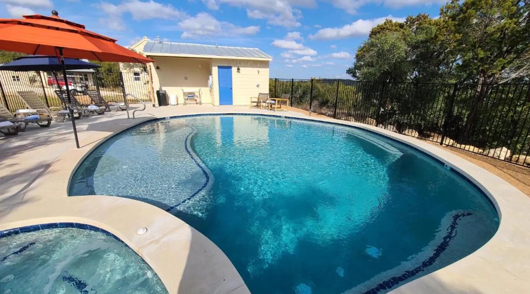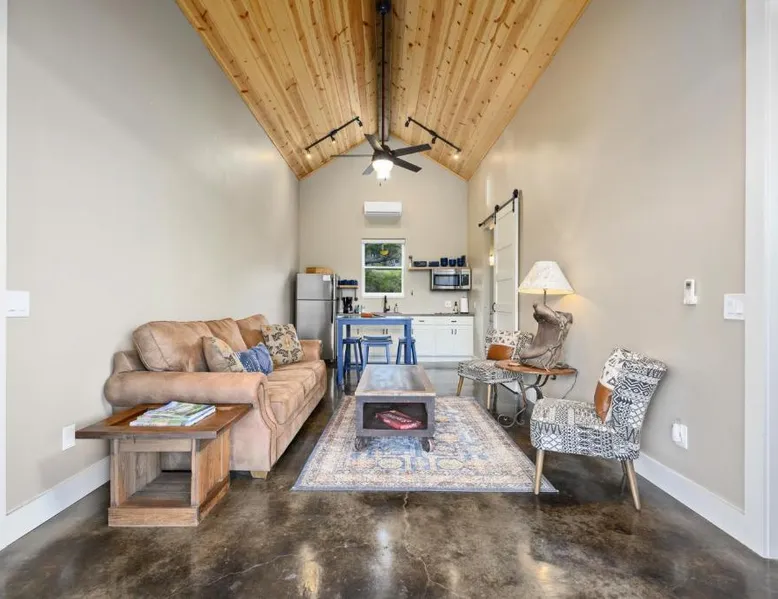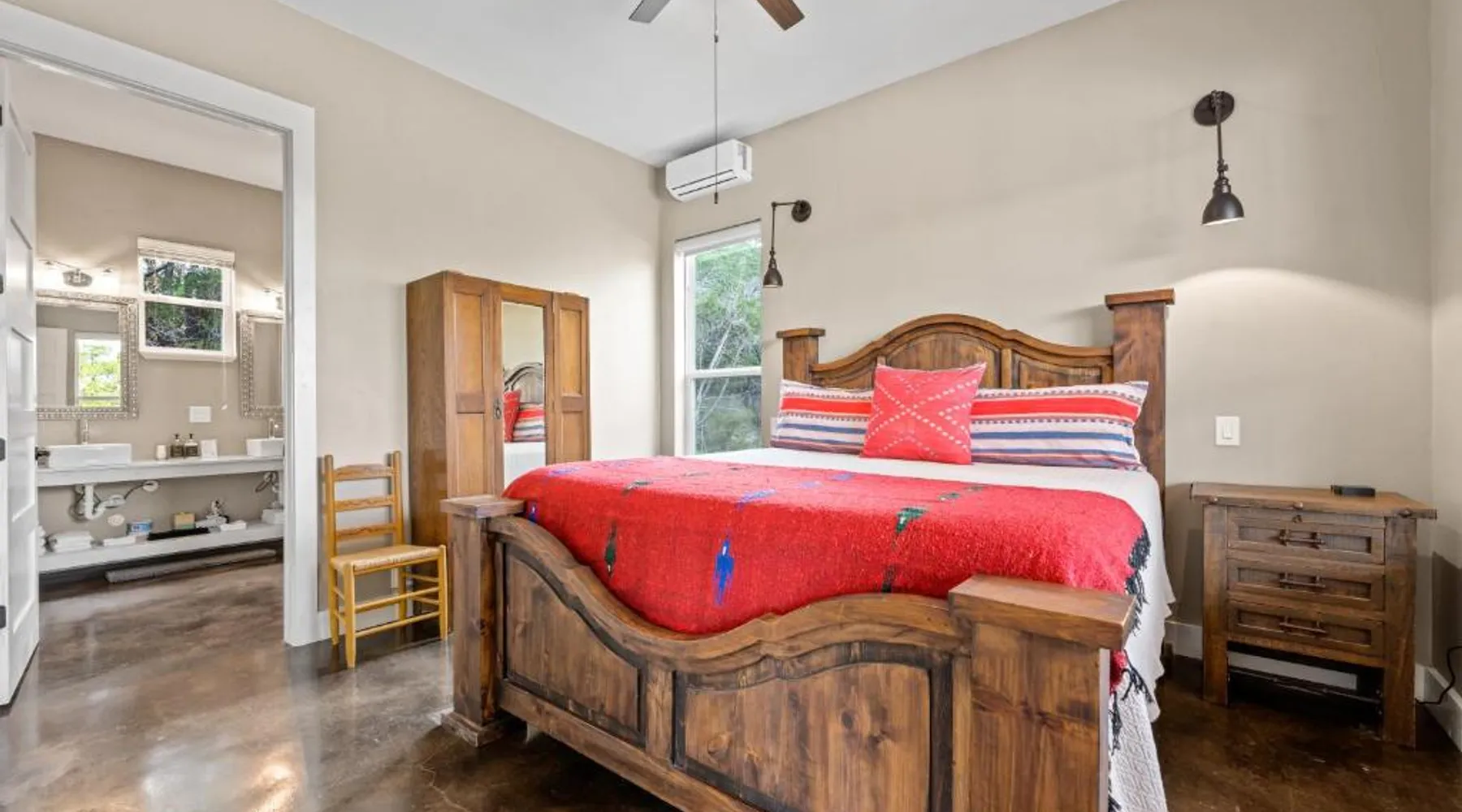 Hill Country Casitas provides accommodations with indoor and outdoor seating areas, gas grills and iconic hill country views in Dripping Springs. All units include a dining area and/or a patio. Guests can go hiking or relax in front of the fireplace. An outdoor pavilion with a chef's kitchen and a BBQ grill is available for use by guests. This property is located near local wineries, distilleries and wedding venues. Austin is 26 mi from Hill Country Casitas, while Cedar Park is 25 mi from the property. Austin-Bergstrom International Airport is 31 mi away. This holiday home features a covered porch with a fireplace and a bathroom with a double vanity and dual shower head.