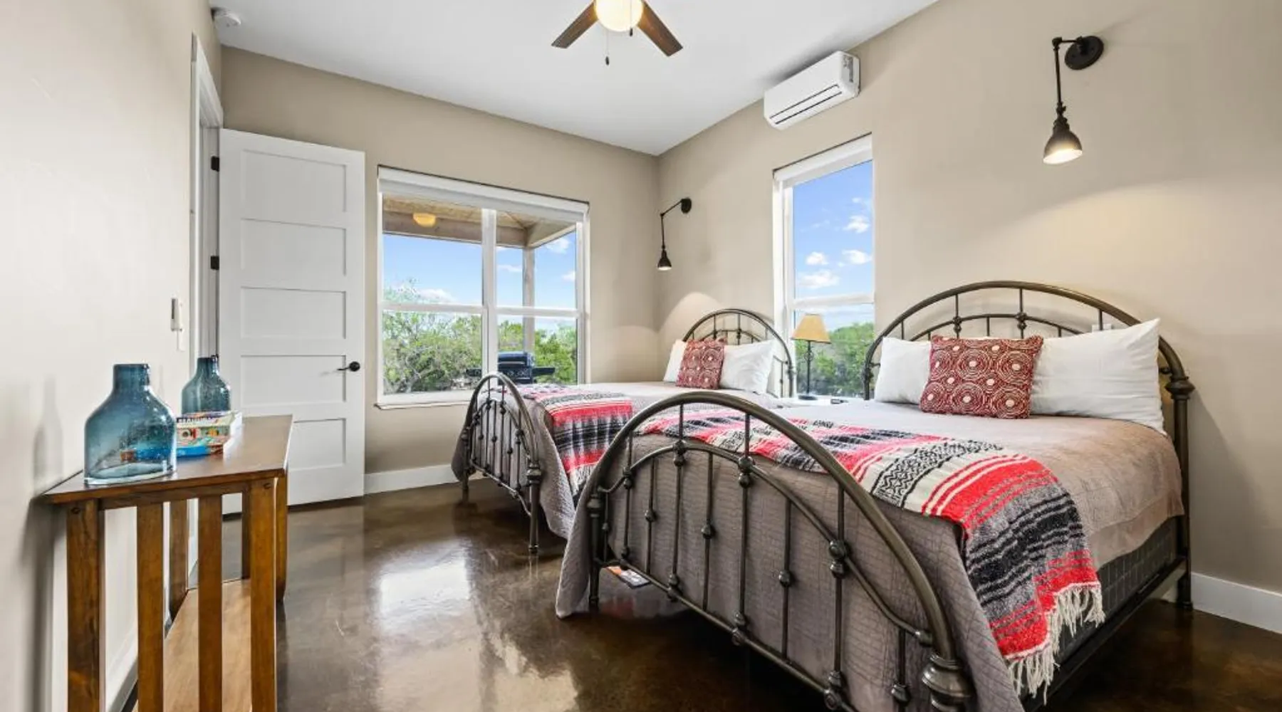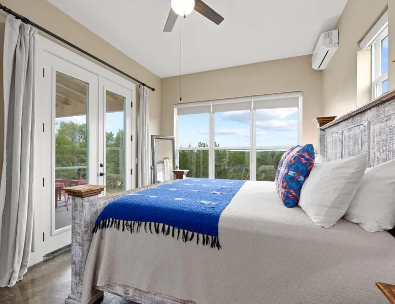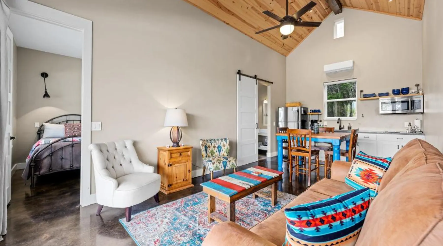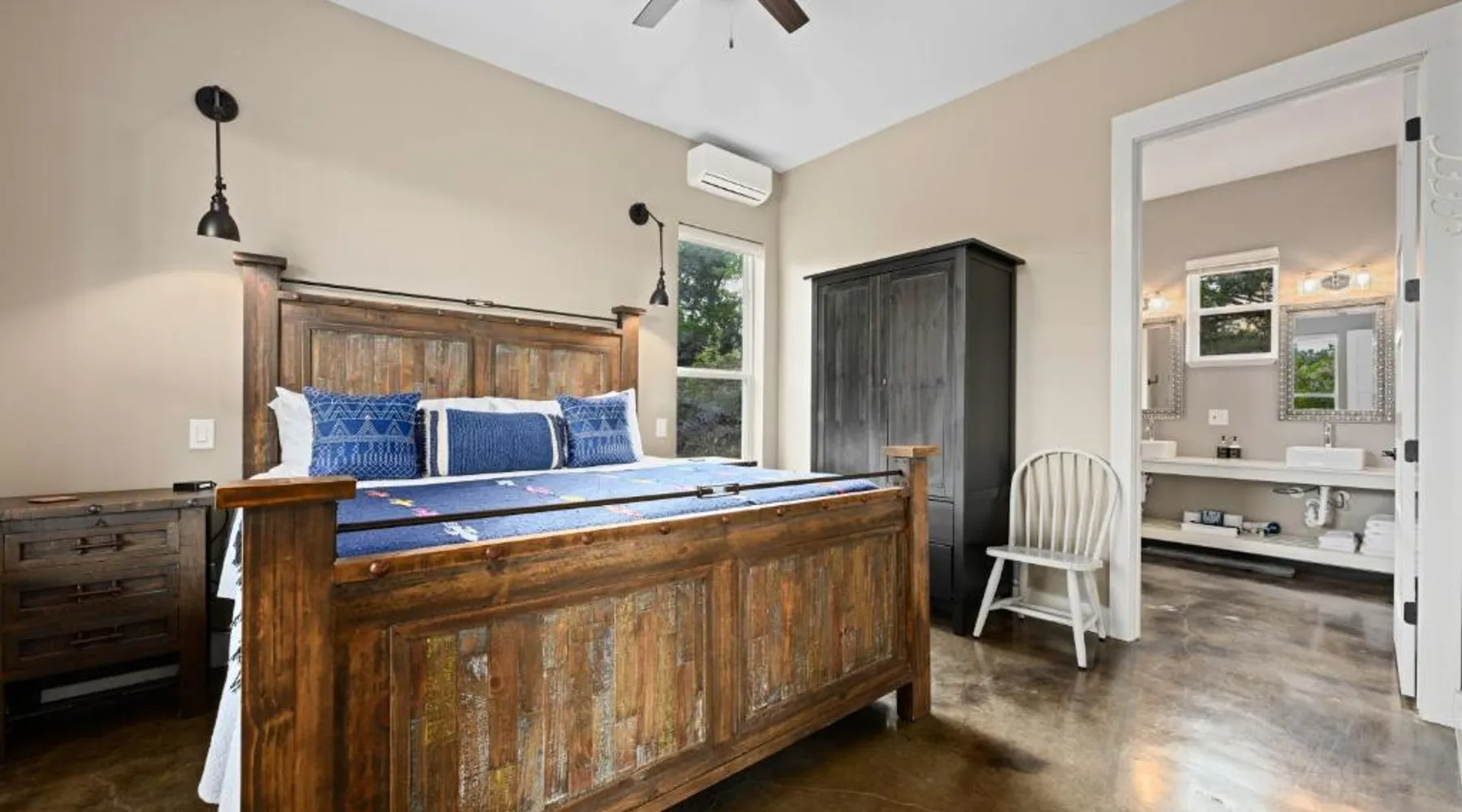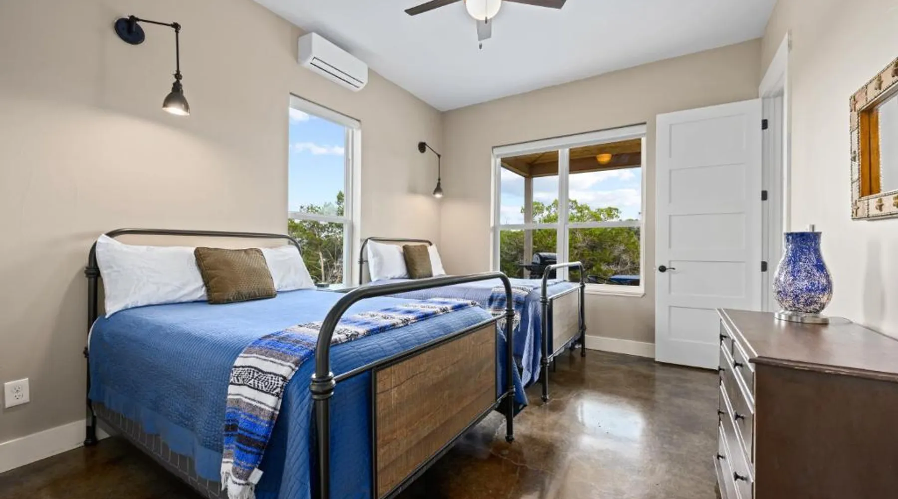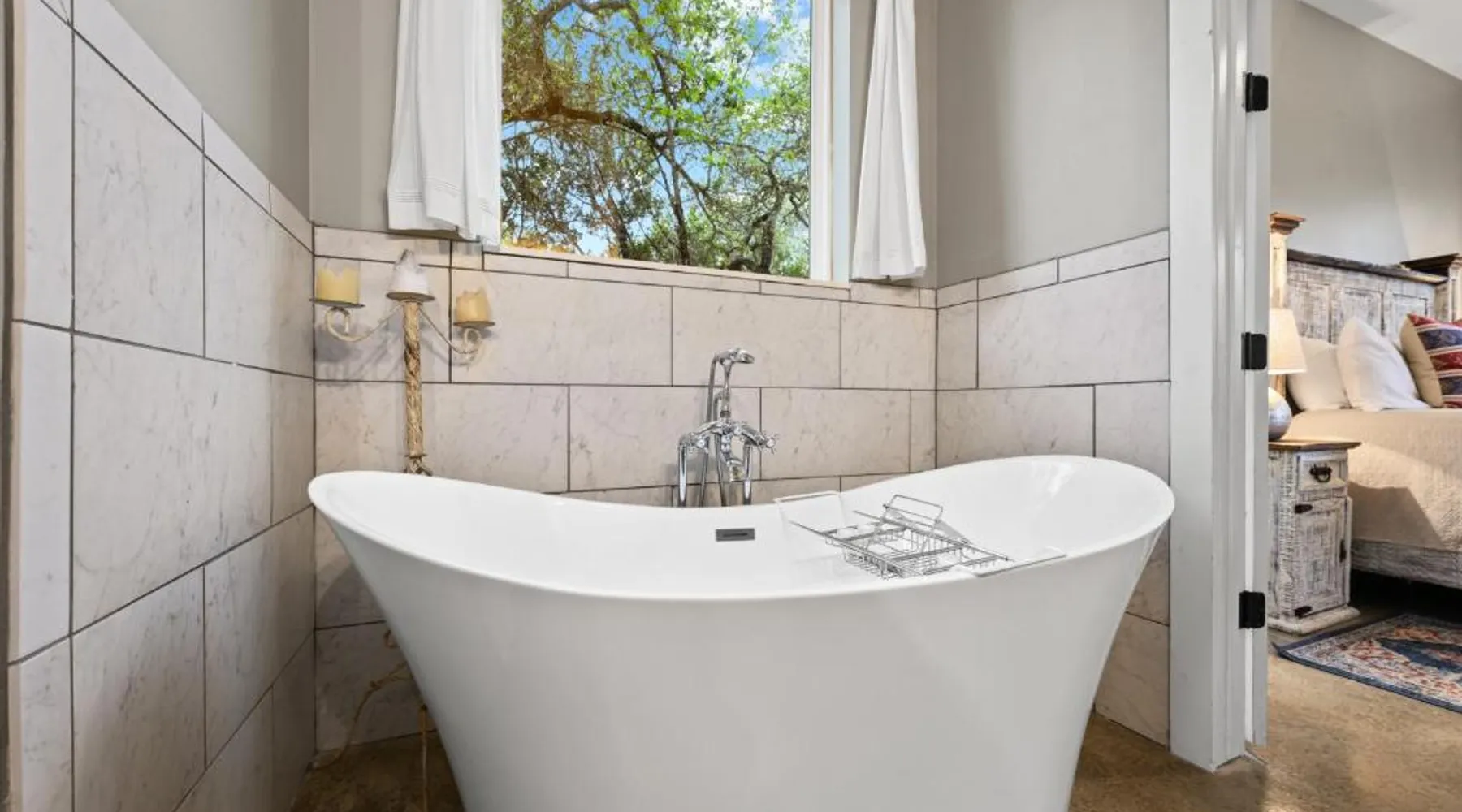 Hill Country Casitas provides accommodations with indoor and outdoor seating areas, gas grills and iconic hill country views in Dripping Springs. All units include a dining area and/or a patio. Guests can go hiking or relax in front of the fireplace. An outdoor pavilion with a chef's kitchen and a BBQ grill is available for use by guests. This property is located near local wineries, distilleries and wedding venues. Austin is 26 mi from Hill Country Casitas, while Cedar Park is 25 mi from the property. Austin-Bergstrom International Airport is 31 mi away. This holiday home features a covered porch with a fireplace and a bathroom with a double vanity and dual shower head.