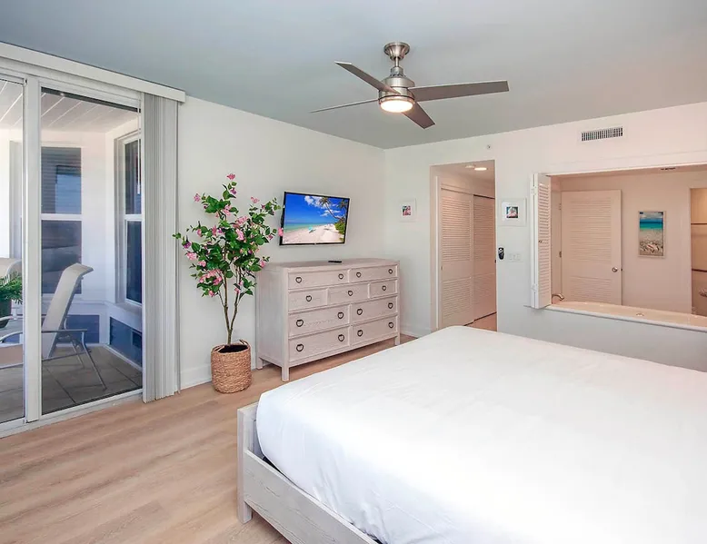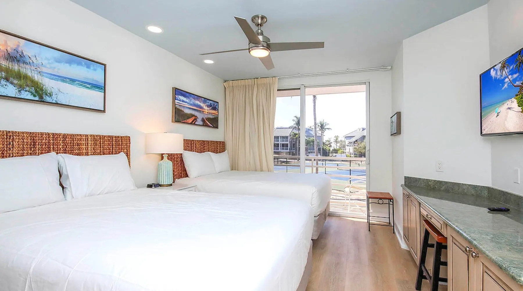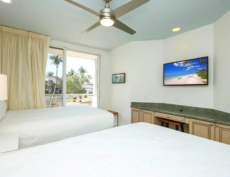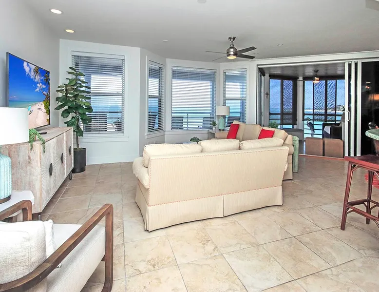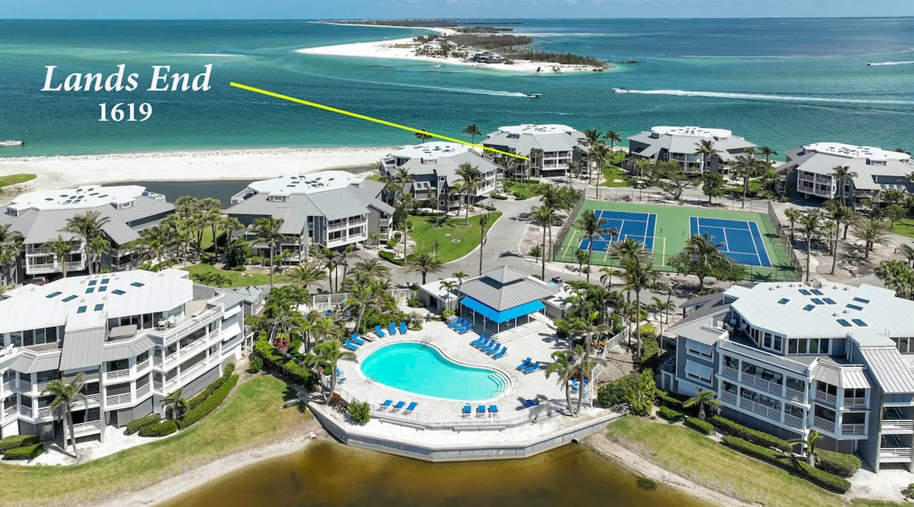 Experience the Ultimate Gulf, Pass & Sound Views from Your Waterfront Condo. The space The Best View at Lands End! Waterfront 2BR+Bonus Condo with Panoramic Gulf, Pass & Sound Views! Prepare to be captivated by the unparalleled water views from our stunning 2-bedroom (plus bonus space), 2-bathroom waterfront condo at Lands End. Widely considered to have the best views in Lands End, you'll enjoy breathtaking vistas of the Gulf of Mexico, the Pass, and the Sound. The primary bedroom features a luxurious king-sized bed and an en-suite bathroom with a walk-in shower. The guest bedroom offers two comfortable double beds and a private balcony. A full bathroom is conveniently located in the hallway. Relax in the spacious living room, prepare meals in the fully equipped kitchen, and enjoy dining together in the dining area. The unique bonus space off the living room features twin trundle beds that can be closed off for use as a private 3rd sleeping area. Step out onto the screened lanai to soak in the incredible scenery overlooking a tranquil water feature, the lush golf course, and out to the sparkling Gulf, Pass, and North Captiva. While resort amenities are not included, guests have access to the association's heated pool, BBQ grills, and tennis court. This second-floor walk-up condo requires a 5-night minimum stay. Experience the ultimate Captiva Island escape with the most spectacular views imaginable! Important Notes Private Management This condo is privately managed and not affiliated with Island Resort. Guests do not have access to resort amenities. Beach Gear Beach chairs and umbrellas are not included. Instead, your stay includes a VayKLife credit for beach essentials such as chairs, umbrellas, coolers, wagons, and more. Delivery is included. On-site availability cannot be guaranteed. Your booking confirmation includes a link to redeem your credit. Construction & Maintenance Currently, there are no ongoing repairs or construction within the Resort. Should any occur during your stay, refunds will not be issued for disruptions caused by maintenance or repairs beyond our control. Storm Impacts Due to Hurricanes Helene and Milton, access to some amenities may be limited during your stay.