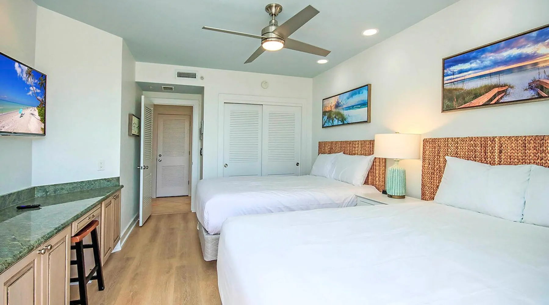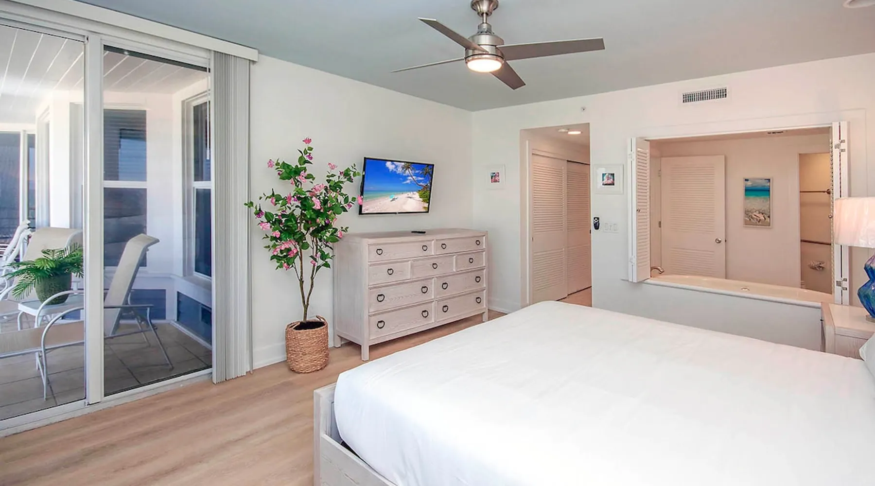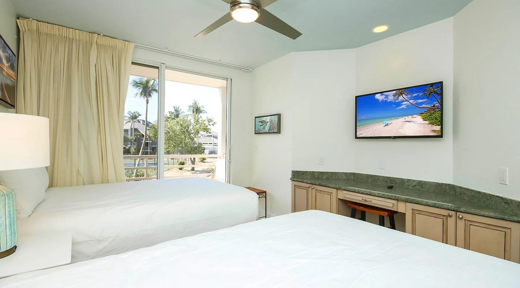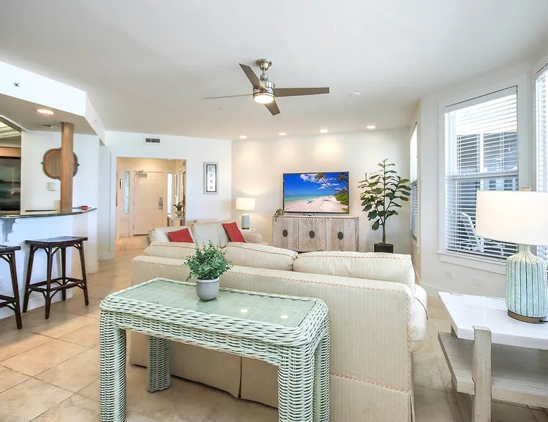 Experience the Ultimate Gulf, Pass & Sound Views from Your Waterfront Condo. The space The Best View at Lands End! Waterfront 2BR+Bonus Condo with Panoramic Gulf, Pass & Sound Views! Prepare to be captivated by the unparalleled water views from our stunning 2-bedroom (plus bonus space), 2-bathroom waterfront condo at Lands End. Widely considered to have the best views in Lands End, you'll enjoy breathtaking vistas of the Gulf of Mexico, the Pass, and the Sound. The primary bedroom features a luxurious king-sized bed and an en-suite bathroom with a walk-in shower. The guest bedroom offers two comfortable double beds and a private balcony. A full bathroom is conveniently located in the hallway. Relax in the spacious living room, prepare meals in the fully equipped kitchen, and enjoy dining together in the dining area. The unique bonus space off the living room features twin trundle beds that can be closed off for use as a private 3rd sleeping area. Step out onto the screened lanai to soak in the incredible scenery overlooking a tranquil water feature, the lush golf course, and out to the sparkling Gulf, Pass, and North Captiva. While resort amenities are not included, guests have access to the association's heated pool, BBQ grills, and tennis court. This second-floor walk-up condo requires a 5-night minimum stay. Experience the ultimate Captiva Island escape with the most spectacular views imaginable! Important Notes Private Management This condo is privately managed and not affiliated with Island Resort. Guests do not have access to resort amenities. Beach Gear Beach chairs and umbrellas are not included. Instead, your stay includes a VayKLife credit for beach essentials such as chairs, umbrellas, coolers, wagons, and more. Delivery is included. On-site availability cannot be guaranteed. Your booking confirmation includes a link to redeem your credit. Construction & Maintenance Currently, there are no ongoing repairs or construction within the Resort. Should any occur during your stay, refunds will not be issued for disruptions caused by maintenance or repairs beyond our control. Storm Impacts Due to Hurricanes Helene and Milton, access to some amenities may be limited during your stay.