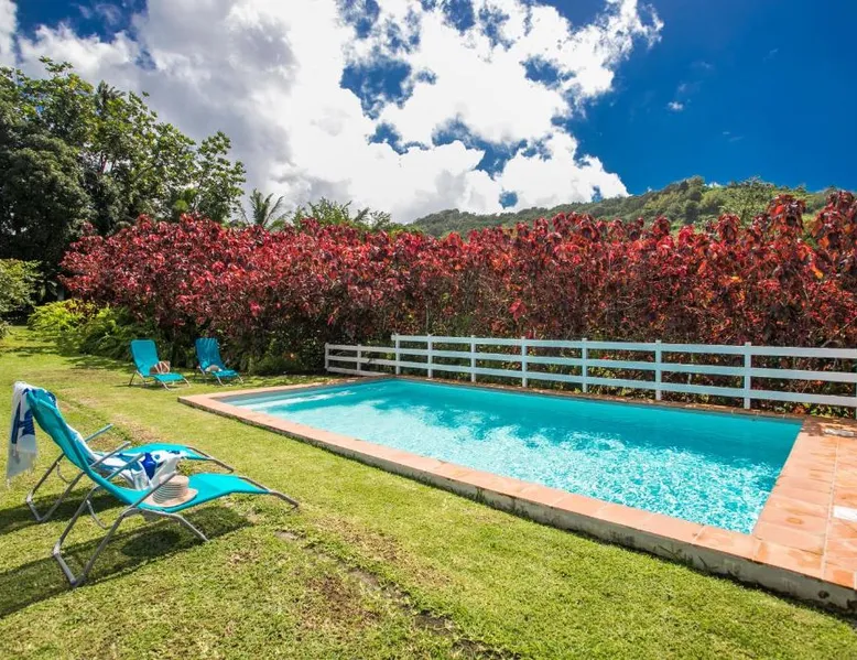 Spacious Accommodations: La Maison du Géreur in Saint-Pierre offers a spacious villa with four bedrooms and three bathrooms. The property includes a living room and family rooms, ensuring comfort for all guests. Outdoor Amenities: Guests can enjoy a year-round outdoor swimming pool, a terrace, and a lush garden. The terrace provides a perfect spot for relaxation, while the pool offers a refreshing escape. Modern Facilities: The villa features free WiFi, a fully equipped kitchen, washing machine, and TV. Free on-site private parking is available for convenience. Location and Access: Martinique Aime Cesaire International Airport is 27 mi away, providing easy access for travelers. Boasting 4 bedrooms and 3 bathrooms, this spacious villa has a living room and private pool where you can relax. The villa's kitchen is available for cooking and storing food. This villa features a washing machine, a flat-screen TV and garden views. The unit offers 8 beds.