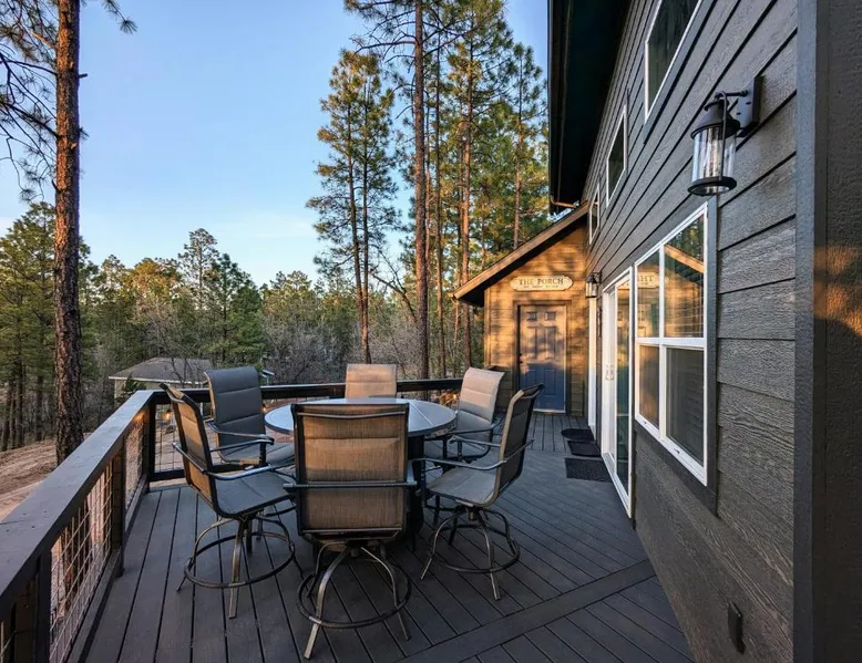 Spacious Holiday Home in Pinetop-Lakeside: Pinetop Getaway with Sunset Deck & Fire Pit Table offers a spacious holiday home in Pinetop-Lakeside. The property features three bedrooms and two bathrooms, ensuring comfort for all guests. Outdoor Amenities: Guests can enjoy a sun terrace with mountain views, a private fire pit table, and an outdoor seating area. The terrace and balcony provide relaxing spaces, while the outdoor fireplace enhances the ambiance. Modern Facilities: The holiday home provides free WiFi, air-conditioning, and a fully equipped kitchen. Additional amenities include a washing machine, dishwasher, and streaming services. Convenient Location: Located 13 mi from Show Low Regional Airport, the property offers easy access to skiing and cycling activities. Free on-site private parking is available for guests. Boasting a private entrance, this air-conditioned holiday home features 1 living room, 3 separate bedrooms and 2 bathrooms with a bath and a shower. Guests will find a stovetop, a refrigerator, a dishwasher and kitchenware in the well-equipped kitchen. The holiday home also comes with a barbecue. The spacious holiday home features a flat-screen TV with streaming services, a washing machine, soundproof walls, a tea and coffee maker as well as mountain views. The unit has 7 beds.