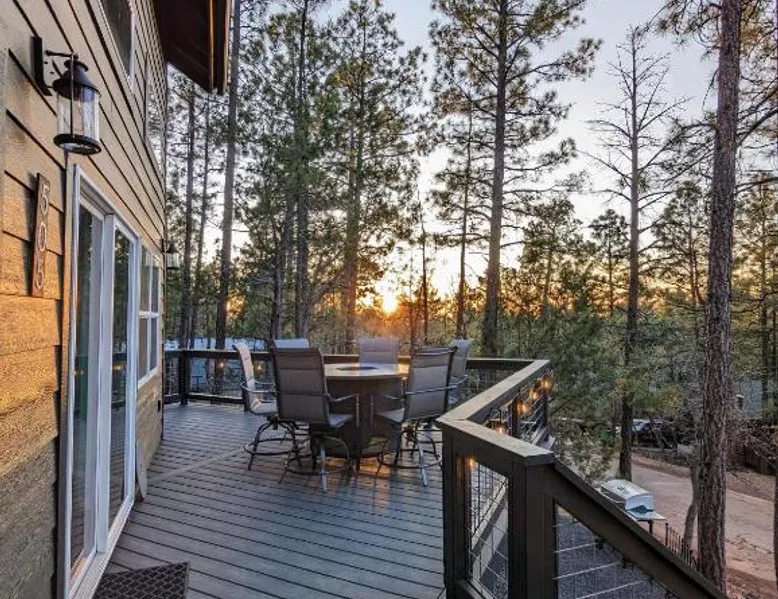 Pinetop Getaway with Sunset Deck & Fire Pit Table