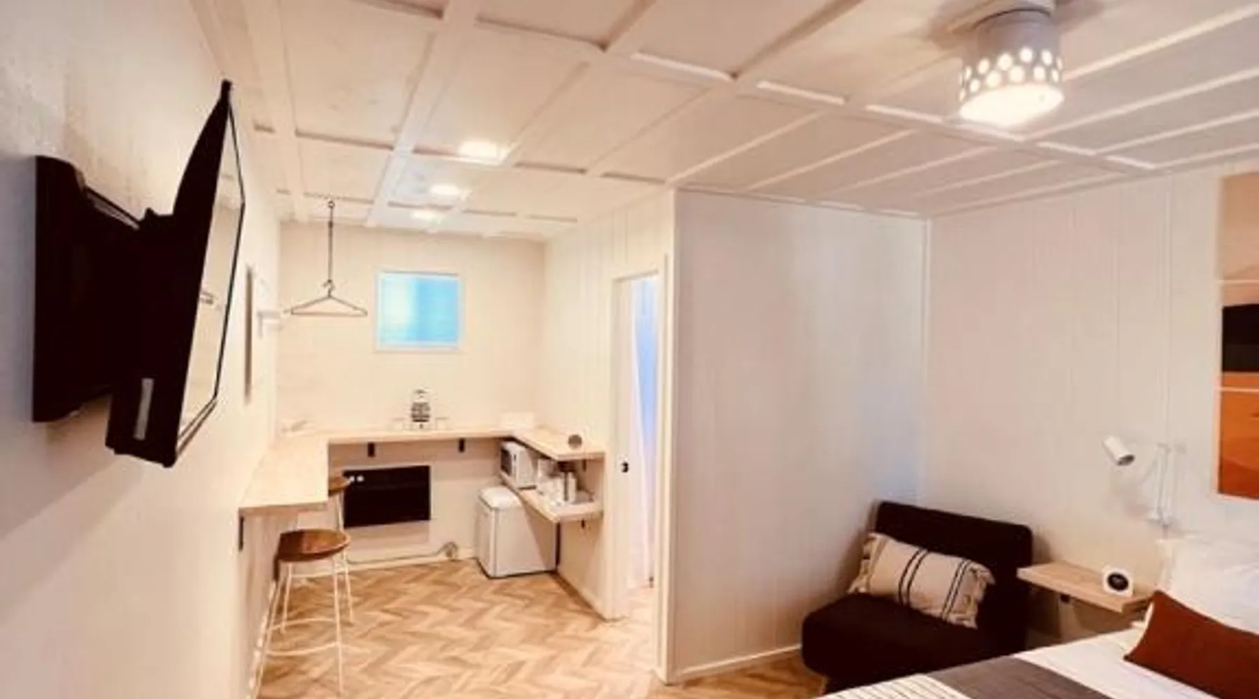 Comfortable Accommodations: Corduroy Lodge in Pinetop-Lakeside offers family rooms with private bathrooms, air-conditioning, and mountain views. Each room includes a tea and coffee maker, hairdryer, and free toiletries. Essential Facilities: Guests enjoy free WiFi, an outdoor fireplace, and an outdoor play area. Additional amenities include a picnic area, outdoor seating, and bike hire. Free on-site private parking is available. Local Activities: The motel is located 12 mi from Show Low Regional Airport. Activities include skiing, hiking, and cycling. Streaming services and a dining area enhance the stay. The air-conditioned bungalow has 1 bedroom and 1 bathroom with a bath or a shower and a hairdryer. The well-fitted kitchen features a stovetop, a refrigerator, kitchenware and a microwave. The bungalow features a tea and coffee maker, a seating area, a dining area, a flat-screen TV with streaming services, as well as mountain views. The unit has 1 bed.