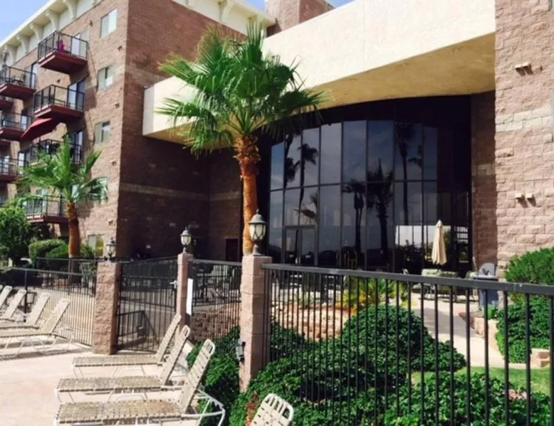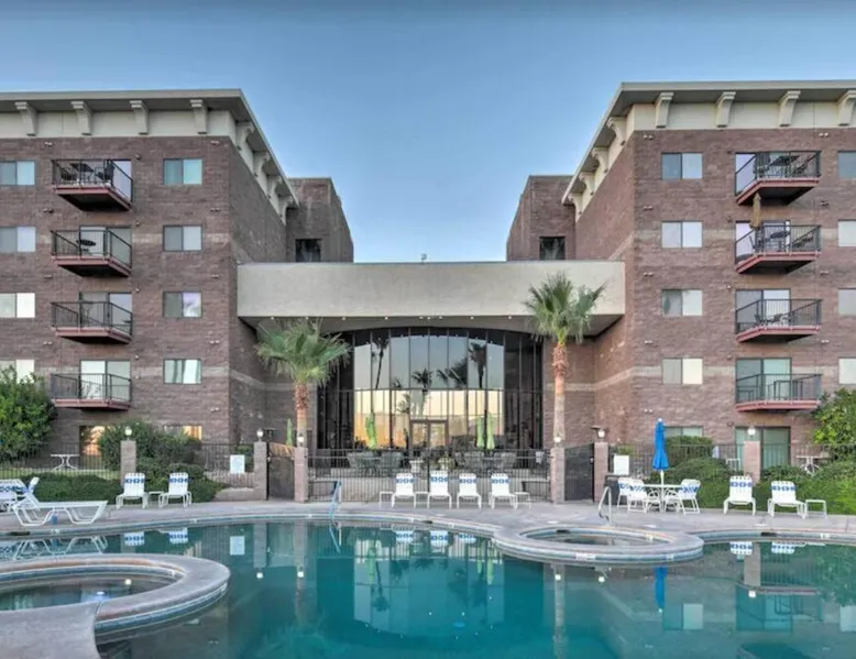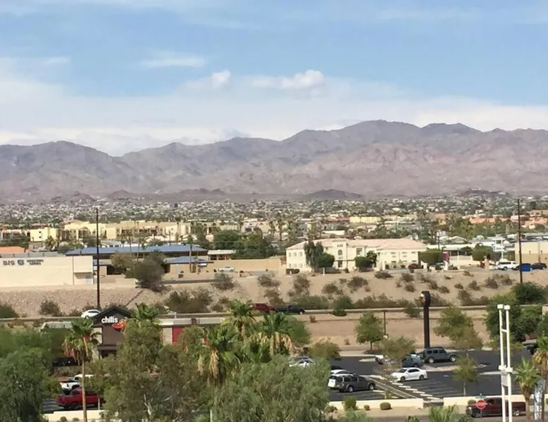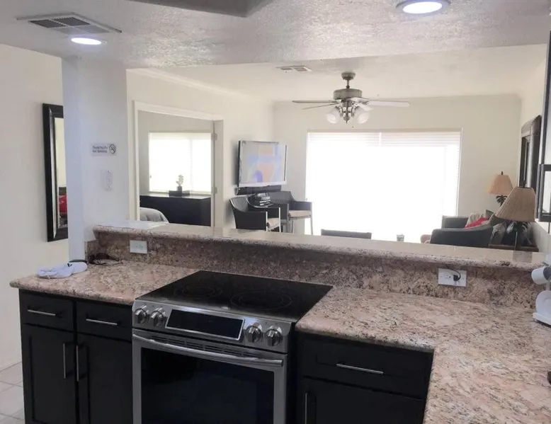 Spacious Accommodations: Lake and London Bridge View - Penthouse Suite in Lake Havasu City offers a spacious holiday home with one bedroom and two bathrooms. Guests enjoy a private pool, balcony, and a fully equipped kitchen. Modern Amenities: The property features free WiFi, air-conditioning, a hot tub, washing machine, and a elevator. Additional amenities include a private entrance, TV, and a fully equipped kitchen with a refrigerator, microwave, dishwasher, and oven. Convenient Location: Located 1.2 mi from Body Beach, the holiday home provides easy access to local attractions. Free on-site private parking is available for guests. Highly Rated by Guests: Guests appreciate the spaciousness and excellent facilities, making it a highly rated choice for a comfortable stay. Guests will have a special experience as this holiday home provides a private pool and a hot tub. Featuring a private entrance, this spacious holiday home also is consisted of of 1 separate bedroom and 2 bathrooms with a hairdryer. In the well-fitted kitchen, guests will find a stovetop, a refrigerator, a dishwasher and an oven. Boasting a balcony, this holiday home also offers air conditioning, a washing machine and a flat-screen TV with cable channels. The unit offers 1 bed.