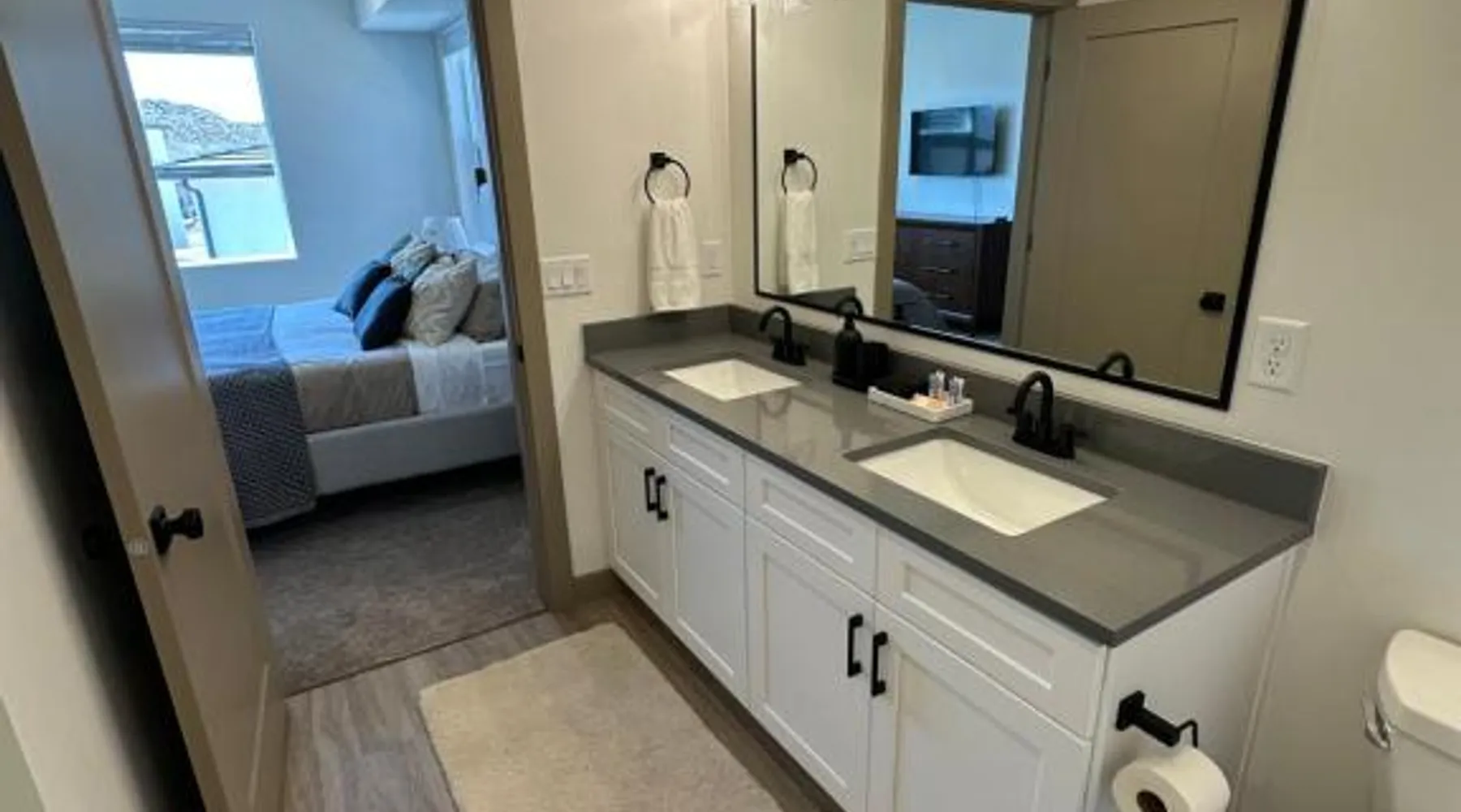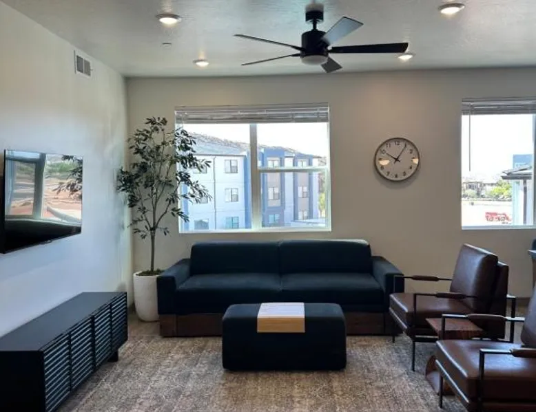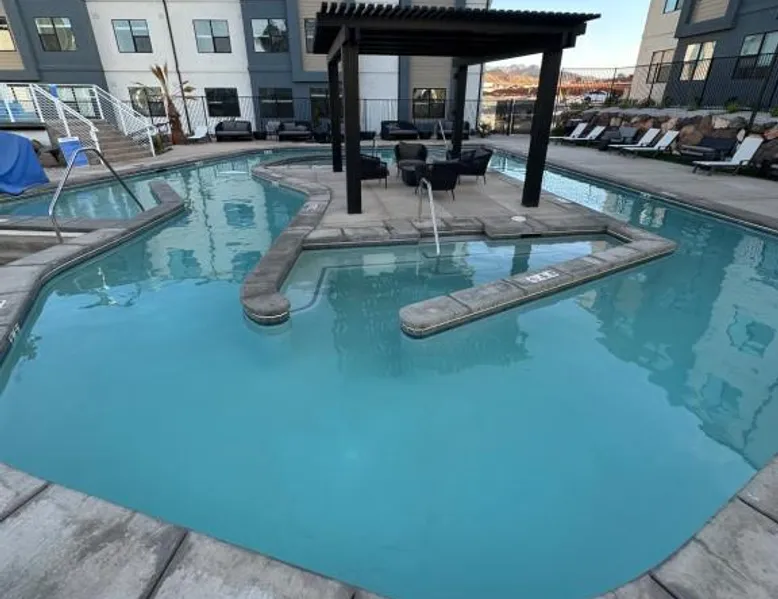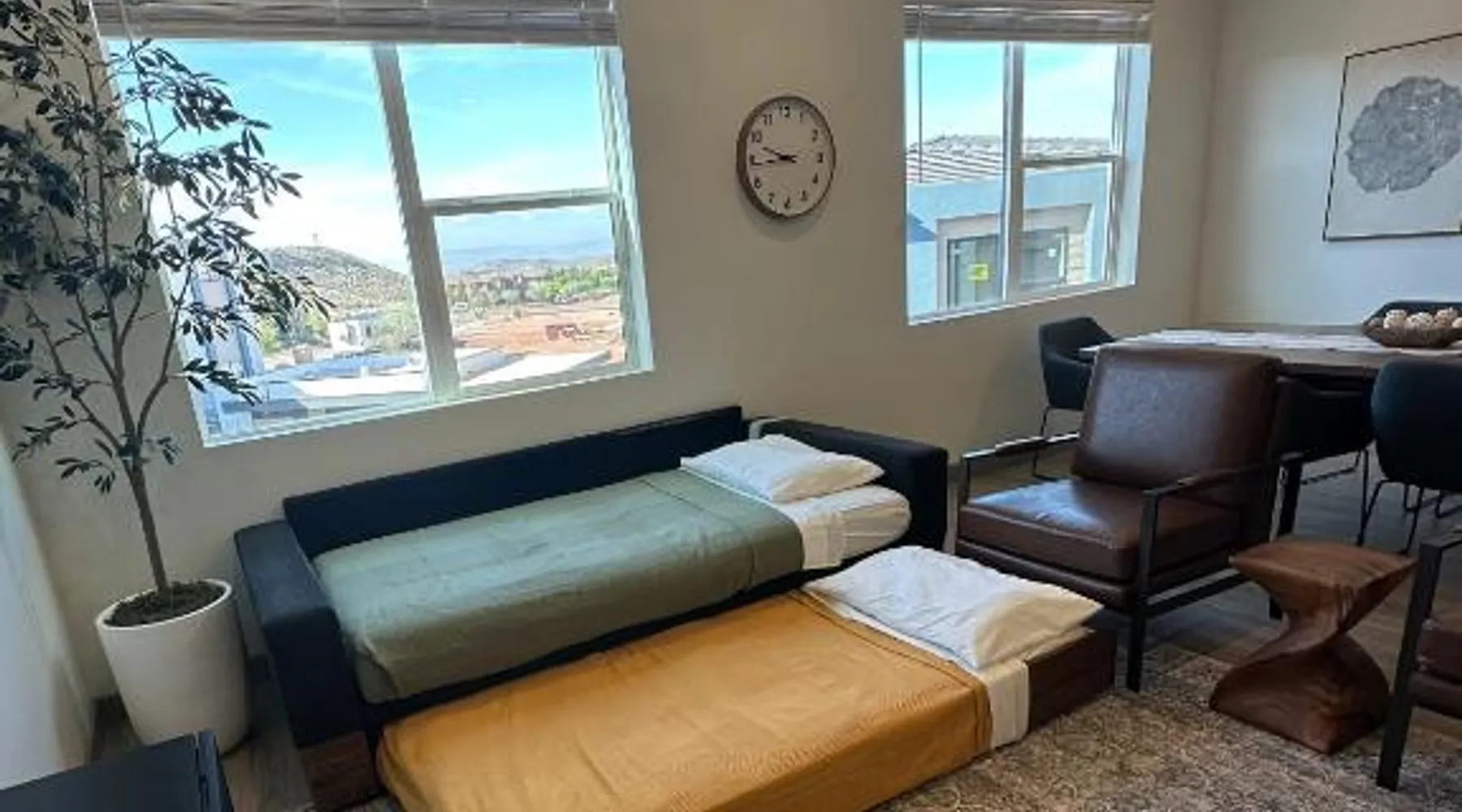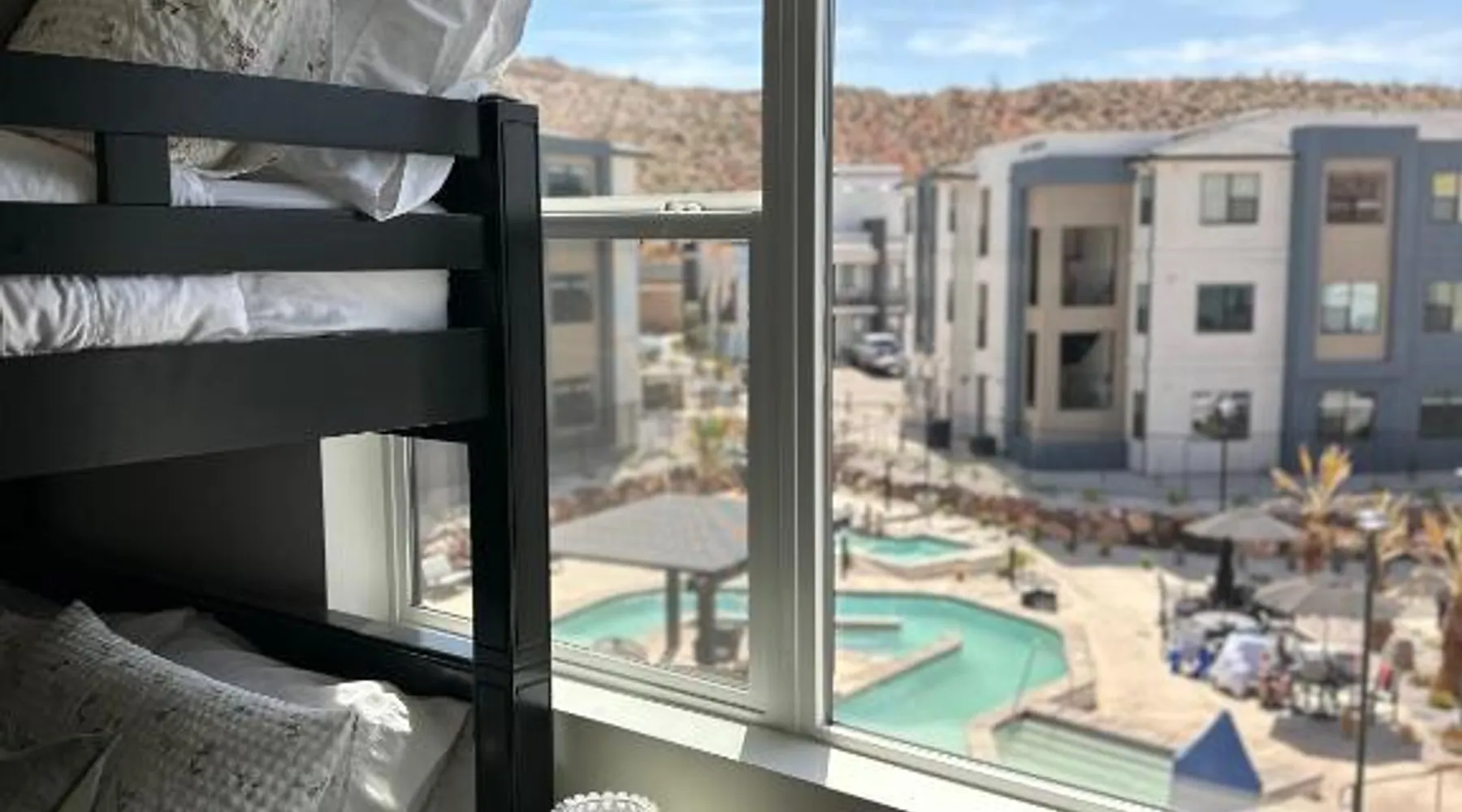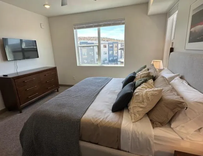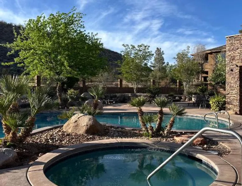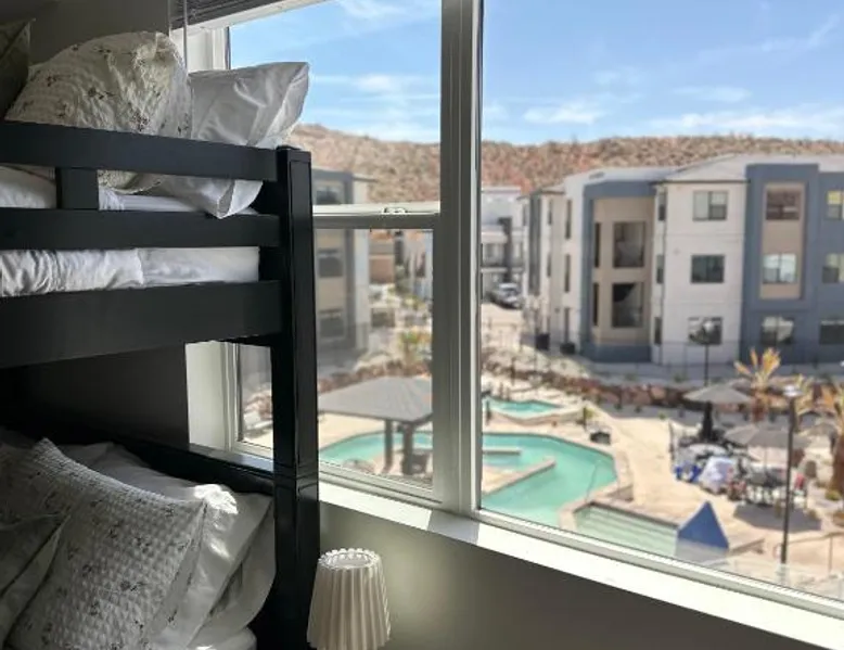 Spacious Accommodations: Sonoro Sands in Hurricane offers spacious aparthotel units with two bedrooms and two bathrooms. Each apartment includes a living room, fully equipped kitchen, and modern amenities. Exceptional Facilities: Guests enjoy a swimming pool with stunning views, a hot tub, and a fitness room. Free WiFi is available throughout the property, ensuring connectivity. Convenient Location: Located 19 mi from St. George Regional Airport, Sonoro Sands is close to attractions such as St George Temple (9.9 mi) and Pine Valley Chapel (5.6 mi). Free on-site parking is provided. This apartment's special features are the pool with a view and the hot tub. This spacious apartment consists of 1 living room, 2 separate bedrooms and 2 bathrooms with a bath and free toiletries. Guests will find a stovetop, a refrigerator, a dishwasher and kitchenware in the well-equipped kitchen. The apartment also offers a barbecue. The air-conditioned apartment provides a flat-screen TV with streaming services, a washing machine, a tea and coffee maker, a seating area as well as pool views. The unit offers 5 beds.