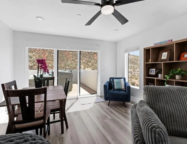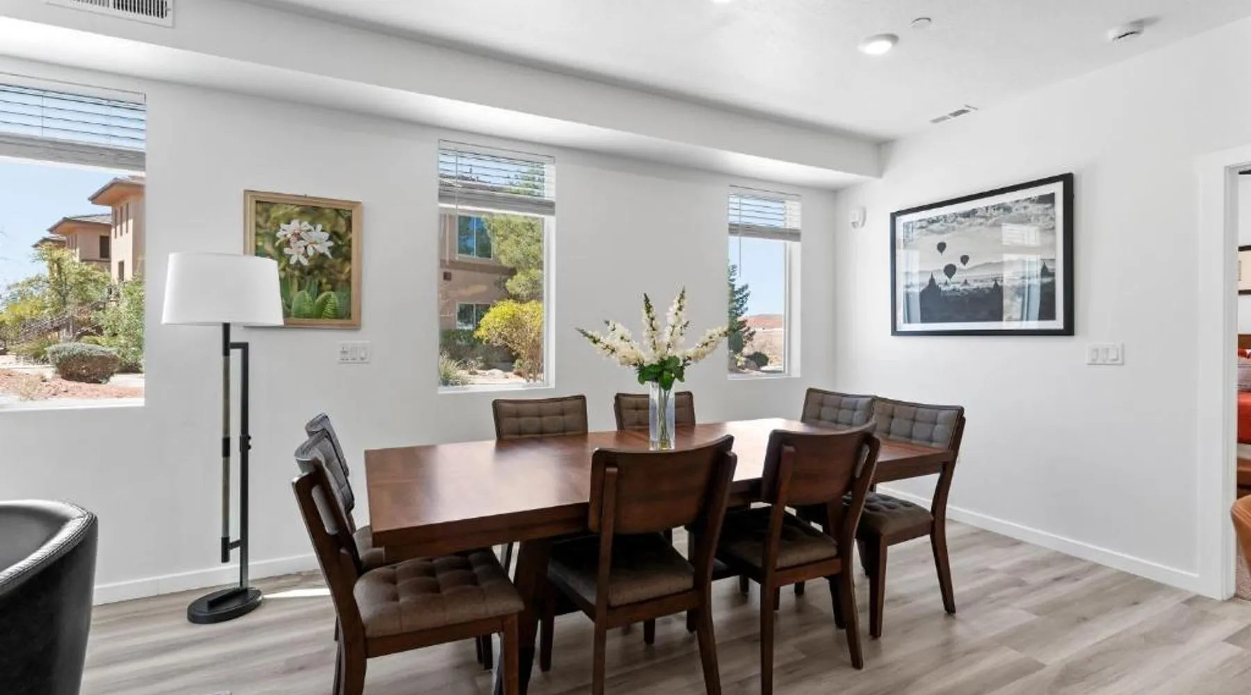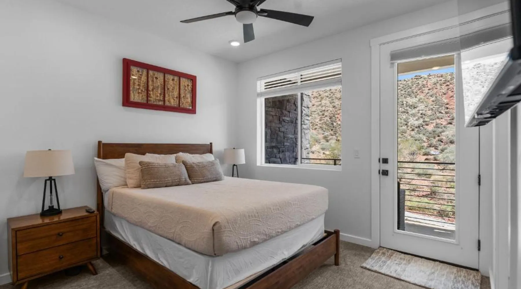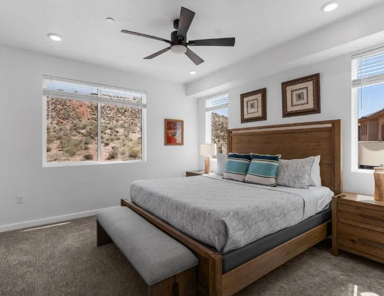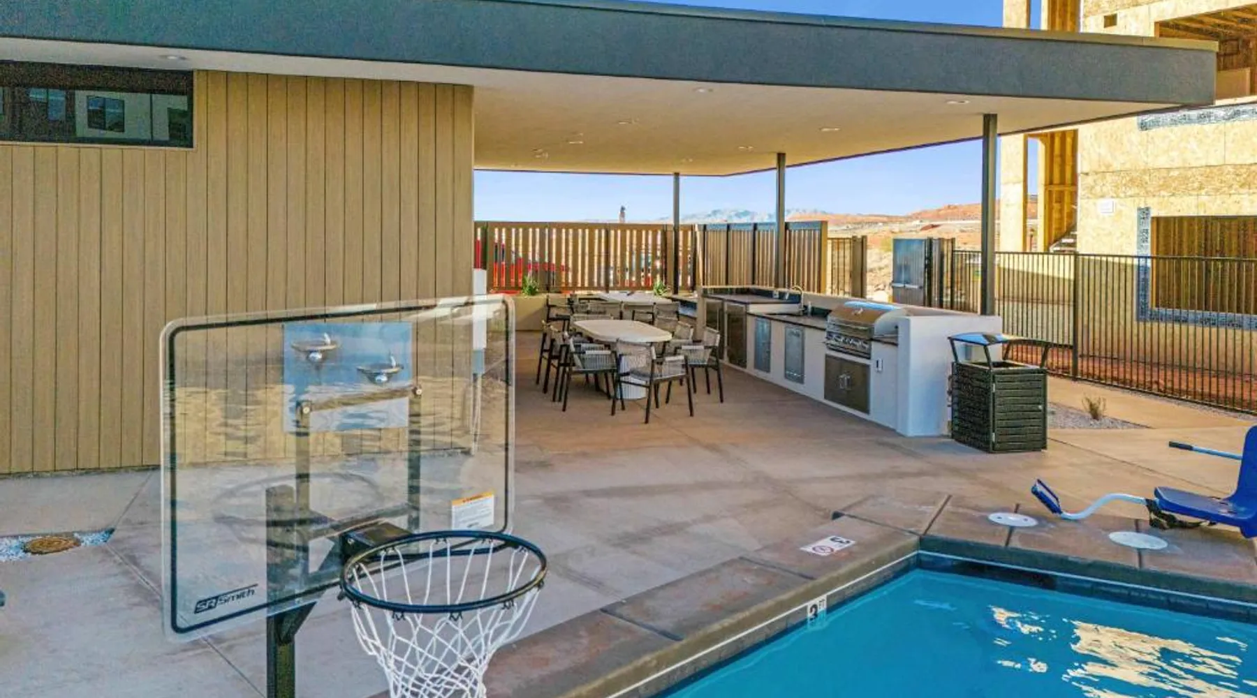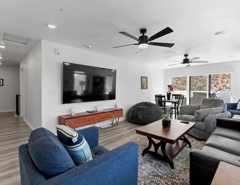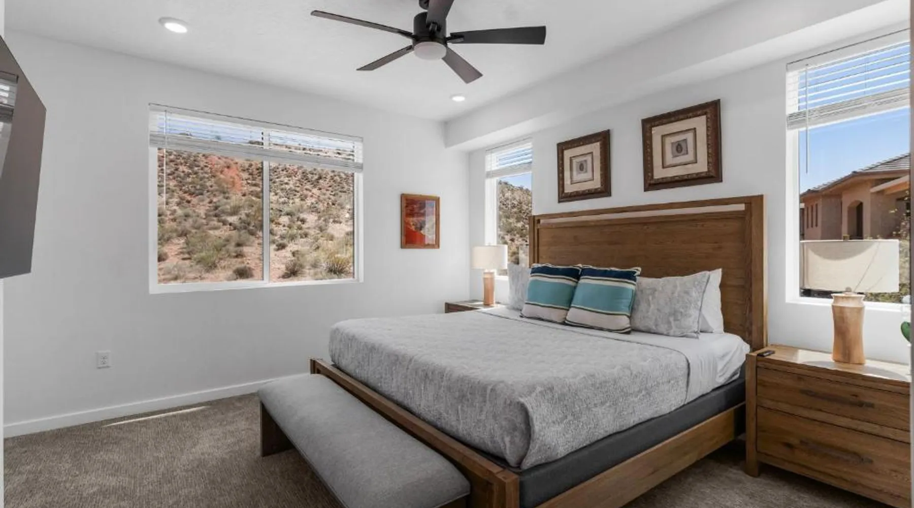 Spacious Accommodations: Touch of Class - 5BR - Hot Tub & Near Zion offers a spacious apartment in Hurricane. The property features five bedrooms and six bathrooms, ensuring ample space for all guests. Leisure Facilities: Guests can enjoy an indoor swimming pool, fitness center, and outdoor swimming pool. Free WiFi is available throughout the apartment, enhancing the stay experience. Comfortable Amenities: The apartment includes air-conditioning, a hot tub, washing machine, patio, kitchen, and mountain views. Additional amenities include a dining table, outdoor furniture, and a barbecue. Local Attractions: St. George Temple is 9.9 mi away, Pine Valley Chapel 5.6 mi, and Dixie State University 8.7 mi from the property. St. George Regional Airport is 19 mi distant. This apartment's standout feature is the hot tub. This spacious apartment includes 1 living room, 5 separate bedrooms and 6 bathrooms with a bath and free toiletries. Guests will find a stovetop, a refrigerator, a dishwasher and kitchenware in the well-equipped kitchen. The apartment also features a barbecue. The air-conditioned apartment offers a TV, a washing machine, a private entrance, a tea and coffee maker as well as mountain views. The unit has 8 beds.