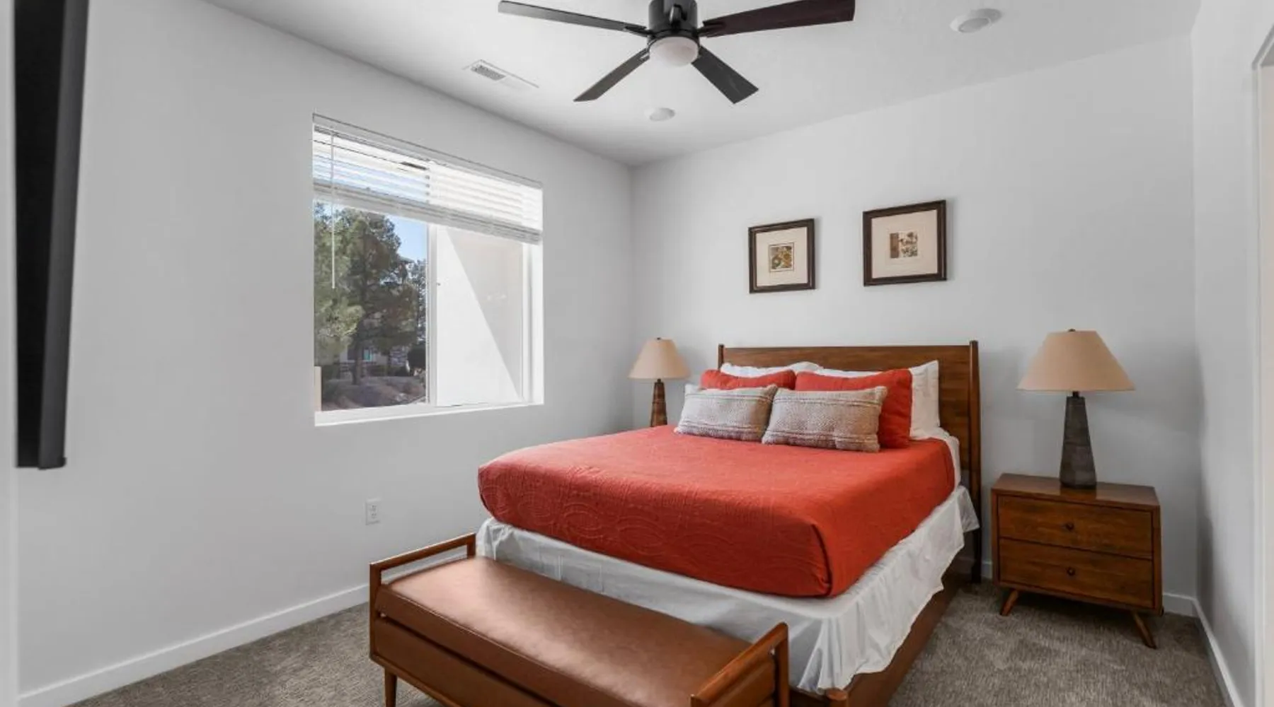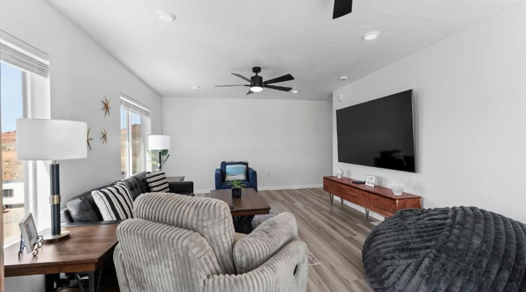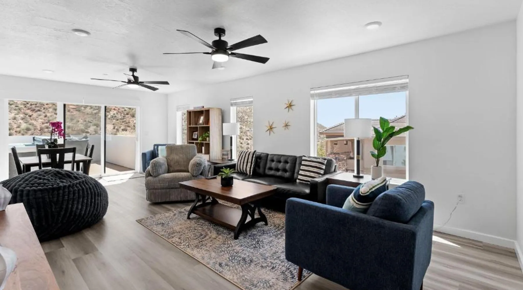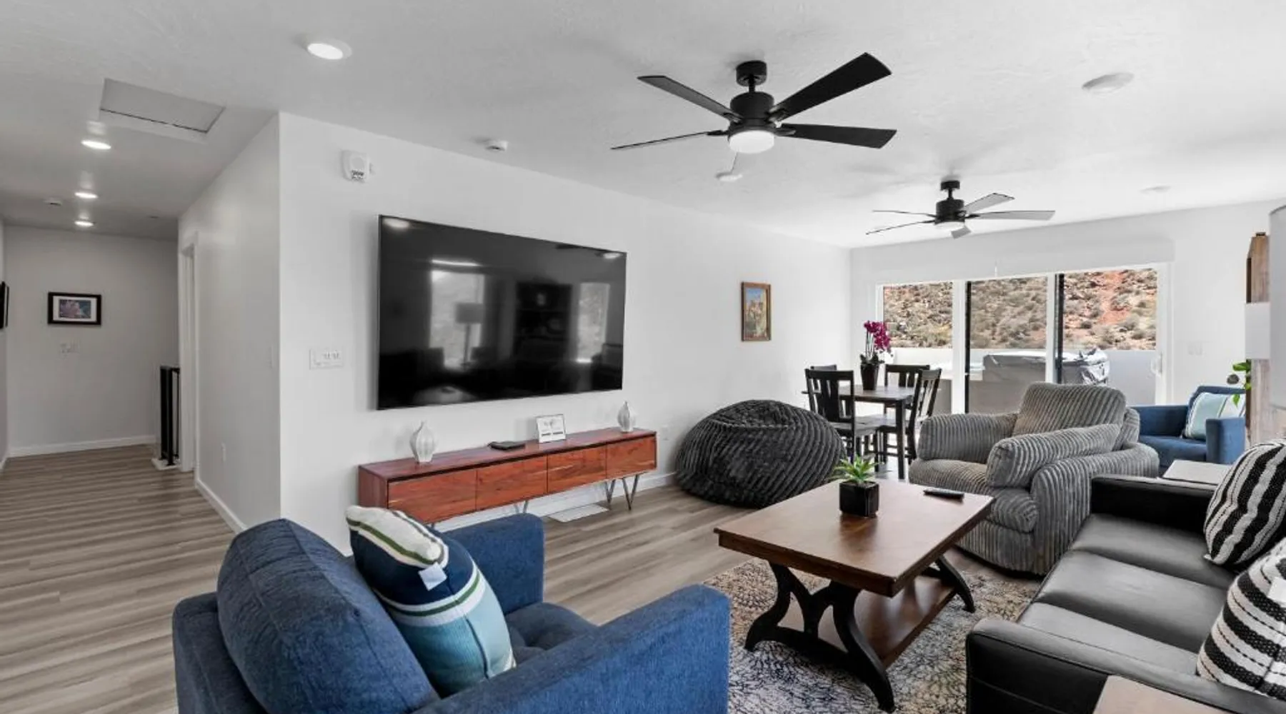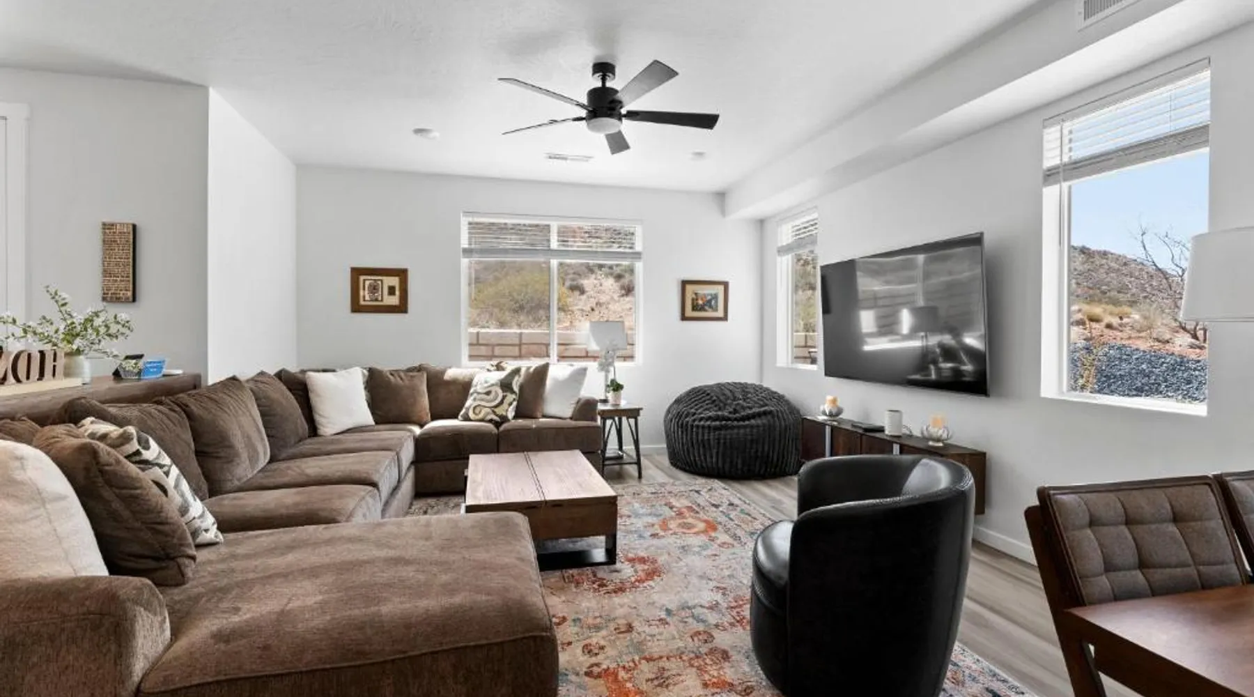 Spacious Accommodations: Touch of Class - 5BR - Hot Tub & Near Zion offers a spacious apartment in Hurricane. The property features five bedrooms and six bathrooms, ensuring ample space for all guests. Leisure Facilities: Guests can enjoy an indoor swimming pool, fitness center, and outdoor swimming pool. Free WiFi is available throughout the apartment, enhancing the stay experience. Comfortable Amenities: The apartment includes air-conditioning, a hot tub, washing machine, patio, kitchen, and mountain views. Additional amenities include a dining table, outdoor furniture, and a barbecue. Local Attractions: St. George Temple is 9.9 mi away, Pine Valley Chapel 5.6 mi, and Dixie State University 8.7 mi from the property. St. George Regional Airport is 19 mi distant. This apartment's standout feature is the hot tub. This spacious apartment includes 1 living room, 5 separate bedrooms and 6 bathrooms with a bath and free toiletries. Guests will find a stovetop, a refrigerator, a dishwasher and kitchenware in the well-equipped kitchen. The apartment also features a barbecue. The air-conditioned apartment offers a TV, a washing machine, a private entrance, a tea and coffee maker as well as mountain views. The unit has 8 beds.