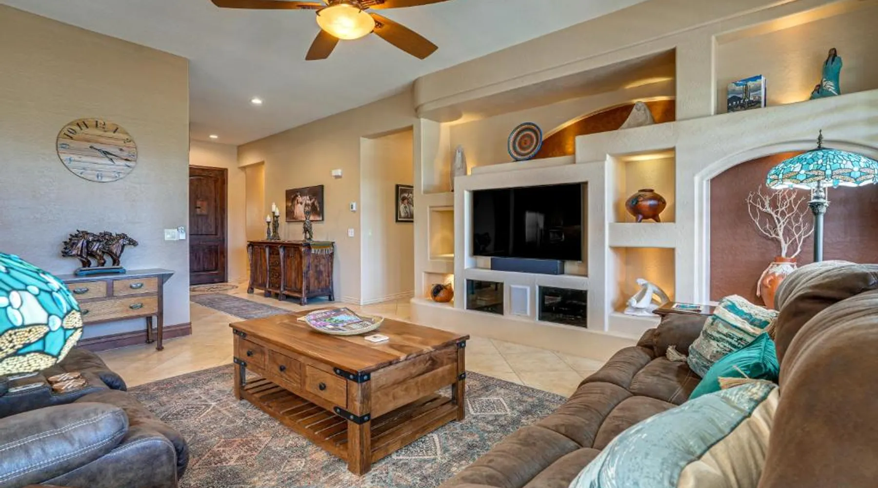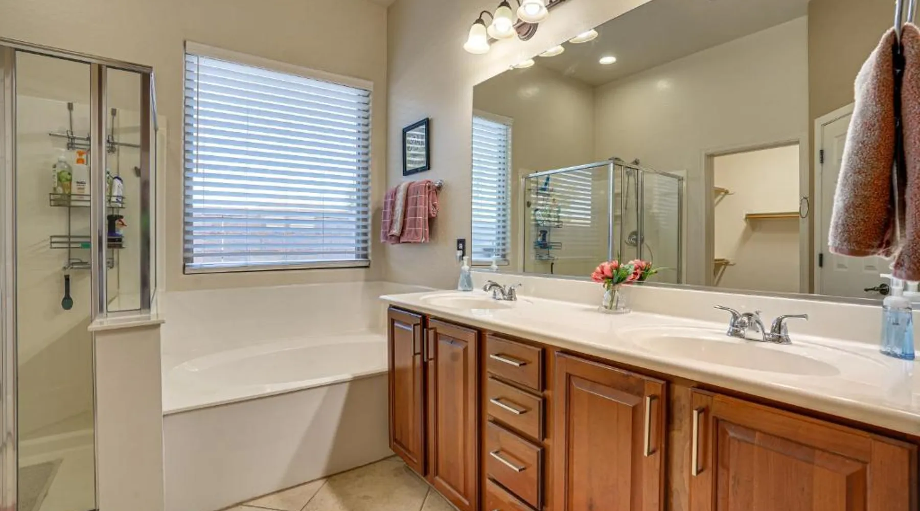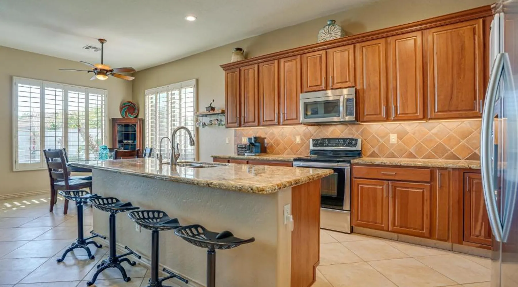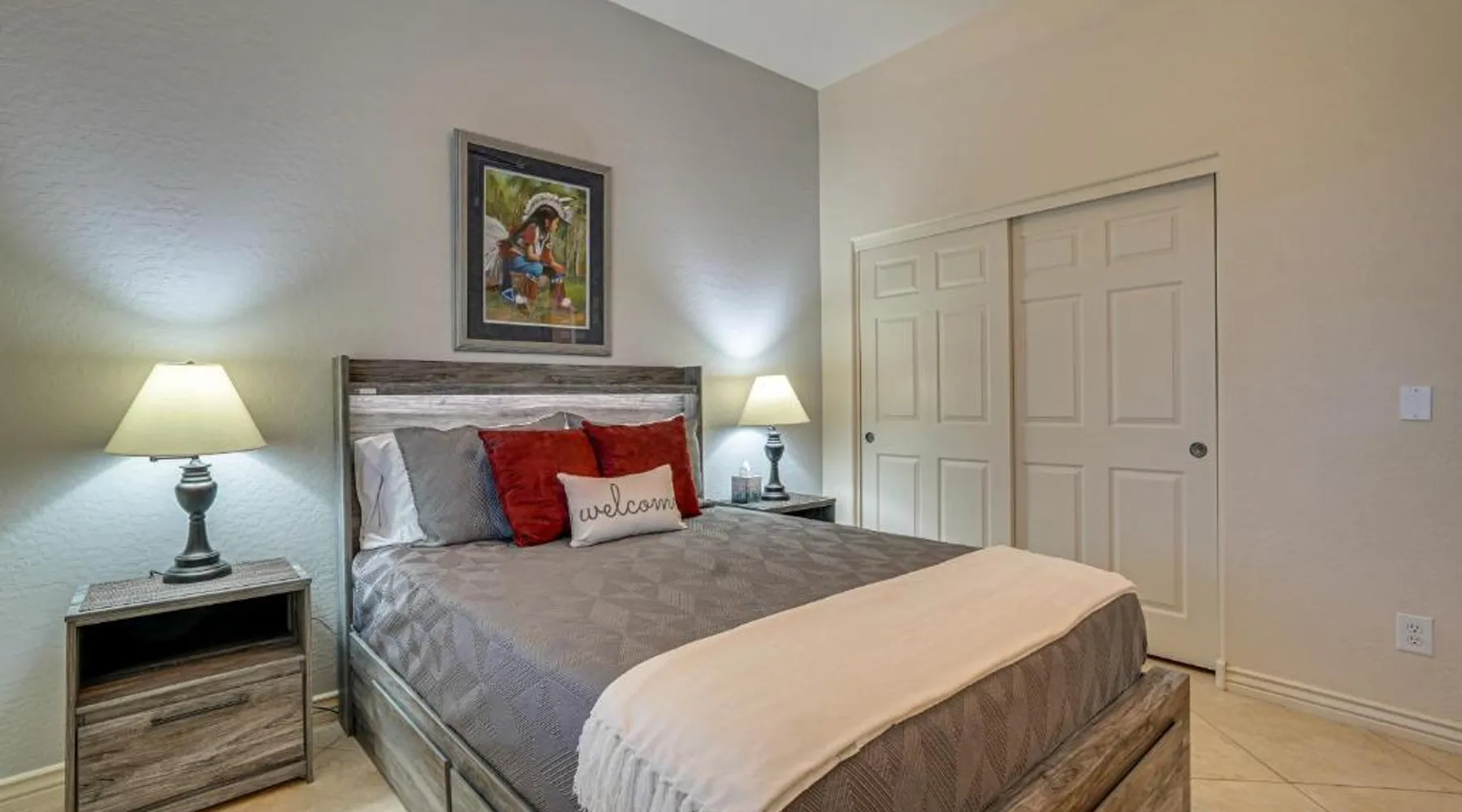 Spacious Accommodations: Walk to Parks Home with Pool in Surprise offers a spacious holiday home with three bedrooms and two bathrooms. The living room provides ample space for relaxation. Outdoor Amenities: Guests can enjoy an outdoor swimming pool and a hot tub. The property features a patio and an outdoor dining area, perfect for outdoor activities. Modern Facilities: The home includes free WiFi, air-conditioning, and a fully equipped kitchen with a coffee machine and dishwasher. Additional amenities include a washing machine, work desk, and TV. Convenient Location: Located 35 mi from Scottsdale Airport, the property is close to attractions such as State Farm Stadium (17 mi), Castles and Coasters (22 mi), and Deer Valley Rock Art Center (22 mi). Guests will have a special experience as this holiday home offers a private pool and a hot tub. Featuring a private entrance, this air-conditioned holiday home consists of 1 living room, 3 separate bedrooms and 2 bathrooms with a bath and a shower. Guests can make meals in the kitchen that is equipped with a stovetop, a refrigerator, a dishwasher and kitchenware. The spacious holiday home provides a washing machine, a coffee machine, a wardrobe, tumble dryer, as well as a flat-screen TV with cable channels. The unit offers 3 beds.