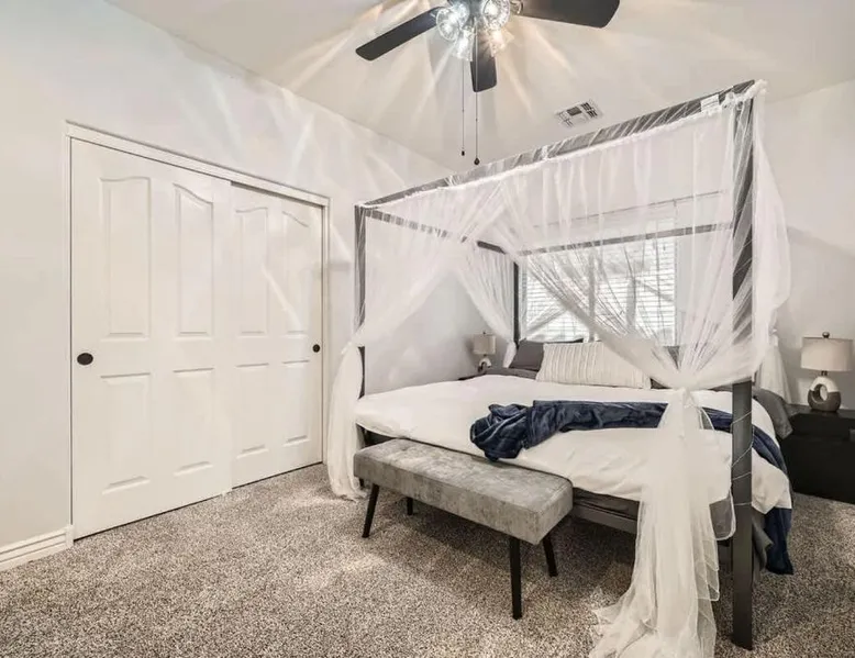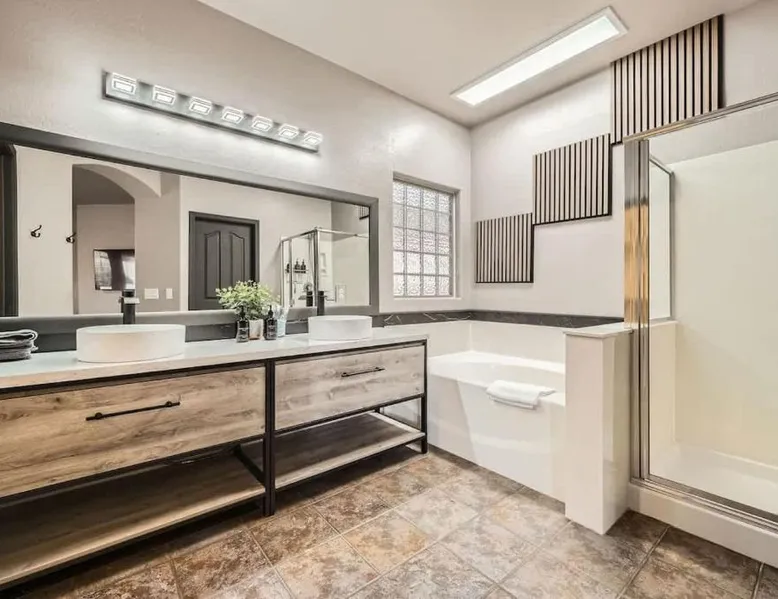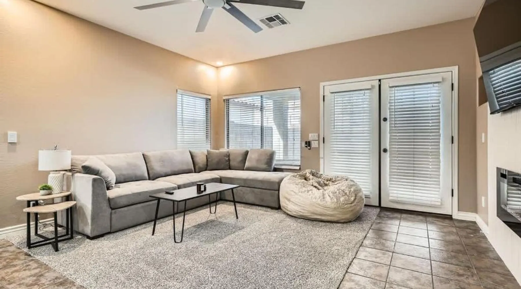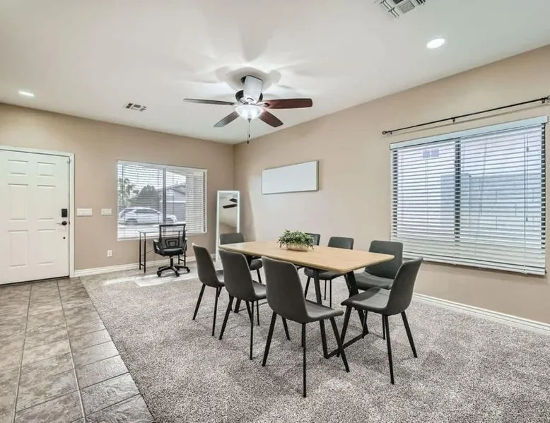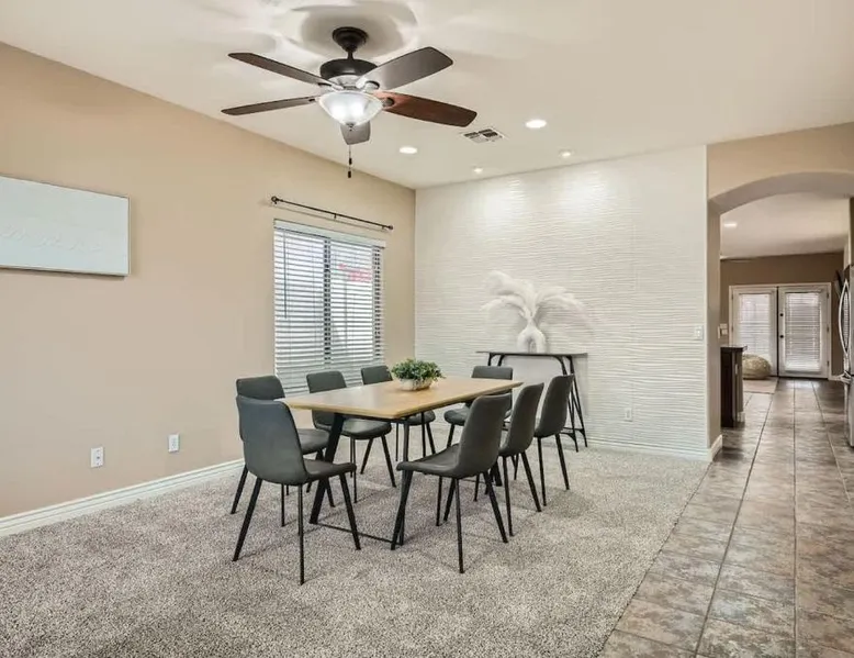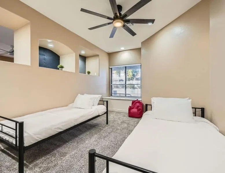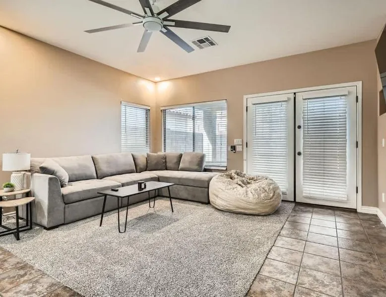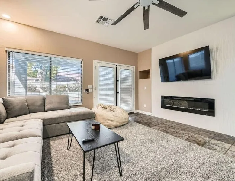 Spacious Accommodations: Whitton House in Avondale offers a spacious holiday home with three bedrooms and two bathrooms. The living room features a comfortable sofa and a dining table, ideal for relaxation and entertainment. Modern Amenities: Guests enjoy free WiFi, air-conditioning, and a fully equipped kitchen with a refrigerator, microwave, dishwasher, and oven. Additional amenities include a washing machine, dishwasher, and a private entrance. Outdoor Spaces: The property includes a hot tub and a fire pit, perfect for relaxation. Outdoor furniture provides a comfortable space to unwind and enjoy the Arizona sun. Convenient Location: Located 22 mi from Phenix Sky Harbor International Airport, Whitton House is close to attractions such as State Farm Stadium (7.5 mi) and Phenix Art Museum (18 mi). Free toiletries and a hairdryer are provided for added comfort. This apartment's special feature is the fireplace. This spacious apartment includes 1 living room, 3 separate bedrooms and 2 bathrooms with a bath and free toiletries. Guests can make meals in the kitchen that has a stovetop, a refrigerator, a dishwasher and kitchenware. The apartment offers air conditioning, a washing machine, a private entrance, a tea and coffee maker, as well as a TV. The unit has 5 beds.