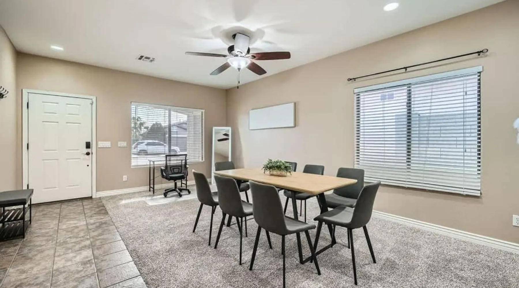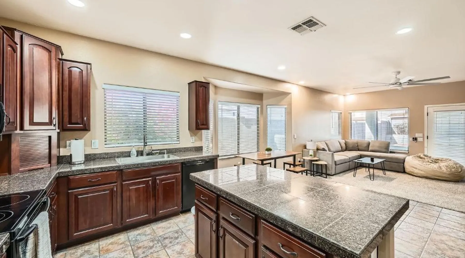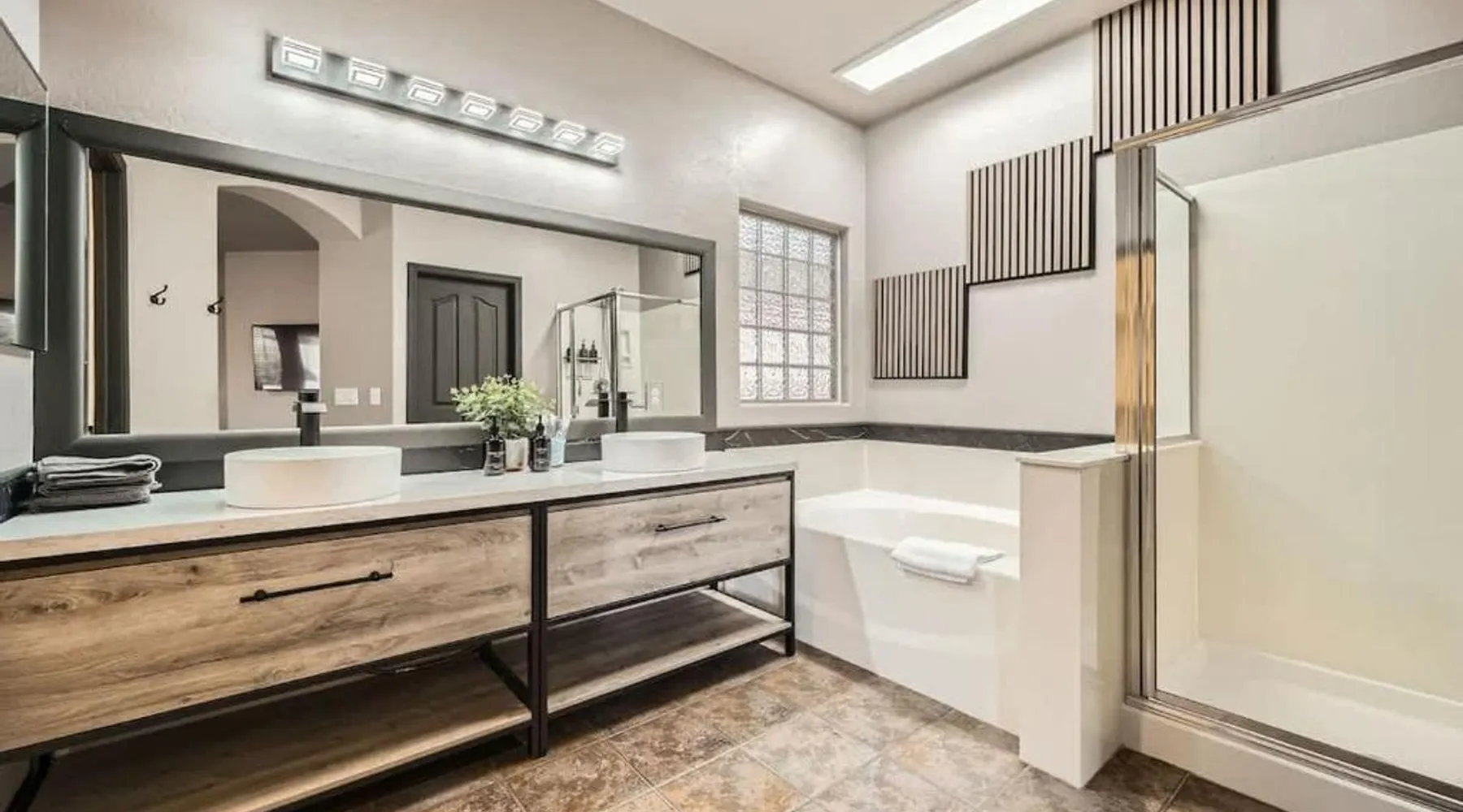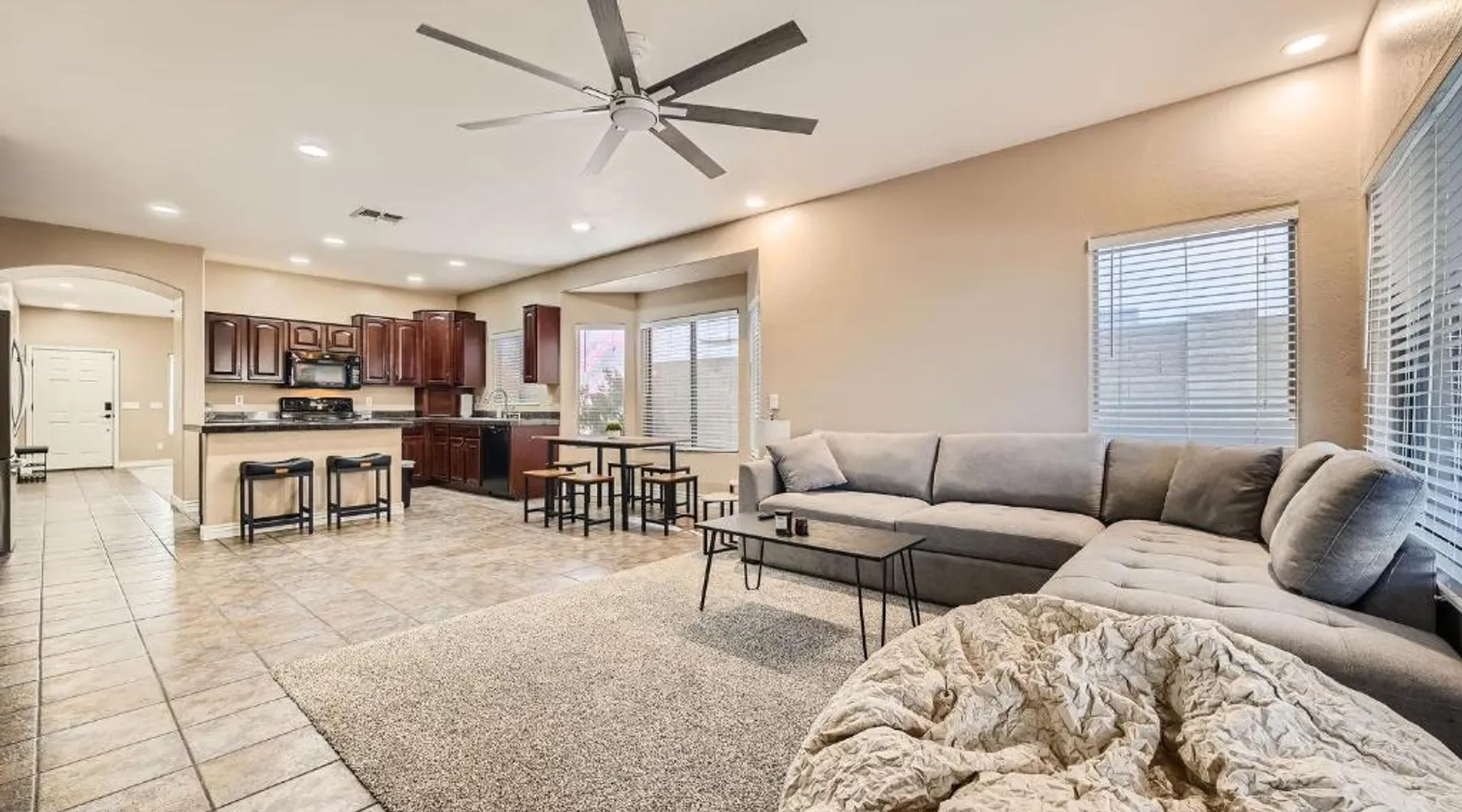 Spacious Accommodations: Whitton House in Avondale offers a spacious holiday home with three bedrooms and two bathrooms. The living room features a comfortable sofa and a dining table, ideal for relaxation and entertainment. Modern Amenities: Guests enjoy free WiFi, air-conditioning, and a fully equipped kitchen with a refrigerator, microwave, dishwasher, and oven. Additional amenities include a washing machine, dishwasher, and a private entrance. Outdoor Spaces: The property includes a hot tub and a fire pit, perfect for relaxation. Outdoor furniture provides a comfortable space to unwind and enjoy the Arizona sun. Convenient Location: Located 22 mi from Phenix Sky Harbor International Airport, Whitton House is close to attractions such as State Farm Stadium (7.5 mi) and Phenix Art Museum (18 mi). Free toiletries and a hairdryer are provided for added comfort. This apartment's special feature is the fireplace. This spacious apartment includes 1 living room, 3 separate bedrooms and 2 bathrooms with a bath and free toiletries. Guests can make meals in the kitchen that has a stovetop, a refrigerator, a dishwasher and kitchenware. The apartment offers air conditioning, a washing machine, a private entrance, a tea and coffee maker, as well as a TV. The unit has 5 beds.