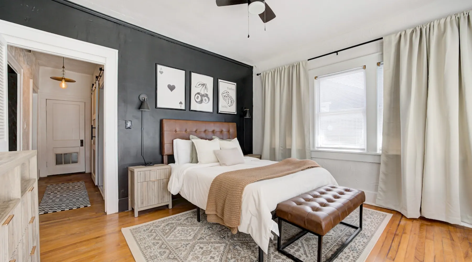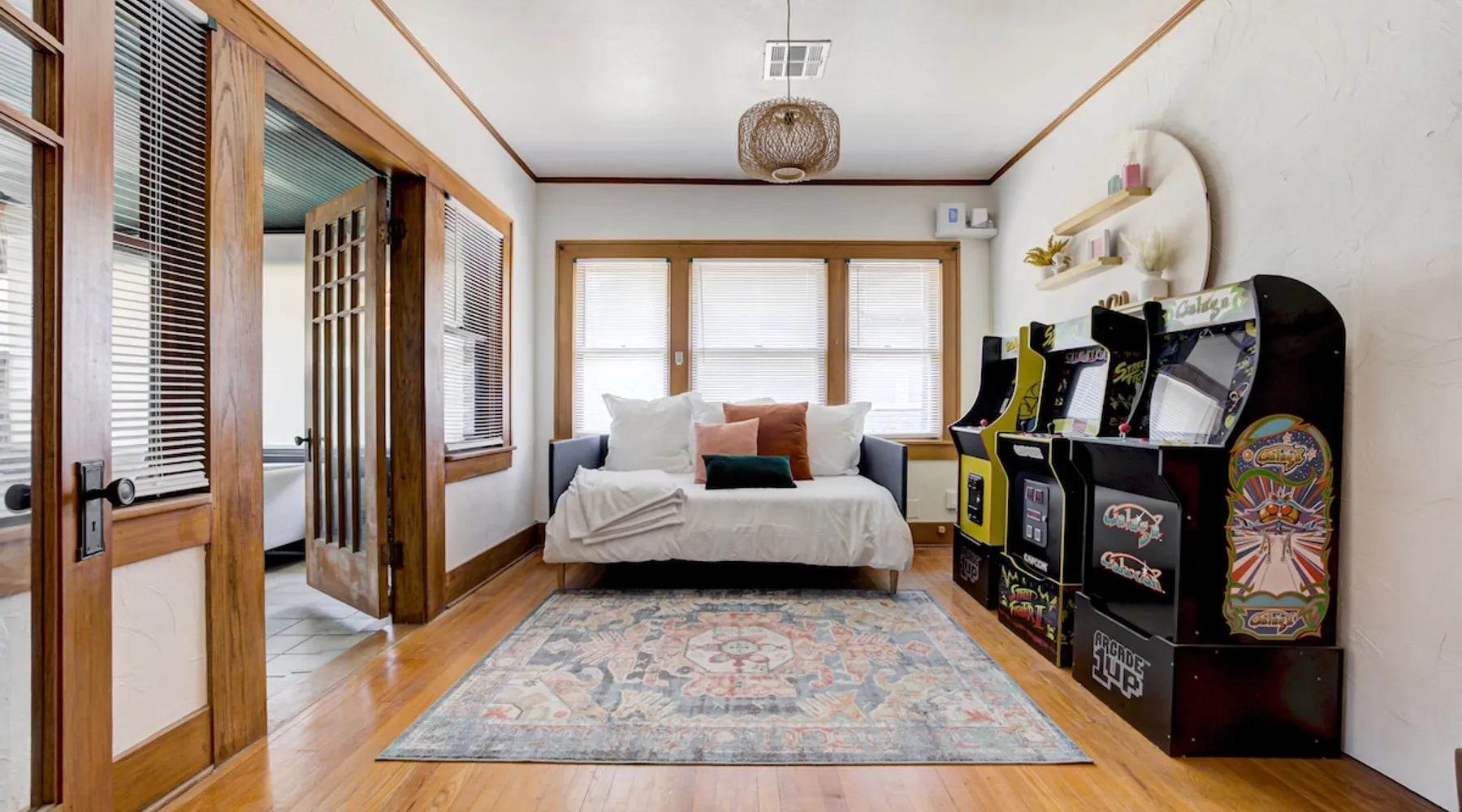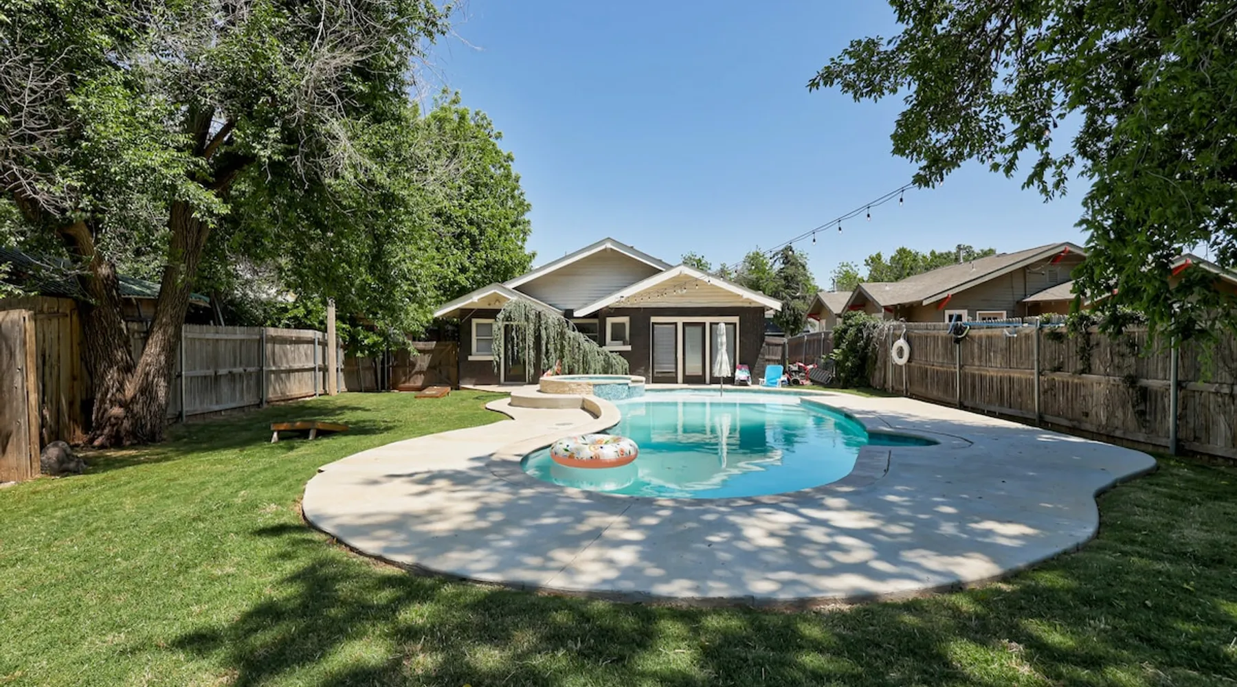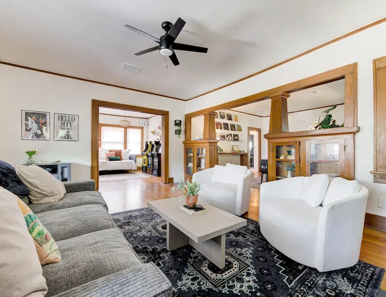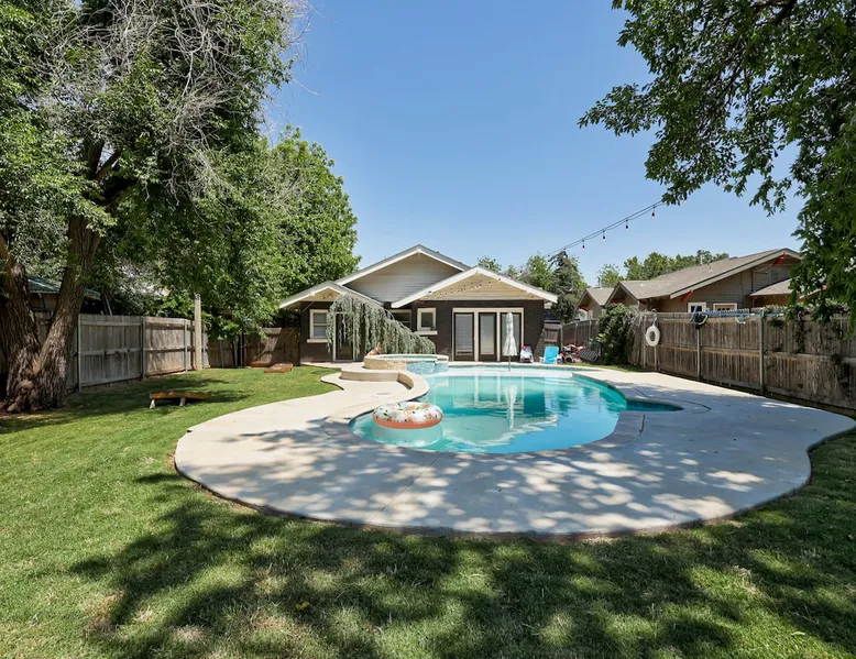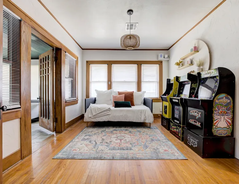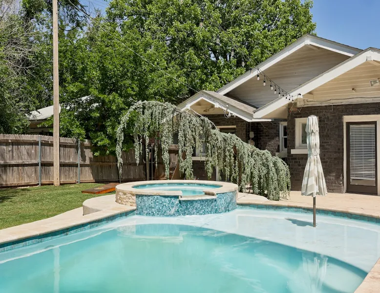 Welcome to your urban oasis in the heart of Oklahoma City! Nestled in downtown plaza district our home offers the perfect blend of convenience and relaxation. Whether you're here for business or leisure, unwind in style and enjoy the vibrant surroundings just steps away from the door. Best of all, it features a private backyard oasis complete with a serene swimming pool—an unexpected treat in the middle of the city. The space Step into a one-of-a-kind 1929 Modern Art Deco home full of character and comfort. This home features original hardwood floors that are worn with age but still in great condition, adding warmth and character to each room. The house includes three bedrooms: a spacious primary bedroom, a comfortable guest bedroom, and a third room that was originally an office and now functions as a bright sunroom—perfect for relaxing or as an additional sleeping space. Although there is one bathroom, prepare to be amazed by the oversized uniqueness of the space extremely versatile with "get ready with me" stations to a double shower head. This stunning space is a celebration of 1920s Art Deco luxury, featuring bold black, white and gold tones that create a rich Great Gatsby atmosphere. The living spaces are furnished with brand-new furniture, blending modern comfort with the home’s historic charm. The layout offers a cozy living room, a fully equipped kitchen, and a dining area ideal for gathering. Outside, the backyard offers a true retreat with a private pool featuring a sun shelf for lounging. There’s also space to unwind or play, including outdoor games like cornhole. Every room and space in the house has been thoughtfully designed to provide comfort, character, and a welcoming atmosphere. Guest access Guests will have full access to the entire home, including all indoor and outdoor spaces. Entry is easy and secure with a keyless code lock on the front door. You'll receive your unique access code before check-in for a smooth and contactless arrival. Other things to note Key Amenities: 🪩🍾 There are additional fees for events and parties. Prior approval needed as well 🛁 Outdoor Hot Tub for 4-6 people: Hot tub can be turned on remotely from 7am-11pm upon request. We do not run it all day! 👾 Three Arcade machines for adults and children 🅿️ Free Parking - own driveway 📺 Large 55" Smart TV in living room