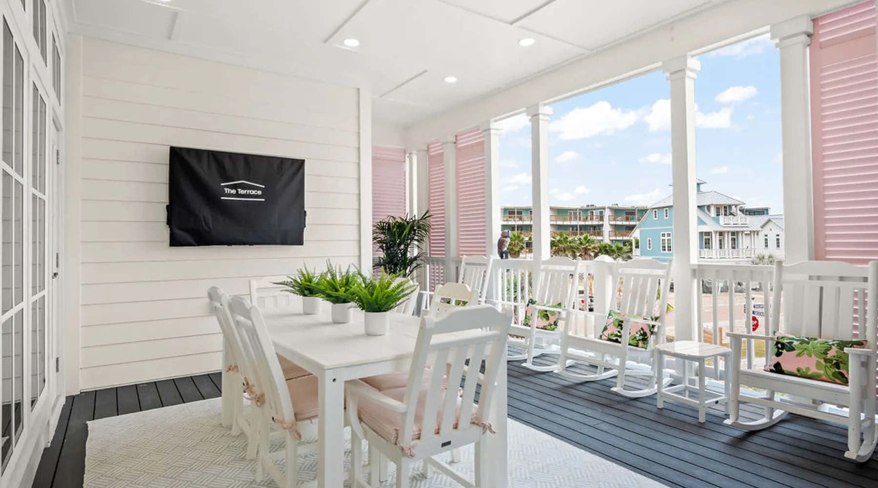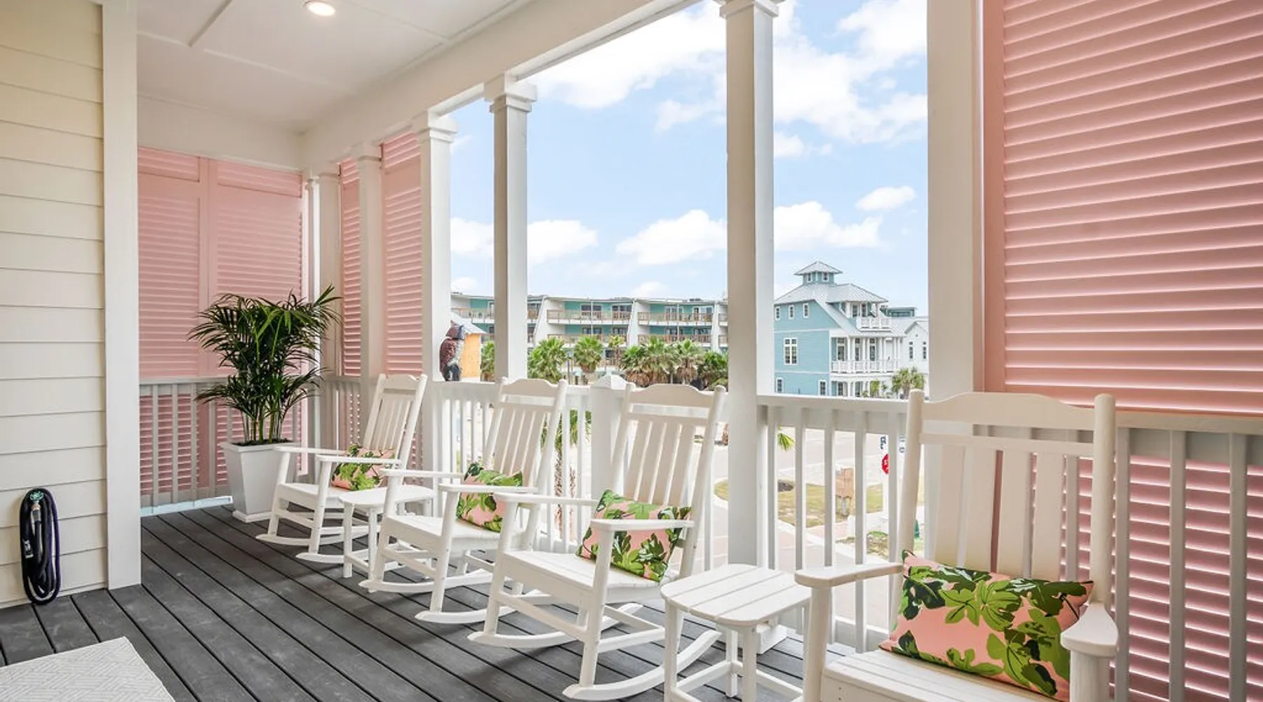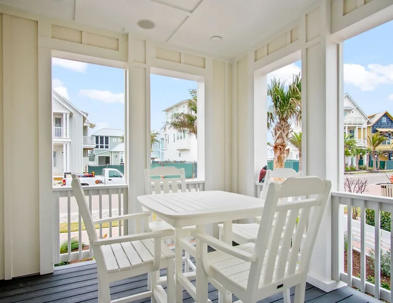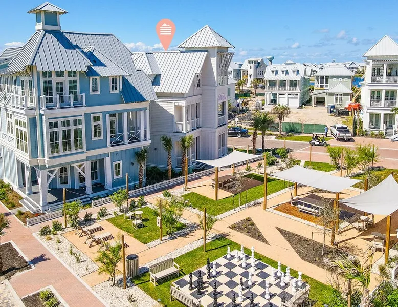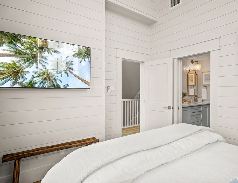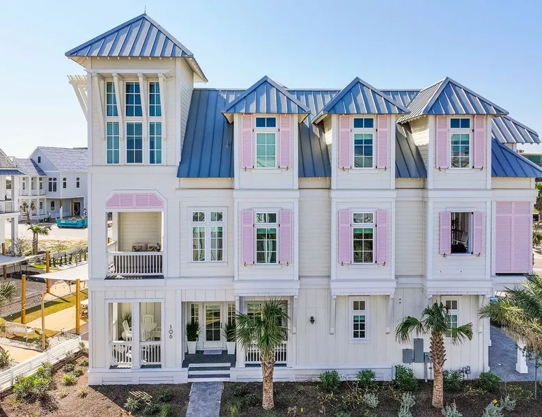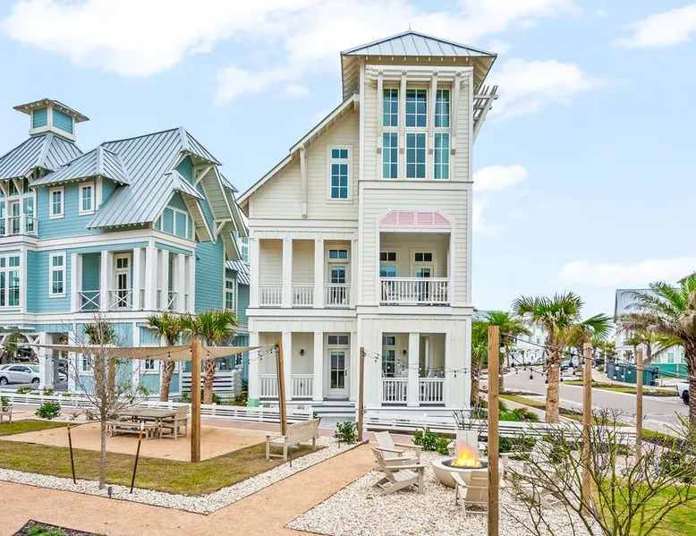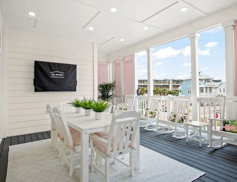 Shuttered island style defines this ethereal, three-story beach home at Cinnamon Shore South. With elevator and designer details, it’s a serene, coastal sanctuary where light floods every corner, creating a sense of warmth and openness. Overlook charming Tailwind Park and get access to 20-plus, lavish amenities, including nearby luxury pools and private beach access just one block away. The space MAIN LIVING SPACE: You’ll relax the minute you step inside this gleaming white home decked with pink shutters. Soft, neutral tones dress décor, with clean white walls and creamy linen furnishings exuding a sense of calm and elegance. Touches of ocean-inspired pinks, blues, and greens add subtle pops of color. The heart of the home is the 2nd-floor open concept living room, with sweeping views through large windows to the adjacent pocket park and coastal landscape. Lounge under 9-foot ceilings on a comfortable sectional, other plush seating, or a pair of window seats, as sunlight floods inside. A gourmet kitchen overlooks the dining area for 10, where you can host seafood suppers or epic game nights. Enjoy generous counterspace on the large island with seating for 6, along with Café Appliances and butler’s pantry w/ wet bar and wine fridge, perfect for entertaining. Prep for everyday meals and special occasions in this elegant space, while the crowd spills onto one of several covered decks. On the grilling balcony, an outdoor dining table and a row of rocking chairs have a great view of the wall-mounted TV. Lounge, dine, and toast to the coast, then light the fire pit on the front balcony for cozy nights under the stars. A downstairs den with wet bar and wicker desk tucked under the stairway accommodates smaller groups. SLEEPING QUARTERS: In a third-floor primary suite, drapes fall from the highest of ceilings to the floor, framing the king-size bed. In the luxe luxe bathroom a rich, marbleized tile surrounds the shower. Another king suite, a queen suite, and bunk for 4 with mariner style accommodate guests. A queen-size pull-out sofa sleeps two more. Every room features details that delight all with ensuite bathrooms. The bunk room’s island-chart wallpaper, private balcony, and bathroom with bench seating shower makes kids feel special too. GREAT FEATURES: Unique amenities abound! The pink vanity and designer wallpaper in a powder room, for instance. Or the artwork in the elevator that you can admire while zipping up or down to all three levels. A port-a-crib and booster seat make it easy for young families to do the beach. And tech features make it even more fun: 8 smart TVs, Sonos sound systems, and exterior speakers. While the larger car garage is not available, you have access to the secured golf cart garage for safely storing beach gear or a golf cart during your stay. At Dancing Queen, sophistication meets the sea. It’s perfect for family vacations, group getaways, or a relaxing beach retreat with all the comforts and amenities you could desire. 2 Kings, 1 Queen, 1 Twin Bunk, 2 Single Twins, 1 Queen Sleeper Sofa ***NO PETS ALLOWED*** IF A PET IS SEEN ENTERING A NON-PET FRIENDLY HOME, GUEST WILL BE CHARGED A PENALTY AND/OR EVICTED. Dancing Queen is a non-pet friendly property, if a pet is seen entering Dancing Queen the homeowner and/or Cinnamon Shore Vacation Rentals has the right to immediately evict the renter with no refunds, regardless of time of day or night. An automatic non-refundable penalty fee of $1000 will be added to the reservation, as well as any additional charges related to cleaning fees and/or damage in the home. Please review all policies at: *Please be advised there is construction beside this property. Construction is limited to normal business hours 8am-6pm Monday-Saturday. Please call the office for more information. **Driving 1.5 miles is necessary from Cinnamon Shore South to access Cinnamon Shore North's amenities. *Smart TV and Live TV capabilities available, no direct cable. STR#603251