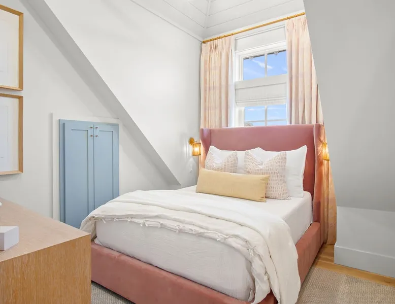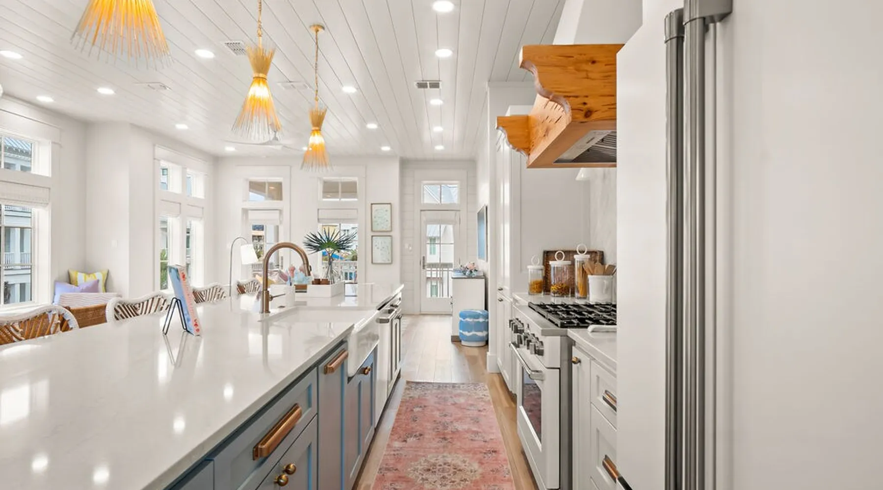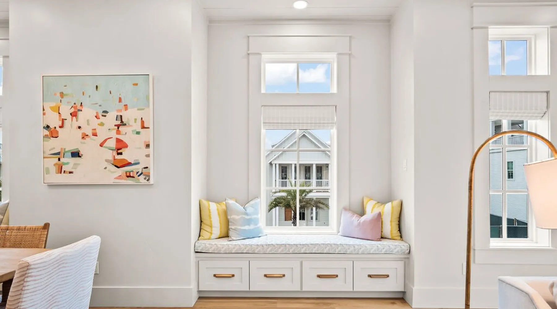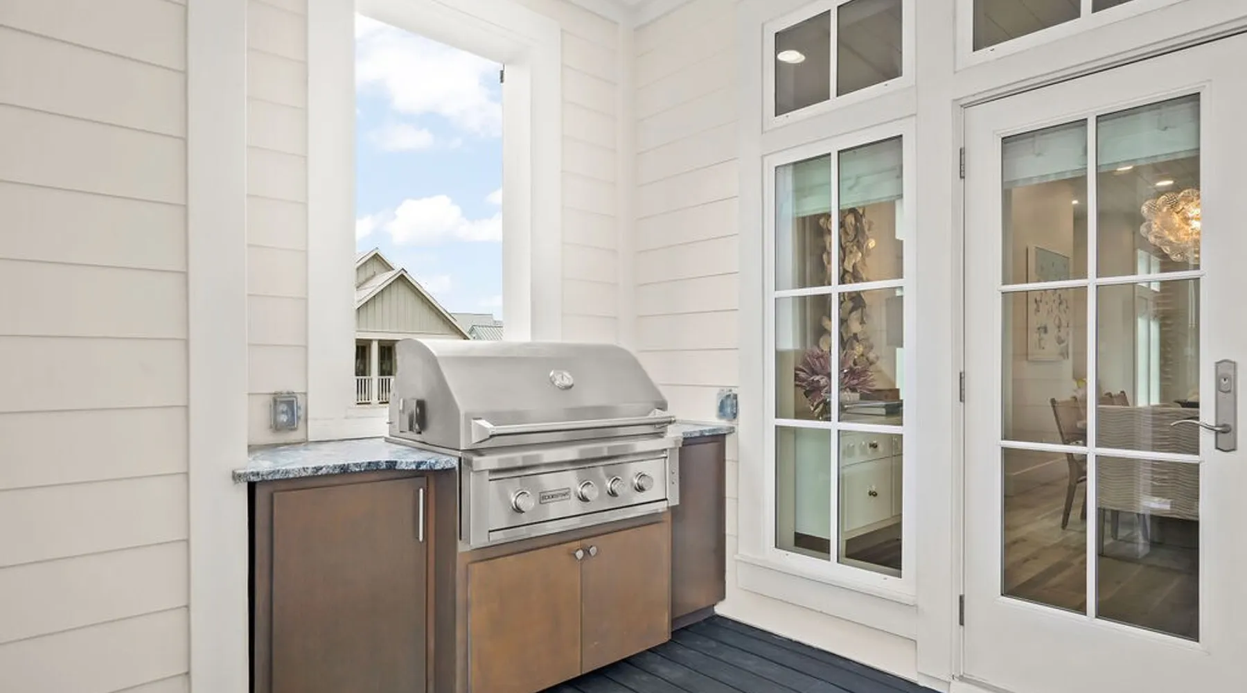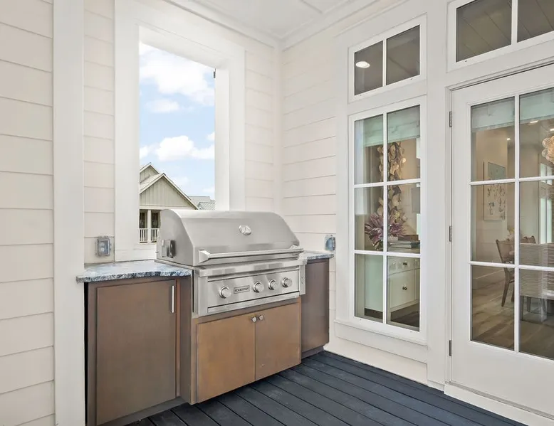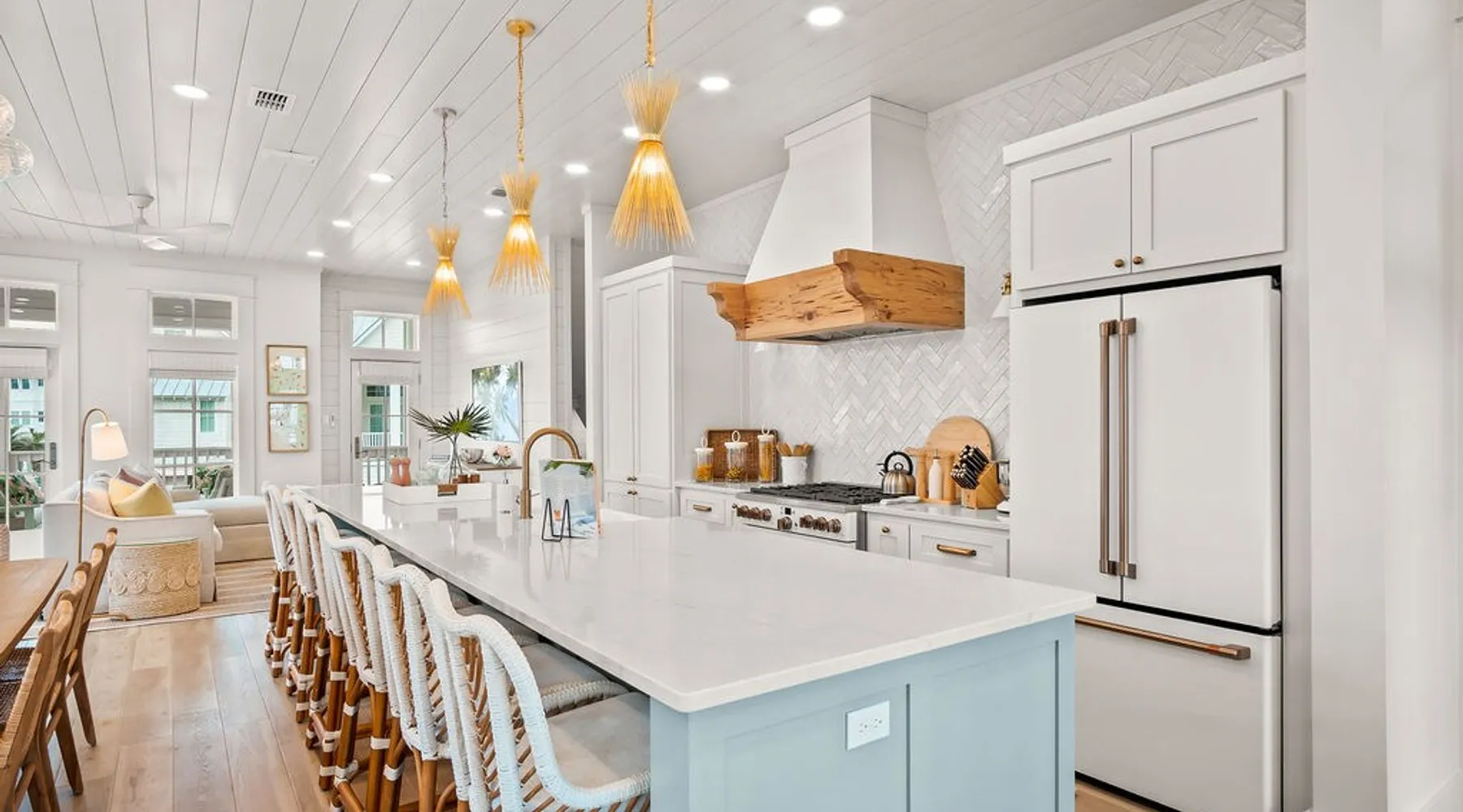 Shuttered island style defines this ethereal, three-story beach home at Cinnamon Shore South. With elevator and designer details, it’s a serene, coastal sanctuary where light floods every corner, creating a sense of warmth and openness. Overlook charming Tailwind Park and get access to 20-plus, lavish amenities, including nearby luxury pools and private beach access just one block away. The space MAIN LIVING SPACE: You’ll relax the minute you step inside this gleaming white home decked with pink shutters. Soft, neutral tones dress décor, with clean white walls and creamy linen furnishings exuding a sense of calm and elegance. Touches of ocean-inspired pinks, blues, and greens add subtle pops of color. The heart of the home is the 2nd-floor open concept living room, with sweeping views through large windows to the adjacent pocket park and coastal landscape. Lounge under 9-foot ceilings on a comfortable sectional, other plush seating, or a pair of window seats, as sunlight floods inside. A gourmet kitchen overlooks the dining area for 10, where you can host seafood suppers or epic game nights. Enjoy generous counterspace on the large island with seating for 6, along with Café Appliances and butler’s pantry w/ wet bar and wine fridge, perfect for entertaining. Prep for everyday meals and special occasions in this elegant space, while the crowd spills onto one of several covered decks. On the grilling balcony, an outdoor dining table and a row of rocking chairs have a great view of the wall-mounted TV. Lounge, dine, and toast to the coast, then light the fire pit on the front balcony for cozy nights under the stars. A downstairs den with wet bar and wicker desk tucked under the stairway accommodates smaller groups. SLEEPING QUARTERS: In a third-floor primary suite, drapes fall from the highest of ceilings to the floor, framing the king-size bed. In the luxe luxe bathroom a rich, marbleized tile surrounds the shower. Another king suite, a queen suite, and bunk for 4 with mariner style accommodate guests. A queen-size pull-out sofa sleeps two more. Every room features details that delight all with ensuite bathrooms. The bunk room’s island-chart wallpaper, private balcony, and bathroom with bench seating shower makes kids feel special too. GREAT FEATURES: Unique amenities abound! The pink vanity and designer wallpaper in a powder room, for instance. Or the artwork in the elevator that you can admire while zipping up or down to all three levels. A port-a-crib and booster seat make it easy for young families to do the beach. And tech features make it even more fun: 8 smart TVs, Sonos sound systems, and exterior speakers. While the larger car garage is not available, you have access to the secured golf cart garage for safely storing beach gear or a golf cart during your stay. At Dancing Queen, sophistication meets the sea. It’s perfect for family vacations, group getaways, or a relaxing beach retreat with all the comforts and amenities you could desire. 2 Kings, 1 Queen, 1 Twin Bunk, 2 Single Twins, 1 Queen Sleeper Sofa ***NO PETS ALLOWED*** IF A PET IS SEEN ENTERING A NON-PET FRIENDLY HOME, GUEST WILL BE CHARGED A PENALTY AND/OR EVICTED. Dancing Queen is a non-pet friendly property, if a pet is seen entering Dancing Queen the homeowner and/or Cinnamon Shore Vacation Rentals has the right to immediately evict the renter with no refunds, regardless of time of day or night. An automatic non-refundable penalty fee of $1000 will be added to the reservation, as well as any additional charges related to cleaning fees and/or damage in the home. Please review all policies at: *Please be advised there is construction beside this property. Construction is limited to normal business hours 8am-6pm Monday-Saturday. Please call the office for more information. **Driving 1.5 miles is necessary from Cinnamon Shore South to access Cinnamon Shore North's amenities. *Smart TV and Live TV capabilities available, no direct cable. STR#603251