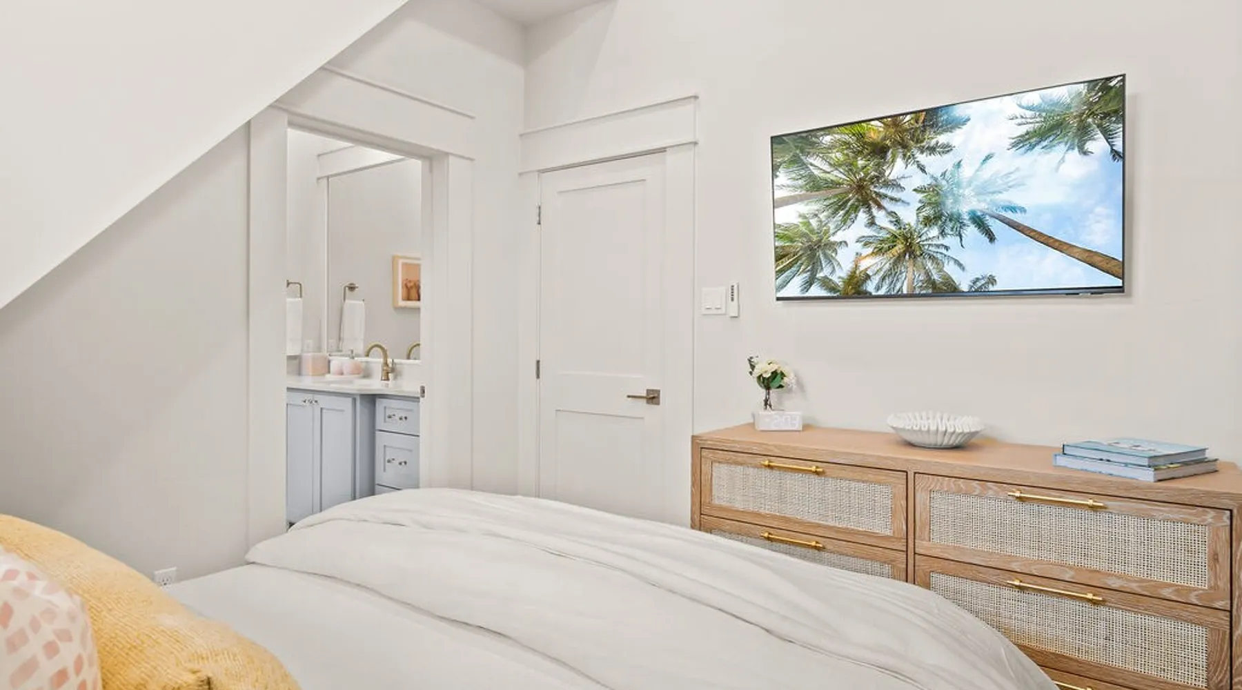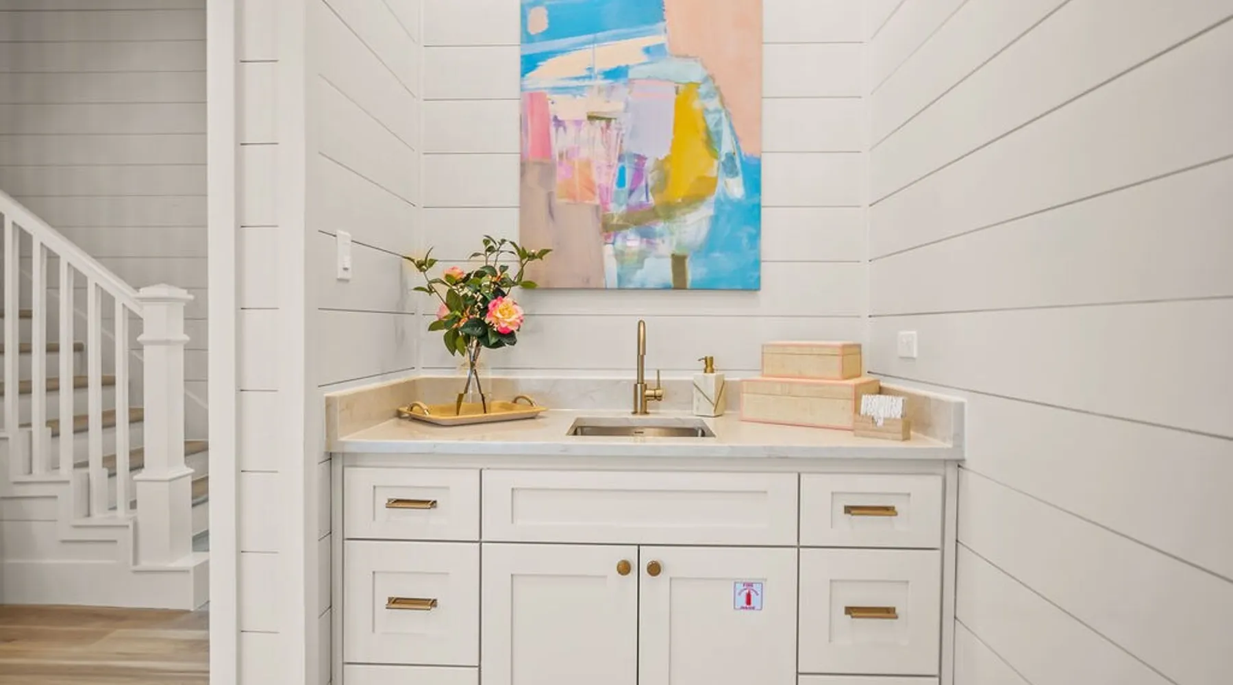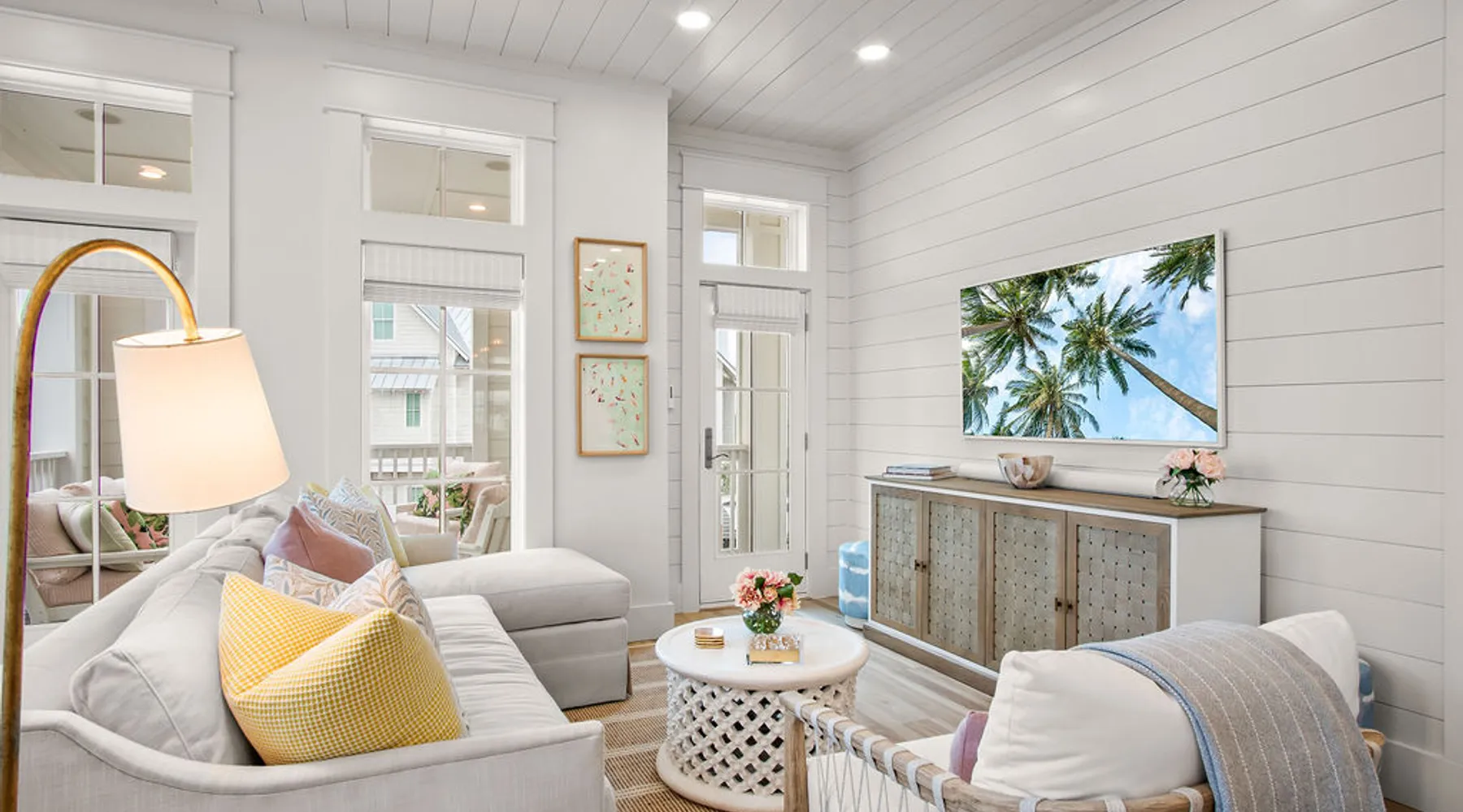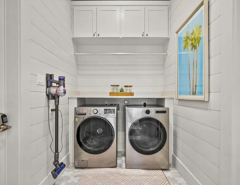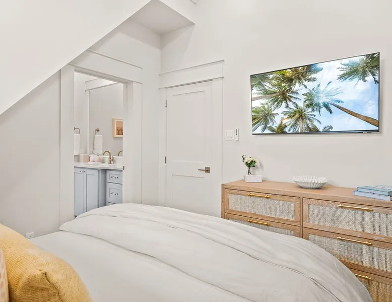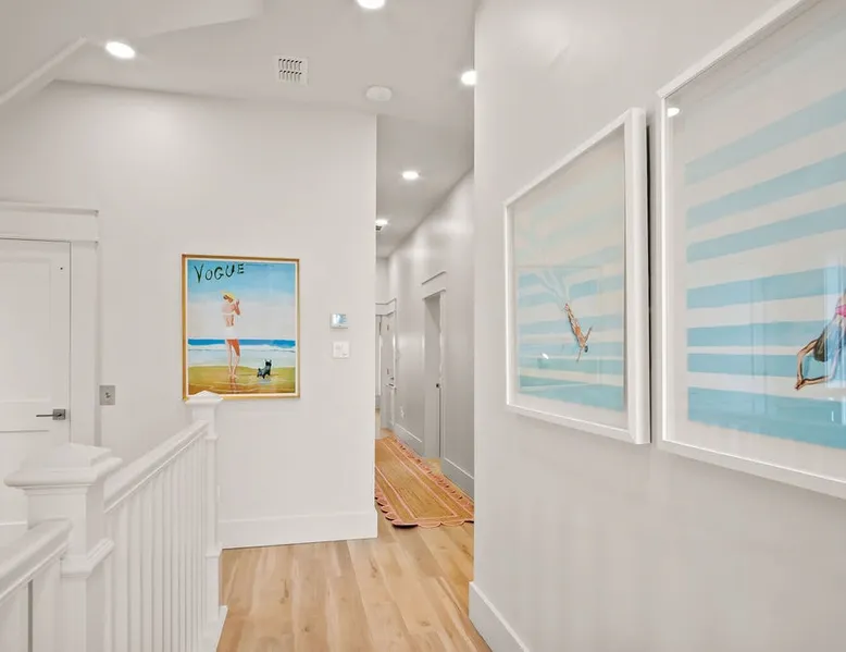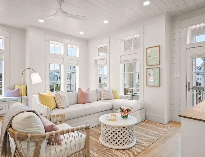 Shuttered island style defines this ethereal, three-story beach home at Cinnamon Shore South. With elevator and designer details, it’s a serene, coastal sanctuary where light floods every corner, creating a sense of warmth and openness. Overlook charming Tailwind Park and get access to 20-plus, lavish amenities, including nearby luxury pools and private beach access just one block away. The space MAIN LIVING SPACE: You’ll relax the minute you step inside this gleaming white home decked with pink shutters. Soft, neutral tones dress décor, with clean white walls and creamy linen furnishings exuding a sense of calm and elegance. Touches of ocean-inspired pinks, blues, and greens add subtle pops of color. The heart of the home is the 2nd-floor open concept living room, with sweeping views through large windows to the adjacent pocket park and coastal landscape. Lounge under 9-foot ceilings on a comfortable sectional, other plush seating, or a pair of window seats, as sunlight floods inside. A gourmet kitchen overlooks the dining area for 10, where you can host seafood suppers or epic game nights. Enjoy generous counterspace on the large island with seating for 6, along with Café Appliances and butler’s pantry w/ wet bar and wine fridge, perfect for entertaining. Prep for everyday meals and special occasions in this elegant space, while the crowd spills onto one of several covered decks. On the grilling balcony, an outdoor dining table and a row of rocking chairs have a great view of the wall-mounted TV. Lounge, dine, and toast to the coast, then light the fire pit on the front balcony for cozy nights under the stars. A downstairs den with wet bar and wicker desk tucked under the stairway accommodates smaller groups. SLEEPING QUARTERS: In a third-floor primary suite, drapes fall from the highest of ceilings to the floor, framing the king-size bed. In the luxe luxe bathroom a rich, marbleized tile surrounds the shower. Another king suite, a queen suite, and bunk for 4 with mariner style accommodate guests. A queen-size pull-out sofa sleeps two more. Every room features details that delight all with ensuite bathrooms. The bunk room’s island-chart wallpaper, private balcony, and bathroom with bench seating shower makes kids feel special too. GREAT FEATURES: Unique amenities abound! The pink vanity and designer wallpaper in a powder room, for instance. Or the artwork in the elevator that you can admire while zipping up or down to all three levels. A port-a-crib and booster seat make it easy for young families to do the beach. And tech features make it even more fun: 8 smart TVs, Sonos sound systems, and exterior speakers. While the larger car garage is not available, you have access to the secured golf cart garage for safely storing beach gear or a golf cart during your stay. At Dancing Queen, sophistication meets the sea. It’s perfect for family vacations, group getaways, or a relaxing beach retreat with all the comforts and amenities you could desire. 2 Kings, 1 Queen, 1 Twin Bunk, 2 Single Twins, 1 Queen Sleeper Sofa ***NO PETS ALLOWED*** IF A PET IS SEEN ENTERING A NON-PET FRIENDLY HOME, GUEST WILL BE CHARGED A PENALTY AND/OR EVICTED. Dancing Queen is a non-pet friendly property, if a pet is seen entering Dancing Queen the homeowner and/or Cinnamon Shore Vacation Rentals has the right to immediately evict the renter with no refunds, regardless of time of day or night. An automatic non-refundable penalty fee of $1000 will be added to the reservation, as well as any additional charges related to cleaning fees and/or damage in the home. Please review all policies at: *Please be advised there is construction beside this property. Construction is limited to normal business hours 8am-6pm Monday-Saturday. Please call the office for more information. **Driving 1.5 miles is necessary from Cinnamon Shore South to access Cinnamon Shore North's amenities. *Smart TV and Live TV capabilities available, no direct cable. STR#603251