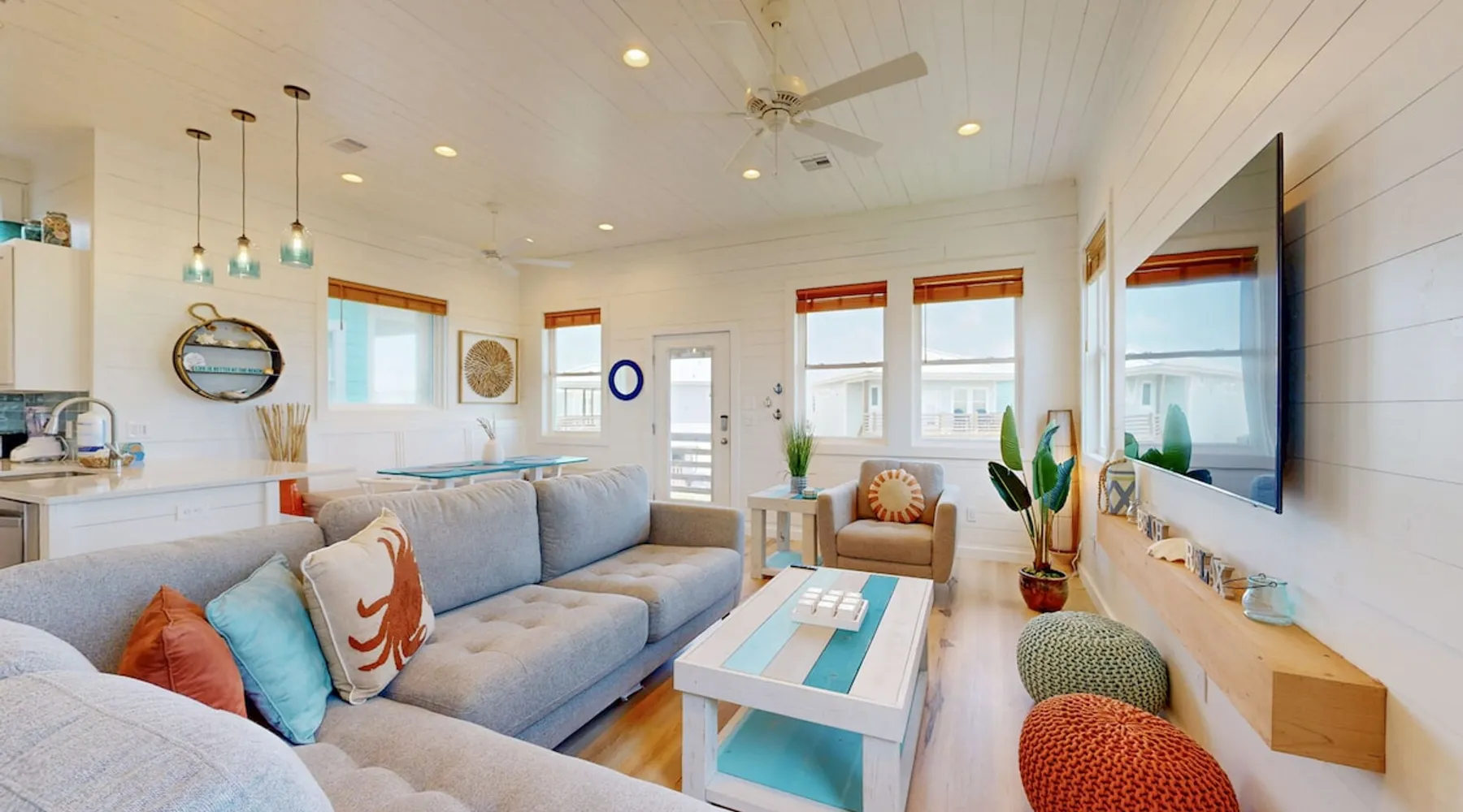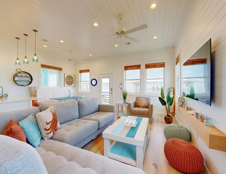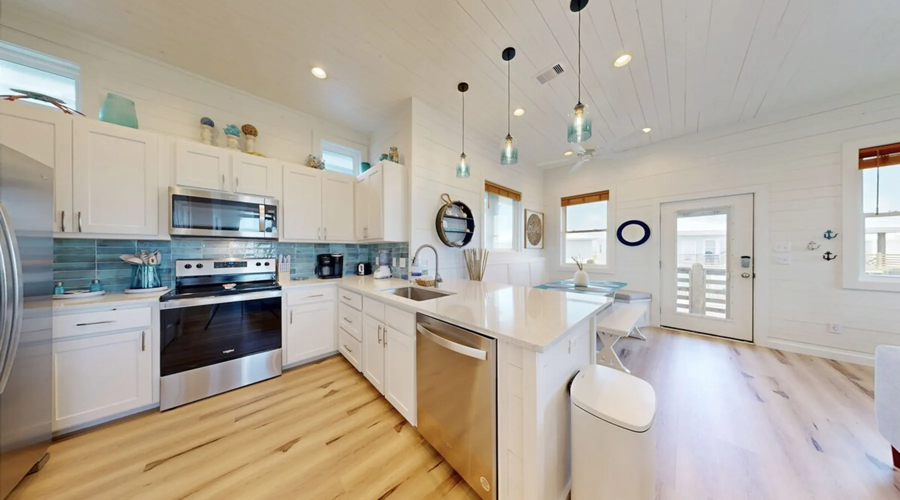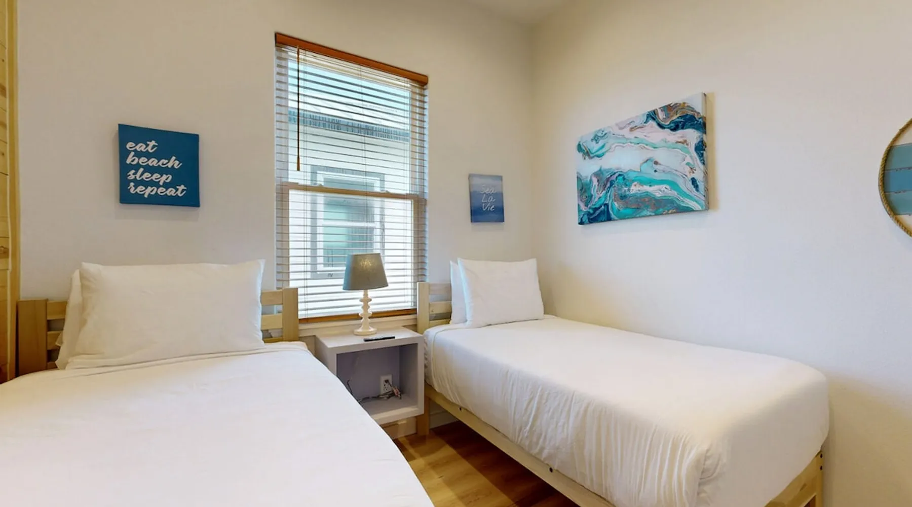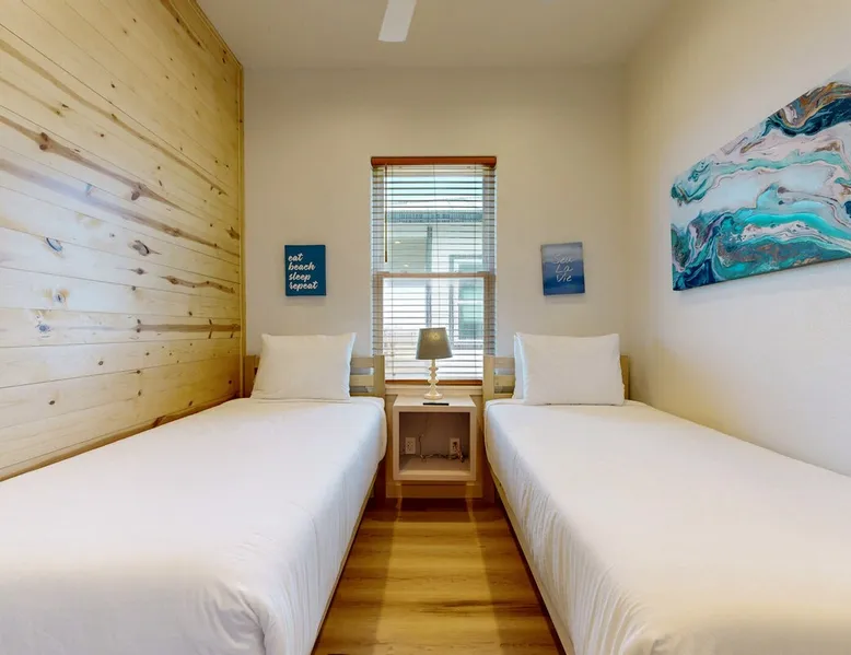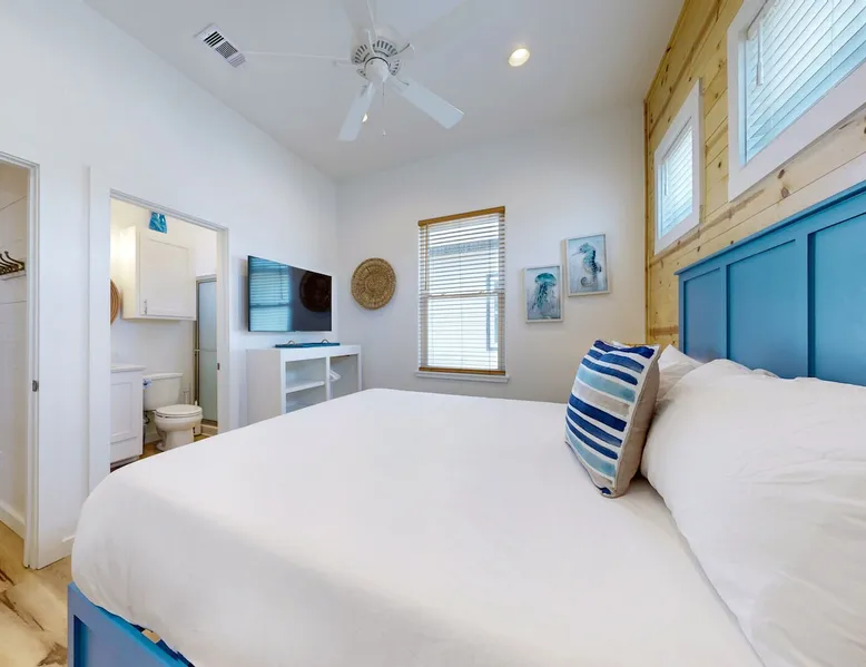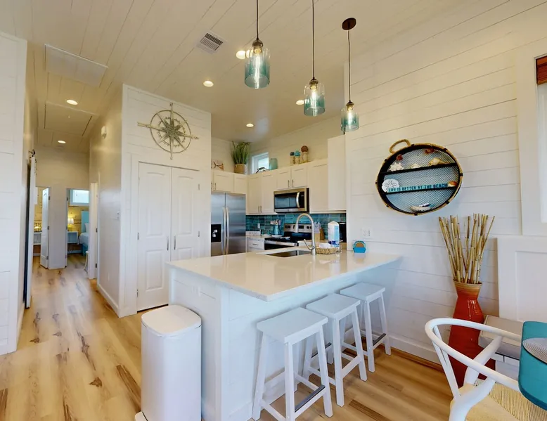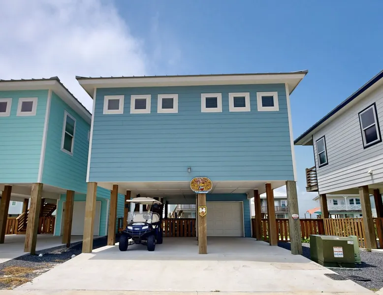 SRB34: Talk To The Sand 3BD, 3.5BA, Shared Pools, Golf Cart Included, Pet Friendly, Boardwalk to the Beach Welcome to "Talk to the Sand," your perfect beachfront retreat nestled in the charming community of Sunrise Beach. This beautifully designed home features 3 bedrooms and 3.5 bathrooms, thoughtfully decorated in soothing coastal hues of turquoise and blue, with bright white shiplap walls that create a serene atmosphere. The space SRB34: Talk To The Sand 3BD, 3.5BA, Shared Pools, Golf Cart Included, Pet Friendly, Boardwalk to the Beach Welcome to "Talk to the Sand," your perfect beachfront retreat nestled in the charming community of Sunrise Beach. This beautifully designed home features 3 bedrooms and 3.5 bathrooms, thoughtfully decorated in soothing coastal hues of turquoise and blue, with bright white shiplap walls that create a serene atmosphere. As you step inside, you’ll be greeted by an open concept floor plan that seamlessly connects the living, dining, and kitchen areas. The inviting living room boasts a comfortable sectional sofa, which conveniently folds out into a queen sleeper for extra guests, along with a cozy side chair and a TV—ideal for movie nights with family and friends. The dining table comfortably seats six, while the kitchen bar provides additional seating for three, making it perfect for entertaining. The fully stocked kitchen is a chef's dream, featuring stainless steel appliances and ample prep space for all your culinary adventures. A stackable washer and dryer add convenience to your stay. All three bedrooms and full baths are conveniently located on the same level, ensuring easy access for everyone. The master suite features its own ensuite bath, providing a private oasis for relaxation. Step outside to discover parking for two vehicles, a charcoal grill for outdoor cooking, an outdoor dining table for al fresco meals, and a half bath for convenience. Your stay also includes a six-passenger golf cart, making it easy to explore the beautiful surroundings. As part of this vibrant community, you can enjoy a shared pool, a boardwalk leading directly to the beach, and an upcoming pickleball court for some fun in the sun. Don't miss the opportunity to create unforgettable family memories at "Talk to the Sand." Book your stay today and start your beachfront adventure! Things to know: WIFI Golf Cart Included (6-Seater Golf Cart Included - Subject to a $10 Fuel Charge – Short Term Stay Only) Shared Pool Pickleball Court (coming soon) Charcoal Grill (Please bring your own charcoal) Fully equipped Kitchen (Keurig coffee maker, please bring K-cups) Washer/Dryer (please bring detergent) Pet Friendly ($95 Pet Fee, 1 dog allowed) Parking for 2 vehicles Beach gear available (With a 2-night minimum stay - details will come via email from Vayk Gear) Must be 25 years old to book one of our units. Strictly enforced, ID verified upon check-in. Life in Paradise rental agreement is required upon booking We provide WIFI to enhance your stay and keep you connected. While Port A is typically reliable, you may experience occasional outages beyond our control. Thank you for your understanding. Construction is a constant in Port Aransas. While we strive to ensure your visit is peaceful, you may encounter sights and sounds of building projects or community improvements during your stay. We appreciate your understanding as we work towards making our community better for everyone. Bedrooms and bathrooms: BD1 Twins, (2) TV, Closet Hall Bath w/ tub/shower combo, single vanity BD2 King, TV, Chest, Sm. Closet, Ensuite Bath, w/ walk-in shower, single vanity BD3 King, TV, Chest, Sm. Closet, Ensuite Bath, w/ walk-in shower, single vanity Living Room - Queen Sleeper Sofa Lower Level: Half Bath