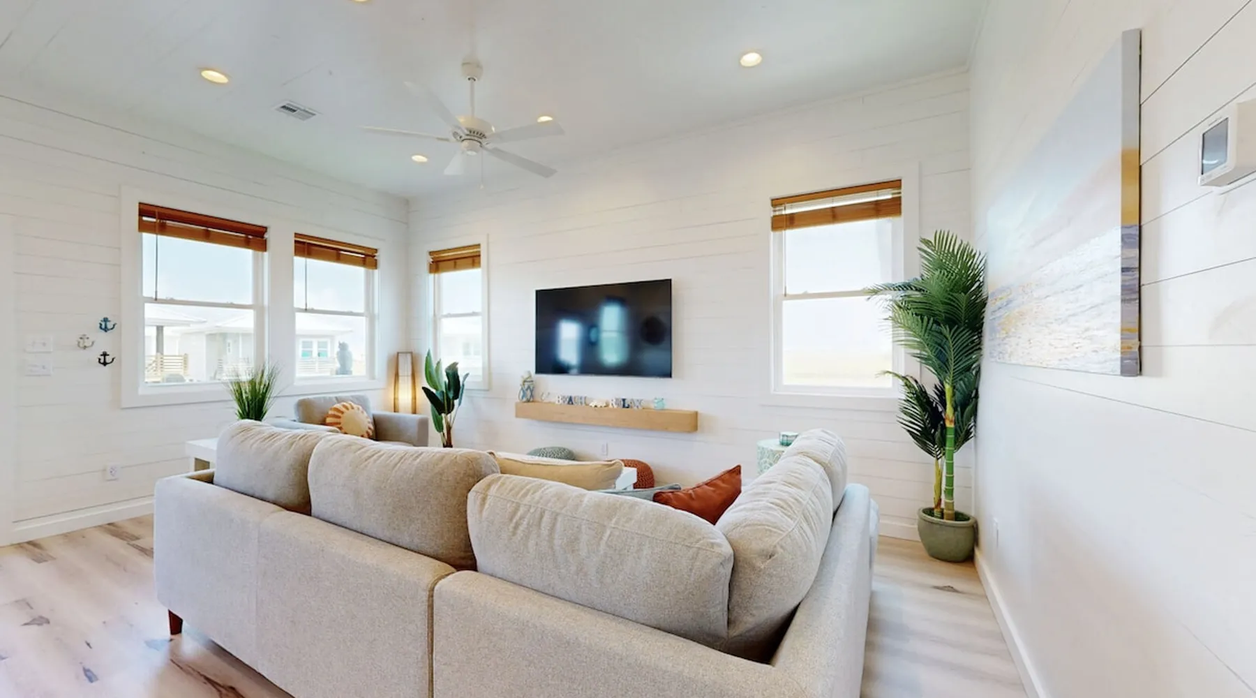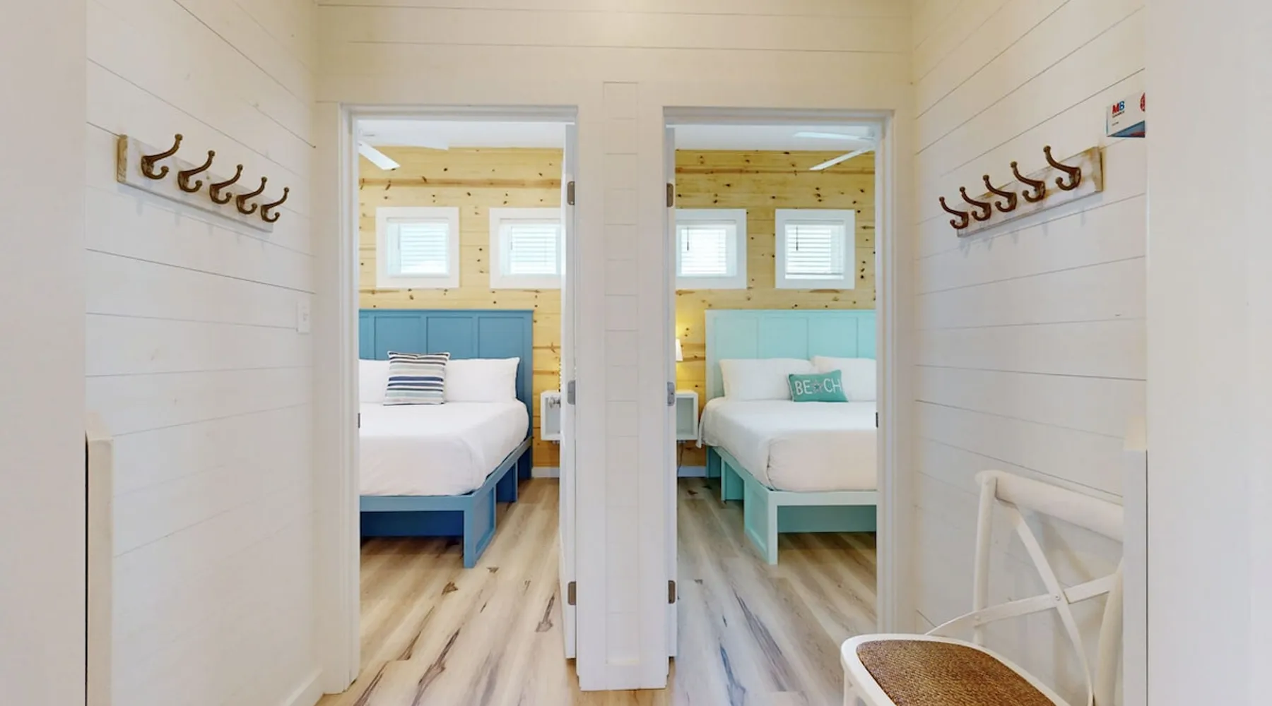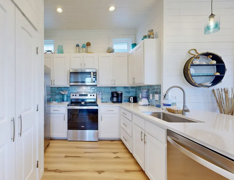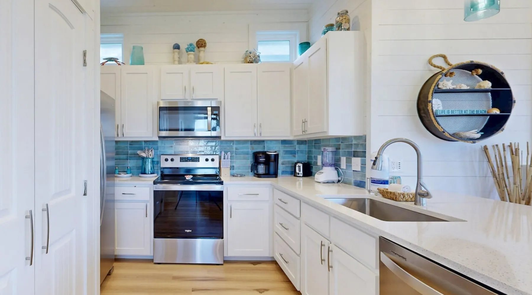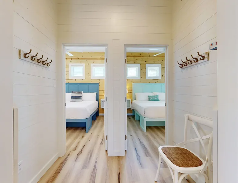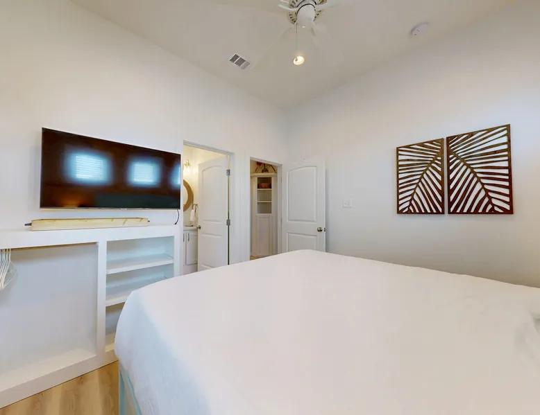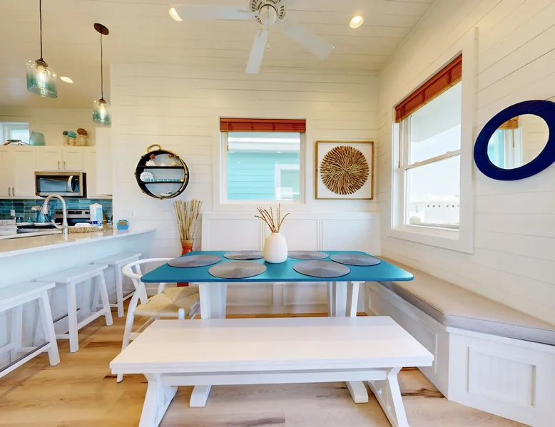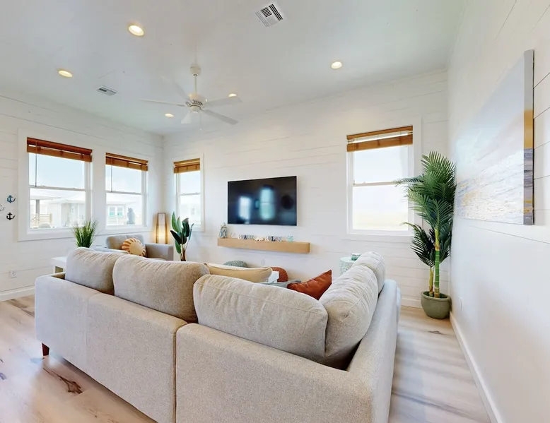 SRB34: Talk To The Sand 3BD, 3.5BA, Shared Pools, Golf Cart Included, Pet Friendly, Boardwalk to the Beach Welcome to "Talk to the Sand," your perfect beachfront retreat nestled in the charming community of Sunrise Beach. This beautifully designed home features 3 bedrooms and 3.5 bathrooms, thoughtfully decorated in soothing coastal hues of turquoise and blue, with bright white shiplap walls that create a serene atmosphere. The space SRB34: Talk To The Sand 3BD, 3.5BA, Shared Pools, Golf Cart Included, Pet Friendly, Boardwalk to the Beach Welcome to "Talk to the Sand," your perfect beachfront retreat nestled in the charming community of Sunrise Beach. This beautifully designed home features 3 bedrooms and 3.5 bathrooms, thoughtfully decorated in soothing coastal hues of turquoise and blue, with bright white shiplap walls that create a serene atmosphere. As you step inside, you’ll be greeted by an open concept floor plan that seamlessly connects the living, dining, and kitchen areas. The inviting living room boasts a comfortable sectional sofa, which conveniently folds out into a queen sleeper for extra guests, along with a cozy side chair and a TV—ideal for movie nights with family and friends. The dining table comfortably seats six, while the kitchen bar provides additional seating for three, making it perfect for entertaining. The fully stocked kitchen is a chef's dream, featuring stainless steel appliances and ample prep space for all your culinary adventures. A stackable washer and dryer add convenience to your stay. All three bedrooms and full baths are conveniently located on the same level, ensuring easy access for everyone. The master suite features its own ensuite bath, providing a private oasis for relaxation. Step outside to discover parking for two vehicles, a charcoal grill for outdoor cooking, an outdoor dining table for al fresco meals, and a half bath for convenience. Your stay also includes a six-passenger golf cart, making it easy to explore the beautiful surroundings. As part of this vibrant community, you can enjoy a shared pool, a boardwalk leading directly to the beach, and an upcoming pickleball court for some fun in the sun. Don't miss the opportunity to create unforgettable family memories at "Talk to the Sand." Book your stay today and start your beachfront adventure! Things to know: WIFI Golf Cart Included (6-Seater Golf Cart Included - Subject to a $10 Fuel Charge – Short Term Stay Only) Shared Pool Pickleball Court (coming soon) Charcoal Grill (Please bring your own charcoal) Fully equipped Kitchen (Keurig coffee maker, please bring K-cups) Washer/Dryer (please bring detergent) Pet Friendly ($95 Pet Fee, 1 dog allowed) Parking for 2 vehicles Beach gear available (With a 2-night minimum stay - details will come via email from Vayk Gear) Must be 25 years old to book one of our units. Strictly enforced, ID verified upon check-in. Life in Paradise rental agreement is required upon booking We provide WIFI to enhance your stay and keep you connected. While Port A is typically reliable, you may experience occasional outages beyond our control. Thank you for your understanding. Construction is a constant in Port Aransas. While we strive to ensure your visit is peaceful, you may encounter sights and sounds of building projects or community improvements during your stay. We appreciate your understanding as we work towards making our community better for everyone. Bedrooms and bathrooms: BD1 Twins, (2) TV, Closet Hall Bath w/ tub/shower combo, single vanity BD2 King, TV, Chest, Sm. Closet, Ensuite Bath, w/ walk-in shower, single vanity BD3 King, TV, Chest, Sm. Closet, Ensuite Bath, w/ walk-in shower, single vanity Living Room - Queen Sleeper Sofa Lower Level: Half Bath