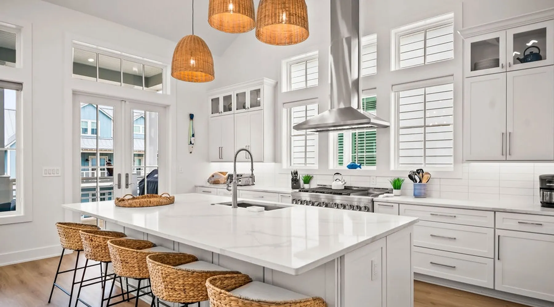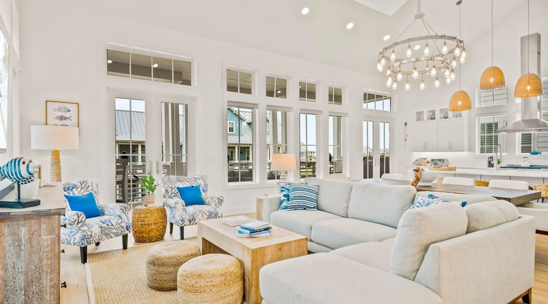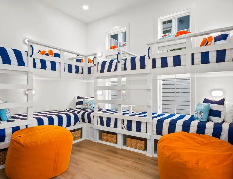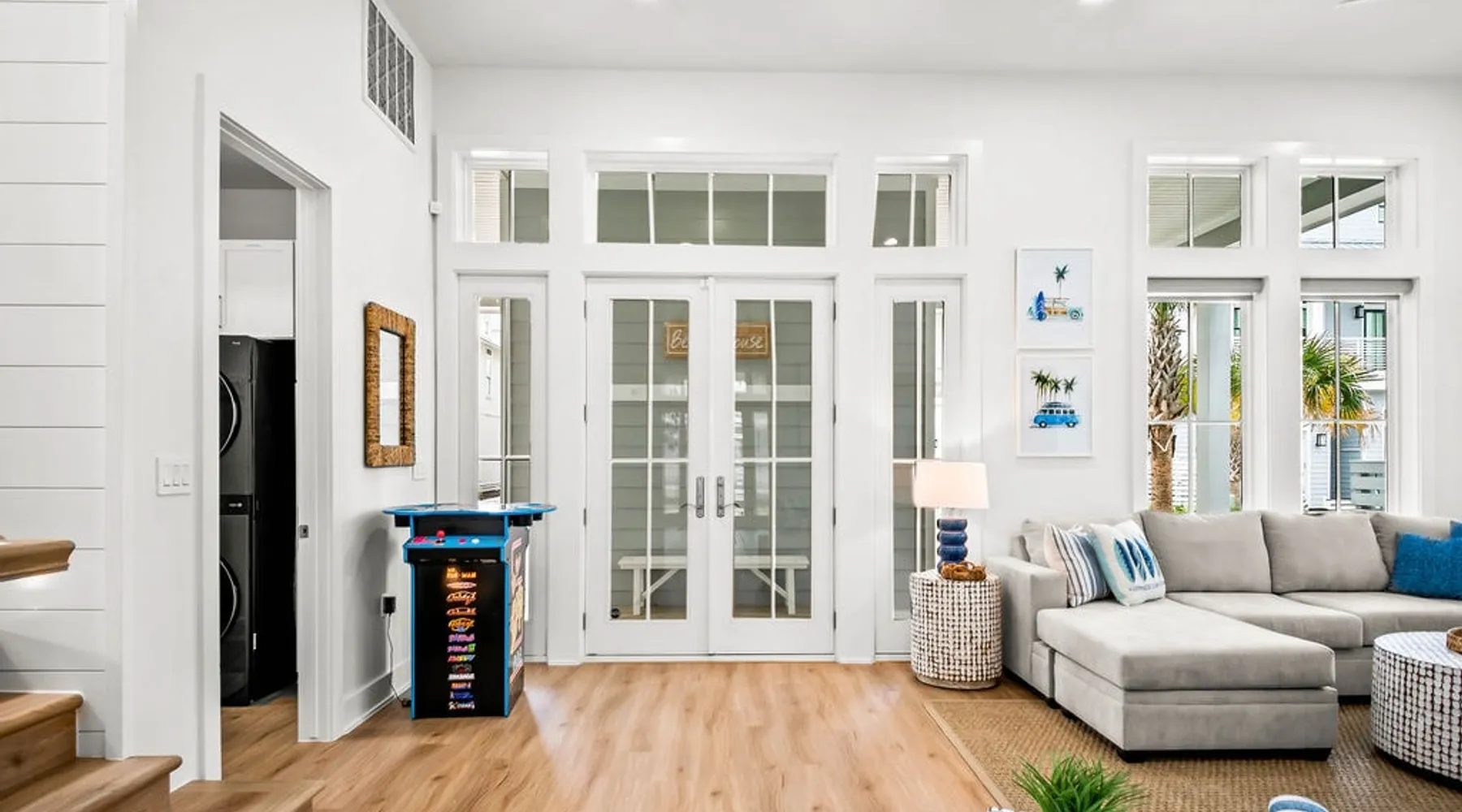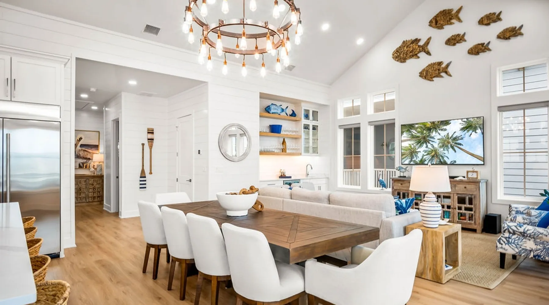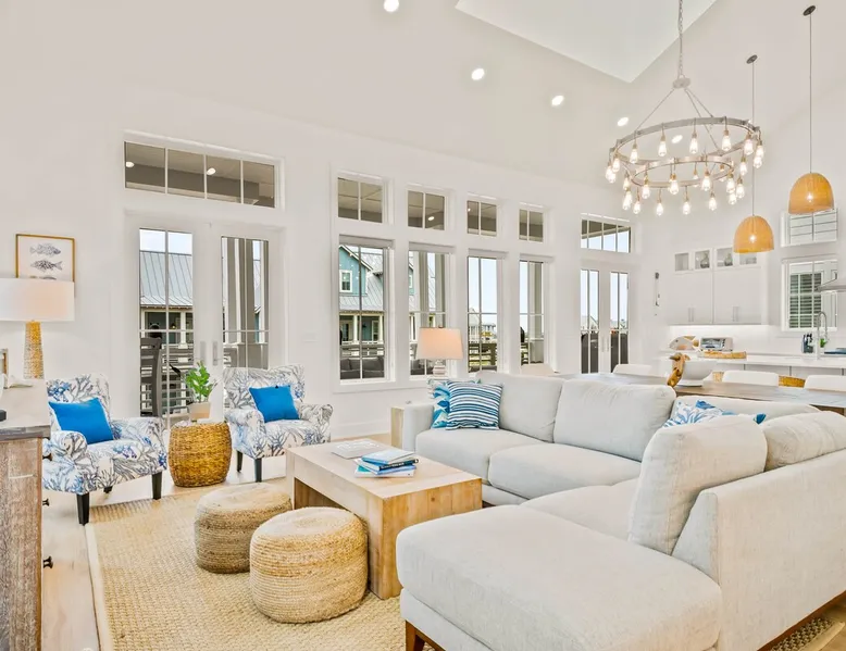 Welcome to Pelican Place, a coastal retreat designed for effortless relaxation and family fun! This spacious, light-filled home is just a short stroll from the beach and perfectly positioned overlooking a scenic park. With designer interiors, multiple king suites, and a game room that keeps the whole family entertained, this four-bedroom, four-and-a-half-bath getaway is where comfort meets coastal charm. The space Vaulted ceilings and a stunning cupola in the great room invite natural light into every corner, while expansive decks provide the perfect place to unwind and take in the view. Thoughtfully designed with families in mind, Pelican Place offers special amenities for guests of all ages—from arcade games and board games to baby gear and a wet bar. AMENITIES: At ‘South,’ enjoy resort-style pools that include the Cabana Pool with infinity edge, hammocks, and views of South Town Lake; the new Splish Splash Family Pool with splash pad; and intimate Neighborly Square Pool. Parks offer green space: Tailwind Park, South Shore Park, and others; a boardwalk around South Town Lake & Leisure Lake; a community pier and fishing pavilions, and a playscape. You also can access amenities at Cinnamon Shore North: pools, lakes, fitness center, on-site restaurants, and Town Center fun. MAIN LIVING SPACE: The open-concept living area is made for gathering. Vaulted ceilings with a cupola draw sunlight throughout the day, creating a warm and welcoming space. Designer couches, accent chairs, and a 75" smart TV with Bluetooth soundbar create a cozy den for evenings in, while the gourmet kitchen will thrill the chef in your group. Outfitted with JennAir appliances, a large range, an oversized island with seating for five, and specialty features like a microwave drawer, beverage fridge, and even a margarita machine, the kitchen is as functional as it is stylish. The dining area seats ten and flows seamlessly into the living space. Step out onto the deck directly from the living room to enjoy fresh air and views of the park. SLEEPING QUARTERS: Four beautifully appointed bedrooms offer private ensuites, luxury linens, and high-end hybrid mattresses. Three of the bedrooms feature king beds, including a master with a natural wood four-poster bed and a walk-in closet. A large bunk room includes six twin beds—ideal for kids or teens. The game room provides an additional sleeping option with a queen sleeper sofa. Two of the bedrooms offer direct access to shared or private balconies, creating personal retreats within the home. GREAT FEATURES: The fun continues in the game room, complete with an 85" smart TV, arcade machine, board games, puzzles, and toys. The home includes baby-friendly amenities such as three high chairs, three pack ‘n plays, and beach towels, along with entertainment extras like a Pac Man arcade game, Bluetooth soundbars, turkey cooker, and Weber grill. Smart TVs are located in every bedroom, while the main living room and game room are equipped with enhanced sound systems for an immersive experience. With its elegant yet casual design, family-focused features, and unbeatable location, Pelican Place is a dream destination. Book your coastal escape today and make lasting memories just steps from the sand. ***NO PETS ALLOWED*** IF A PET IS SEEN ENTERING A NON-PET FRIENDLY HOME, GUEST WILL BE CHARGED A PENALTY AND/OR EVICTED. Pelican Place is a non-pet friendly property, if a pet is seen entering Pelican Place the homeowner and/or Cinnamon Shore Vacation Rentals has the right to immediately evict the renter with no refunds, regardless of time of day or night. An automatic non-refundable penalty fee of $1000 will be added to the reservation, as well as any additional charges related to cleaning fees and/or damage in the home. Please review all policies at: **Driving 1.5 miles is necessary from Cinnamon Shore South to access Cinnamon Shore North's amenities. *Smart TV and Live TV capabilities available, no direct cable. STRR#597728