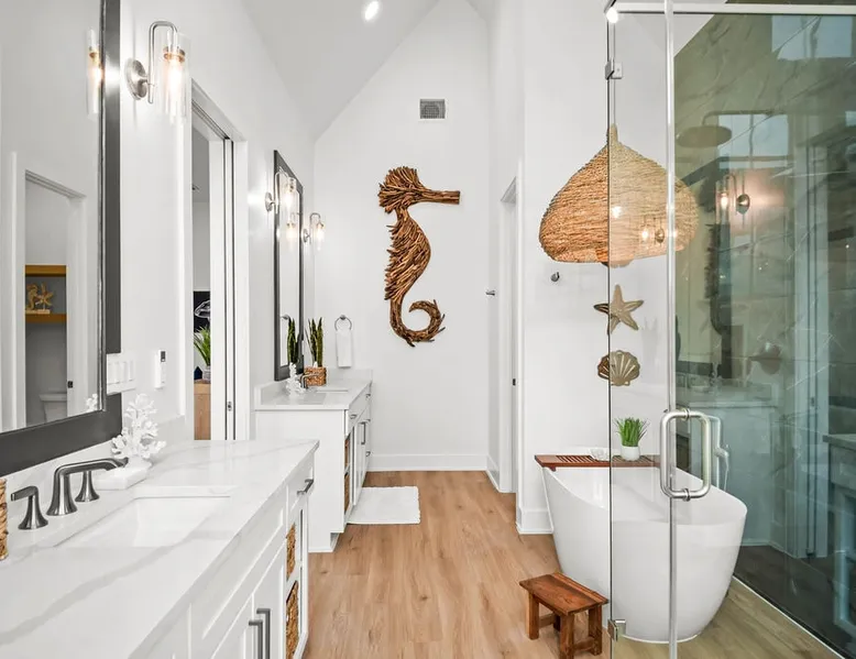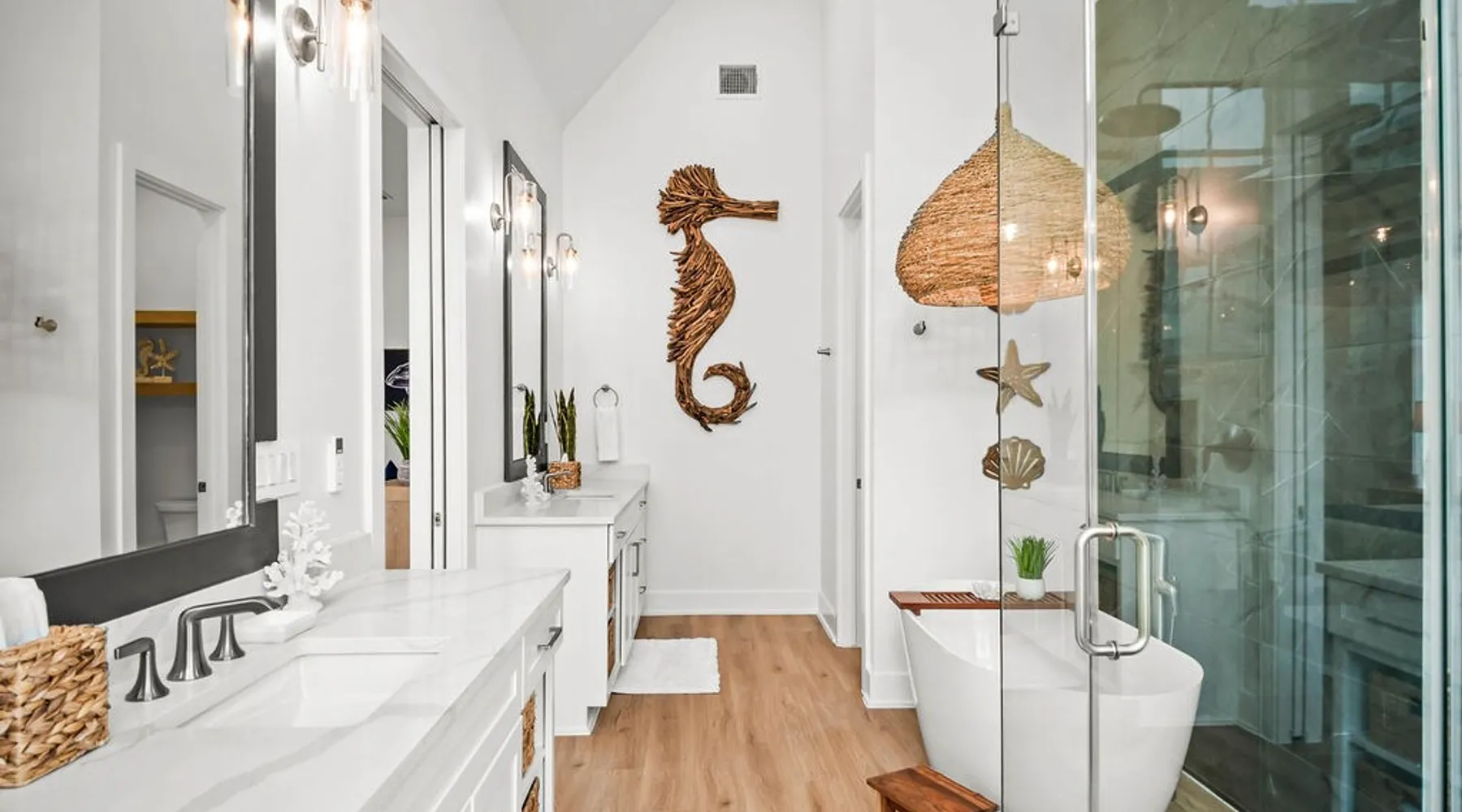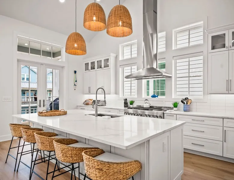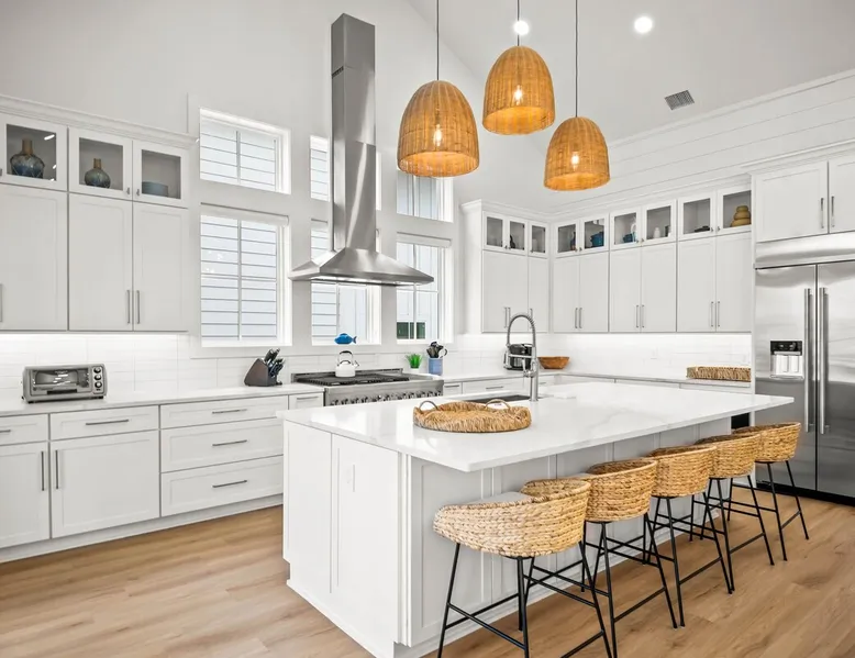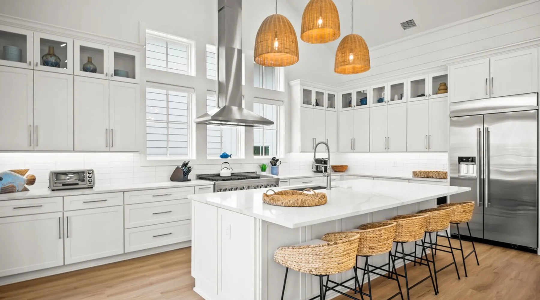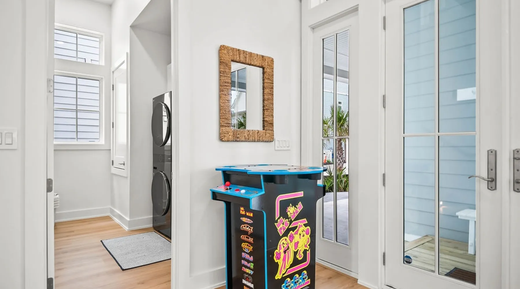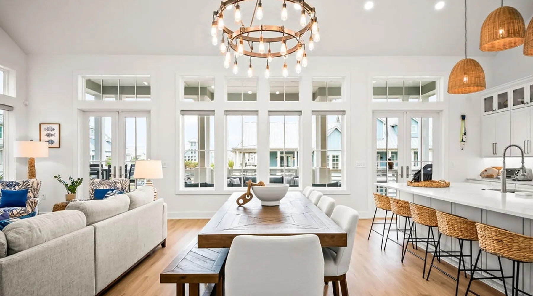 Welcome to Pelican Place, a coastal retreat designed for effortless relaxation and family fun! This spacious, light-filled home is just a short stroll from the beach and perfectly positioned overlooking a scenic park. With designer interiors, multiple king suites, and a game room that keeps the whole family entertained, this four-bedroom, four-and-a-half-bath getaway is where comfort meets coastal charm. The space Vaulted ceilings and a stunning cupola in the great room invite natural light into every corner, while expansive decks provide the perfect place to unwind and take in the view. Thoughtfully designed with families in mind, Pelican Place offers special amenities for guests of all ages—from arcade games and board games to baby gear and a wet bar. AMENITIES: At ‘South,’ enjoy resort-style pools that include the Cabana Pool with infinity edge, hammocks, and views of South Town Lake; the new Splish Splash Family Pool with splash pad; and intimate Neighborly Square Pool. Parks offer green space: Tailwind Park, South Shore Park, and others; a boardwalk around South Town Lake & Leisure Lake; a community pier and fishing pavilions, and a playscape. You also can access amenities at Cinnamon Shore North: pools, lakes, fitness center, on-site restaurants, and Town Center fun. MAIN LIVING SPACE: The open-concept living area is made for gathering. Vaulted ceilings with a cupola draw sunlight throughout the day, creating a warm and welcoming space. Designer couches, accent chairs, and a 75" smart TV with Bluetooth soundbar create a cozy den for evenings in, while the gourmet kitchen will thrill the chef in your group. Outfitted with JennAir appliances, a large range, an oversized island with seating for five, and specialty features like a microwave drawer, beverage fridge, and even a margarita machine, the kitchen is as functional as it is stylish. The dining area seats ten and flows seamlessly into the living space. Step out onto the deck directly from the living room to enjoy fresh air and views of the park. SLEEPING QUARTERS: Four beautifully appointed bedrooms offer private ensuites, luxury linens, and high-end hybrid mattresses. Three of the bedrooms feature king beds, including a master with a natural wood four-poster bed and a walk-in closet. A large bunk room includes six twin beds—ideal for kids or teens. The game room provides an additional sleeping option with a queen sleeper sofa. Two of the bedrooms offer direct access to shared or private balconies, creating personal retreats within the home. GREAT FEATURES: The fun continues in the game room, complete with an 85" smart TV, arcade machine, board games, puzzles, and toys. The home includes baby-friendly amenities such as three high chairs, three pack ‘n plays, and beach towels, along with entertainment extras like a Pac Man arcade game, Bluetooth soundbars, turkey cooker, and Weber grill. Smart TVs are located in every bedroom, while the main living room and game room are equipped with enhanced sound systems for an immersive experience. With its elegant yet casual design, family-focused features, and unbeatable location, Pelican Place is a dream destination. Book your coastal escape today and make lasting memories just steps from the sand. ***NO PETS ALLOWED*** IF A PET IS SEEN ENTERING A NON-PET FRIENDLY HOME, GUEST WILL BE CHARGED A PENALTY AND/OR EVICTED. Pelican Place is a non-pet friendly property, if a pet is seen entering Pelican Place the homeowner and/or Cinnamon Shore Vacation Rentals has the right to immediately evict the renter with no refunds, regardless of time of day or night. An automatic non-refundable penalty fee of $1000 will be added to the reservation, as well as any additional charges related to cleaning fees and/or damage in the home. Please review all policies at: **Driving 1.5 miles is necessary from Cinnamon Shore South to access Cinnamon Shore North's amenities. *Smart TV and Live TV capabilities available, no direct cable. STRR#597728