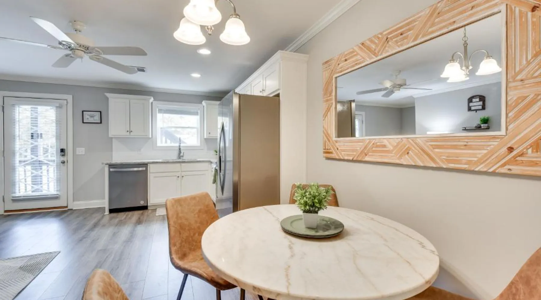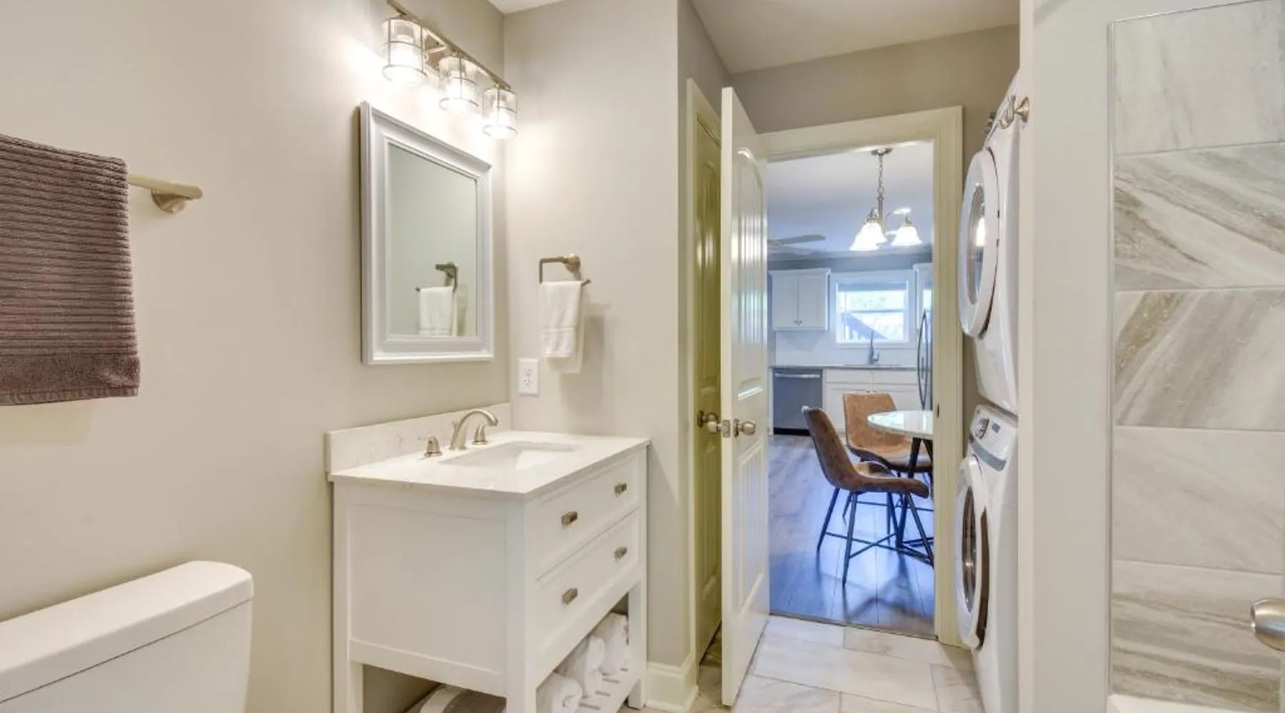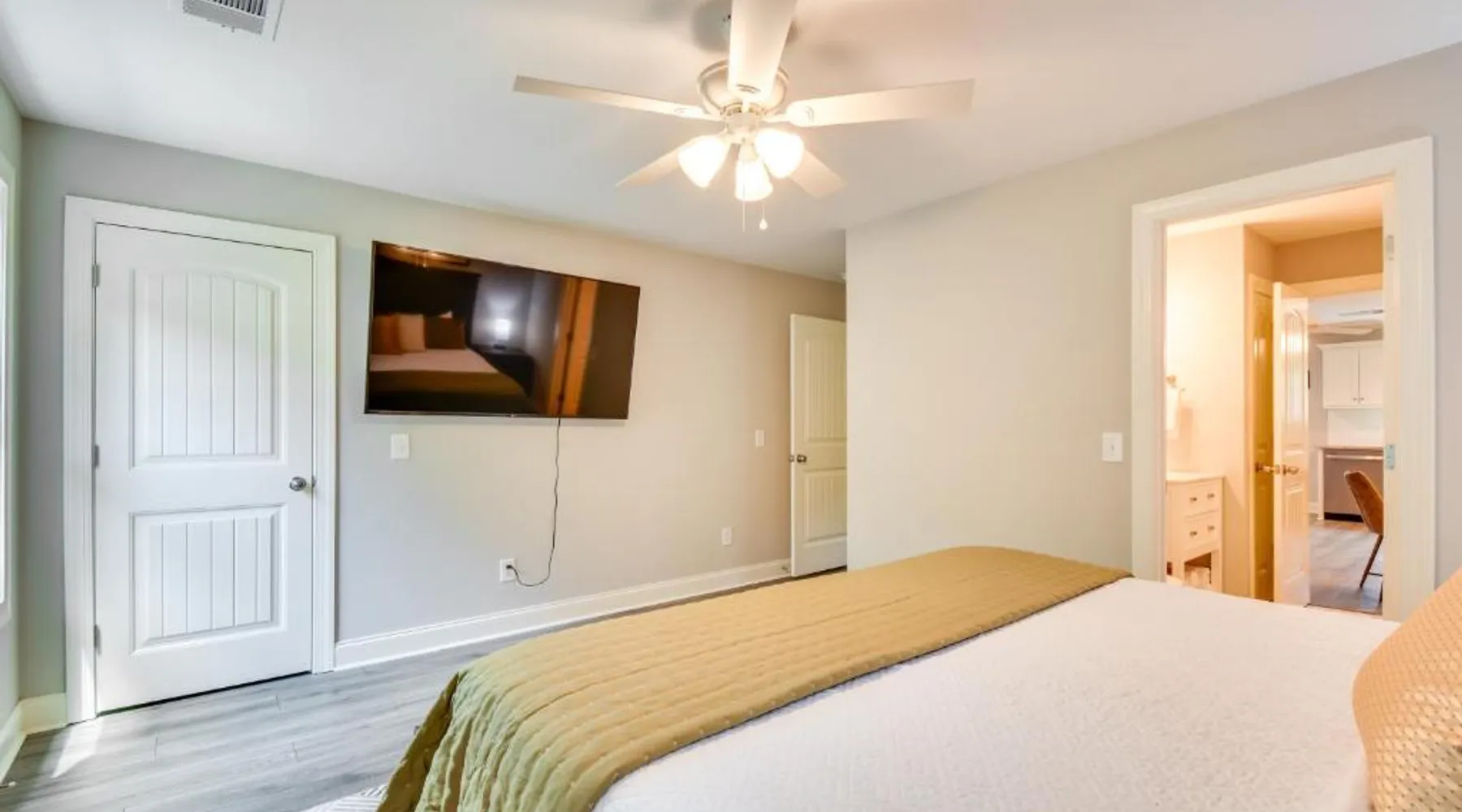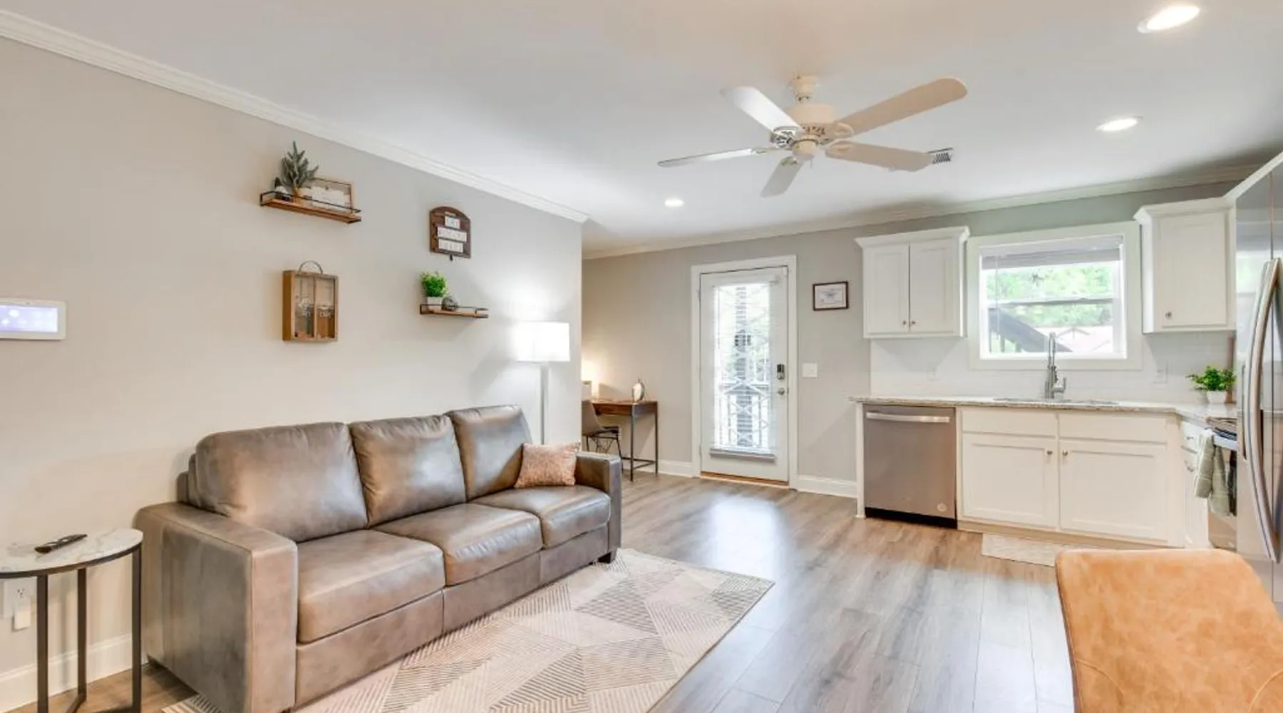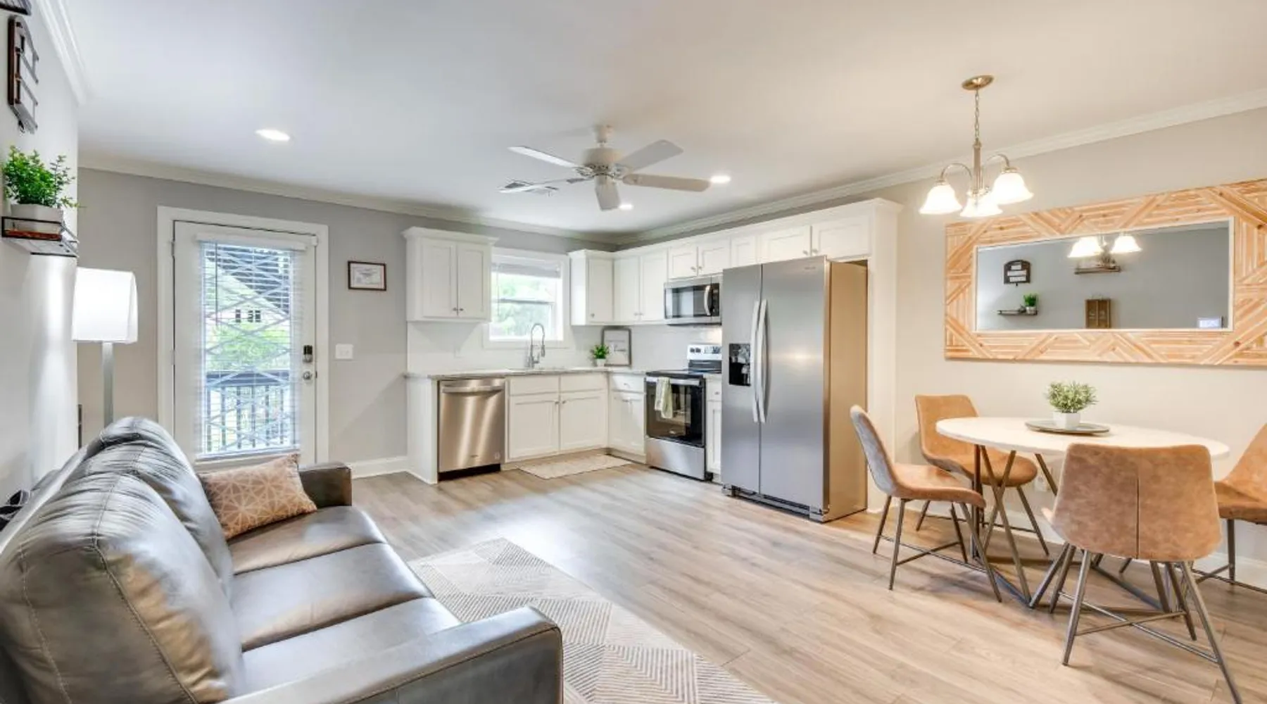 Spacious Accommodations: Walk to Main St and River Downtown Helen Condo in Helen offers a spacious apartment with one bedroom and a living room. The property includes a balcony, air-conditioning, and a fully equipped kitchen with modern appliances. Modern Amenities: Guests enjoy free WiFi, a washing machine, and a work desk. The apartment features a dining table, refrigerator, microwave, dishwasher, oven, and stovetop. Additional amenities include a hairdryer, coffee machine, TV, and free toiletries. Prime Location: Located 94 mi from Hartsfield–Jackson Atlanta International Airport, the property is a 3-minute walk from Helen Festhalle. Nearby attractions include Anna Ruby Falls (8.1 mi), Smithgall Woods (4.3 mi), Andrews Cove (6.2 mi), and Raven Cliffs Falls (6.8 mi). Boasting a private entrance, this air-conditioned apartment comes with 1 living room, 1 separate bedroom and 1 bathroom with a bath and a shower. Meals can be prepared in the well-fitted kitchen, which features a stovetop, a refrigerator, a dishwasher and kitchenware. The spacious apartment features a washing machine, a coffee machine, tumble dryer, heating and a TV. The unit has 2 beds.