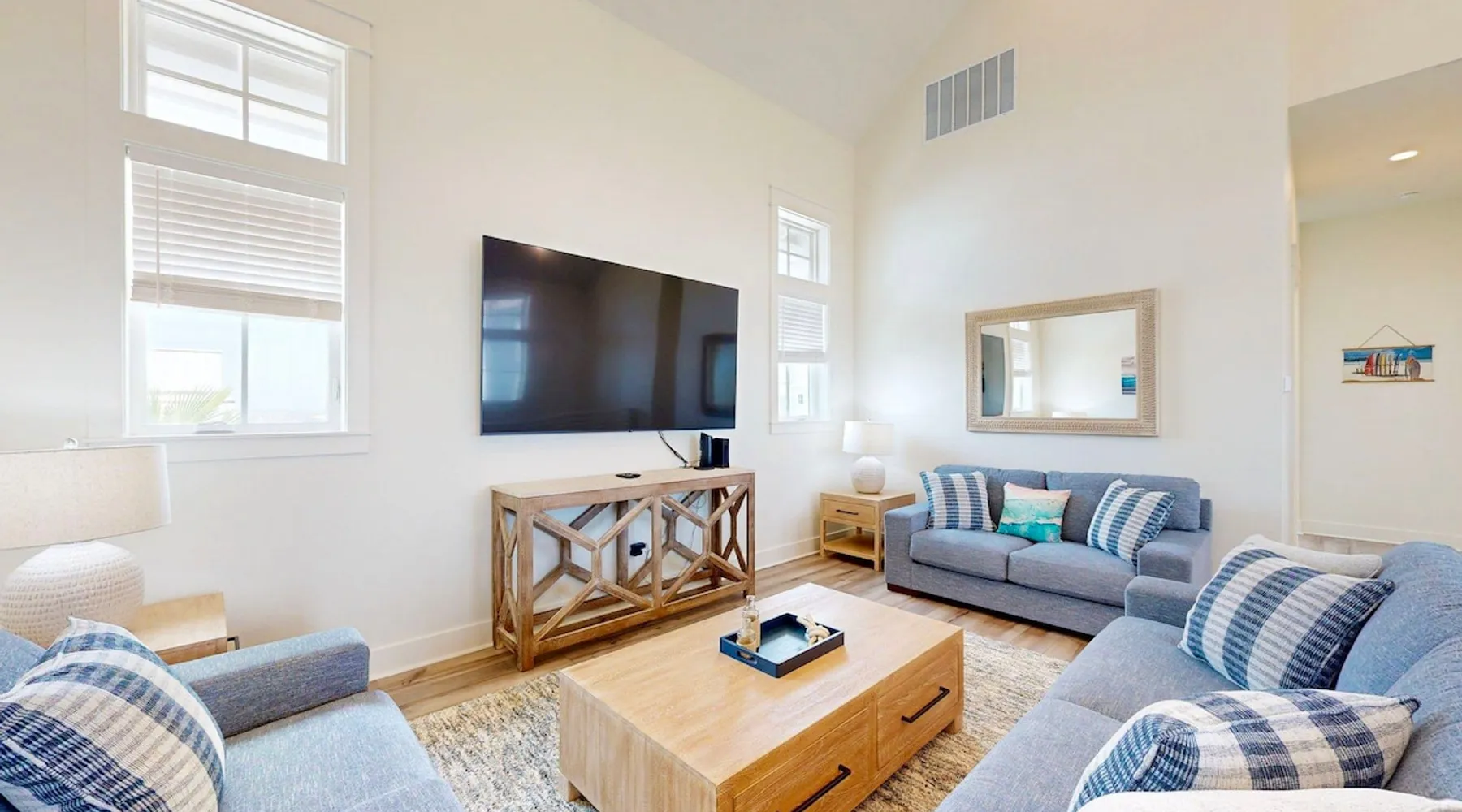 SBM501: 501 Mockingbird Lane 5BD, 5.5BA, Resort Style Pools, Boardwalk to the Beach, Golf Cart Access, 2 Living Areas, Parking for 3 501 Mockingbird at Sunflower Beach Resort, a stunning beachfront home that perfectly captures the essence of coastal living. This beautifully decorated residence spans three levels, offering ample space and comfort for family and friends. The space SBM501: 501 Mockingbird Lane 5BD, 5.5BA, Resort Style Pools, Boardwalk to the Beach, Golf Cart Access, 2 Living Areas, Parking for 3 501 Mockingbird at Sunflower Beach Resort, a stunning beachfront home that perfectly captures the essence of coastal living. This beautifully decorated residence spans three levels, offering ample space and comfort for family and friends. As you enter the first level, you are greeted by an inviting open floor plan that seamlessly integrates the living, dining, and kitchen areas. The cozy living room features a plush sofa, a recliner, and a side chair, making it the perfect spot to unwind after a day at the beach while enjoying your favorite shows on the TV. The spacious dining table seats eight, with additional seating for six at the kitchen bar, creating an ideal setting for memorable meals together. The fully stocked kitchen boasts stainless steel appliances, generous counter space, and modern cabinets, making meal prep a breeze. This level also includes a comfortable bedroom with an ensuite bath, a convenient laundry room equipped with a full-size washer and dryer, and a stylish half bath, ensuring all your needs are met. Venture to the second level, where another inviting living room awaits, complete with two fold-out queen sleeper sofas, a side chair, and a TV for added relaxation. This level also features a kitchenette area with a mini fridge for snacks and drinks, along with five balconies furnished for you to soak up the warm Port A sunshine. With four bedrooms on this level, three with their own ensuite baths, and an additional full bath off the hallway, there’s plenty of space for everyone to enjoy their own privacy. The third level offers a cozy, small living area, perfect for quiet evenings in, furnished with a sofa, two side chairs, and a TV for your entertainment needs. Take advantage of the incredible amenities of Sunflower Beach Resort, including resort-style pools and a boardwalk to the beach, and make this remarkable 5-bedroom, 5.1-bathroom home your ideal beachfront retreat. Don’t miss the opportunity to experience the ultimate coastal lifestyle at 501 Mockingbird Lane @ Sunflower! Things to know: WIFI Shared Pools Fully equipped Kitchen (Drip coffee maker, please bring coffee and filters) Mini Fridge Washer/Dryer (Please bring detergent) No Pets Allowed Parking for 3 vehicles Must be 25 years old to book one of our units. Strictly enforced, ID verified upon check-in. Life in Paradise rental agreement is required upon booking We provide WIFI to enhance your stay and keep you connected. While Port A is typically reliable, you may experience occasional outages beyond our control. Thank you for your understanding. Construction is a constant in Port Aransas. While we strive to ensure your visit is peaceful, you may encounter sights and sounds of building projects or community improvements during your stay. We appreciate your understanding as we work towards making our community better for everyone. Bedrooms and bathrooms: Level One BD1 King, TV, Closet, Chest, Ensuite Bath w/ walk-in shower, dual vanity Half Bath Laundry Room Level Two BD2 King, TV, Chest, Closet, Private Balcony, Ensuite Bath w/ walk-in shower, dual vanity BD3 Bunk Room, Twin, TV, Chest, Closet Hall Bath w/ walk-in shower, single vanity BD4 King, TV, Chest, Closet, Private Balcony, Ensuite Bath w/ walk-in shower, dual vanity BD5 King, TV, Chest, Closet, Private Balcony, Ensuite Bath w/ walk-in shower, dual vanity Living Room - Queen Sleeper Sofa (2) Sunflower Beach Resort Amenity Access and Important Information: 2 Huge resort-style pools (1 family-friendly & 1 adult only) – Hours: Sunrise to 10 pm State-of-the-art gym Boardwalk to the beach w/ golf cart access (Mile Marker 28) Kids area w/ books, games & TV located at the pool pavilion Golf Cart Rentals Chair and Umbrella rentals Turtle's Poolside Grill - Open Thursday to Sunday, 11:00 am to 7:00 pm / Outside food and beverages are prohibited / Hours subject to change Resort Events Trailers/boats are not allowed on the property. Violation of this could result in it being towed. Minimum age to rent is 25 Sunflower Beach Resort is a growing community w/ active construction Monday to Friday, 7 am to 7 pm Must be 25 years old to book one of our units. Strictly enforced, ID checked upon check-in. Monday - Saturday 9:00 am to 5:00 pm Sundays 9:00 am to 4:00 pm
