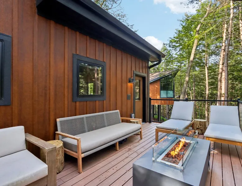 Ask us about our Noah's Ark package! Newly constructed in 2025, this property offers everything you need for a unique, luxury, Wisconsin Dells lodging experience. Built on a hill, this treehouse experience allows you to enter without stairs on the front side and dance with the squirrels on the back deck. Whether this becomes your annual summer home away from home or a once in a lifetime experience, you will fall in love with property and it's natural surroundings. The space The luxury begins when you open the front door and are greeted with a tastefully appointed, open concept, family room and kitchen that has everything you need to feel as though you are being treated to something special during your Wisconsin Dells vacation. The family room has seating for 5, while the kitchen has a breakfast bar with seating for 4 more. We provide an LG smart TV so you do not need to miss out on your home entertainment. We do have a YouTube TV subscription for local stations and much more. The kitchen is stocked with everything you need to prepare your meals. We have all of the basics including pots pans, measuring tools, and utensils. As an added benefit, room service is available from the on-site restaurant - Dawn Manor. This is a treehouse after all, so we need you to understand the views! There is beautiful natural scenery from every room, but the real special spot is the back deck. The back deck is cantilevered 20 feet over breathtaking views of the natural ravines below. Our guests will enjoy this excellent opportunity to observe nature up close as well as take in a view of Mirror Lake from a unique vantage point. You will enjoy soaking in our 4-person hot tub and relaxing by the gas fire pit on a cool evening. Master Bedroom - This bedroom is located up a stairwell that wraps around a tree trunk. It has an LG smart TV, a king bed, and an adjacent full bathroom. We provide luxurious bedding to make your stay extra comfortable. Second Bedroom - Located on the main floor, this bedroom has a queen bed, an LG Smart TV, and is accompanied by an adjoining full bathroom. We provide luxurious bedding and bathrobes for use during your stay. As an added bonus, this bedroom has an exterior door that opens on to our deck (a little oasis in the trees) right next to the hot tub. Distance to Restaurants & Attractions: Dawn Manor, Restaurant & Speakeasy - 1 minute walking Lost Canyon Tour - 1.5 miles Ishnala Supper Club - 1.6 miles Sundara Spa - 2.2 miles Wisconsin Dells Mountain Coaster - 2.7 miles Legacy Dinner Theater - 1.2 miles Crystal Grand Music Theater - .8 miles Noah's Ark Waterpark - 2.0 miles Downtown Wisconsin Dells - 4.9 miles Devil's Lake State Park - 14 miles Cascade Mountain - 22 miles Guest access Staying at the Treetop Villas has some extra perks including: - Access to the entire treehouse with no shared spaces. - Parking for up to 3 vehicles - Priority access to the Dawn Manor Restaurant, Bar, & Speakeasy - Room service from Dawn Manor Restaurant, Bar, & Speakeasy
