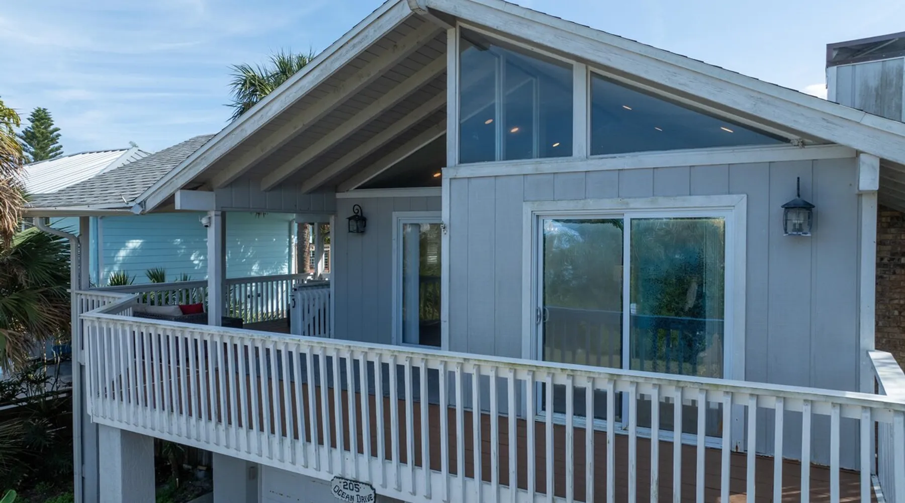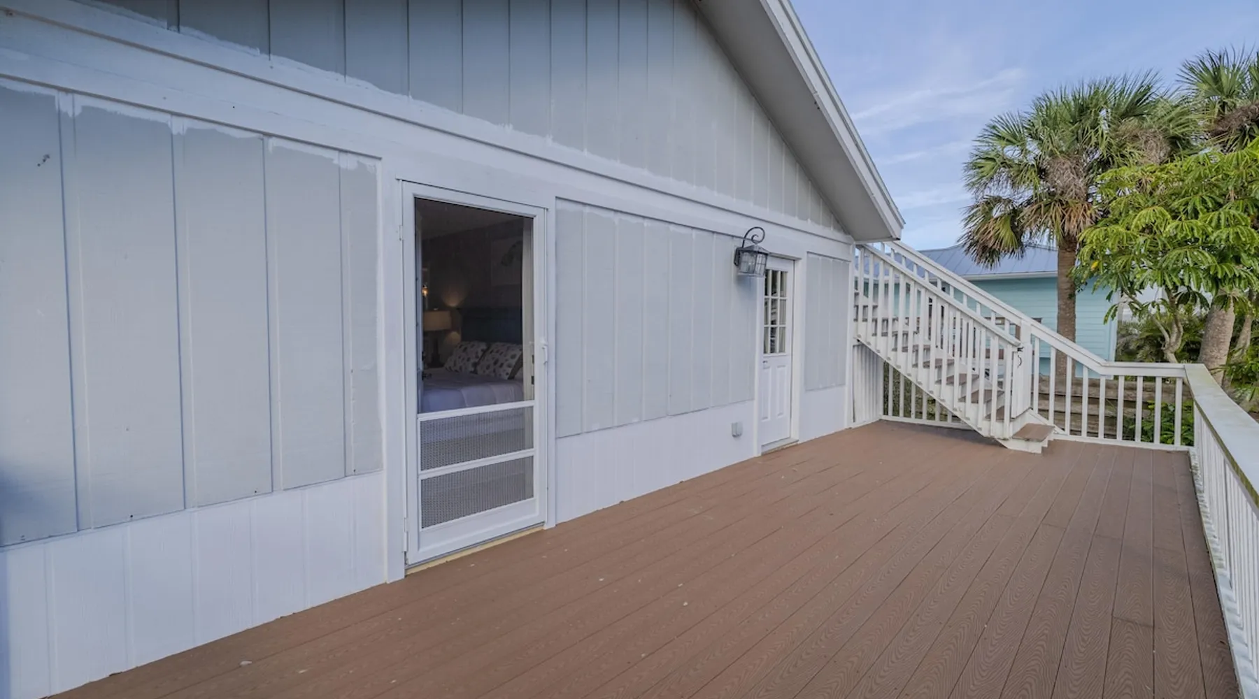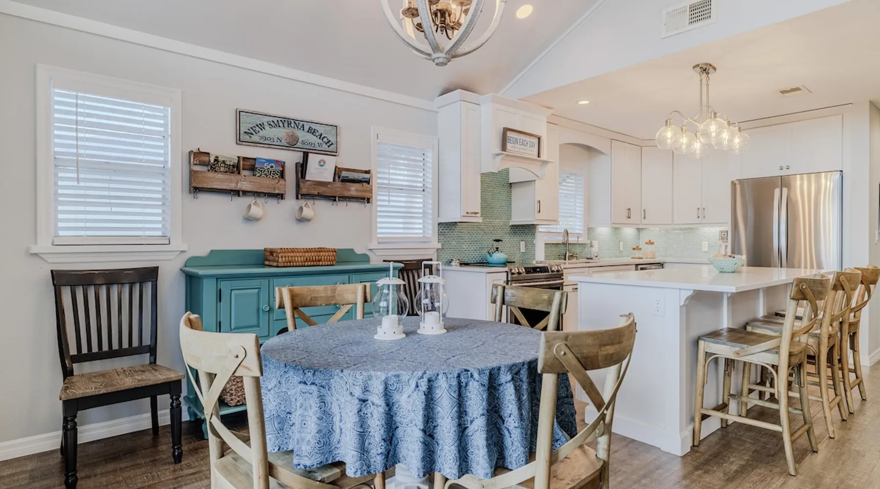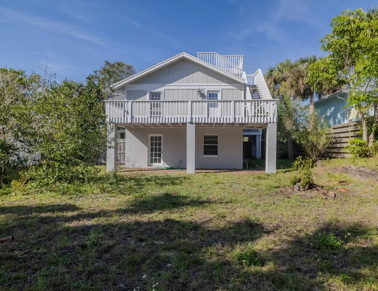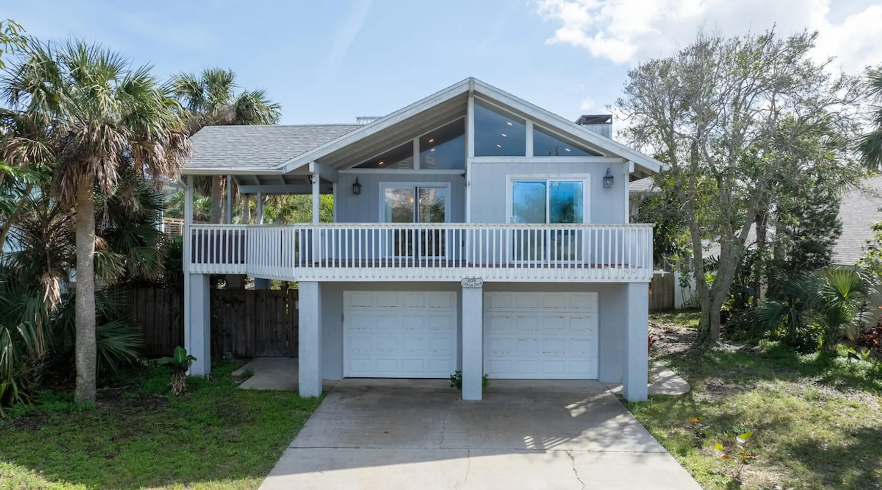 Coastal Oasis | 4 bed 3 bath home Steps to the Ocean The space Welcome to your coastal oasis in North Beach, New Smyrna—a stylish two-story retreat just steps from the ocean. This beautifully appointed home features four spacious bedrooms, three modern baths, and a charming wraparound balcony with a crows nest for breathtaking views. Inside, you’ll be greeted by elegant flooring and an open, airy layout that captures a coastal chic vibe. The large, light-filled kitchen boasts a sizable breakfast bar that seats four, perfect for casual dining or entertaining friends. Adjacent to the kitchen, a separate dining area comfortably accommodates extra guests for memorable dinners. Relax in the inviting living room, complete with a cozy brick fireplace, a large-screen TV, and a quaint nook area ideal for savoring your morning coffee. This beautifully designed vacation home offers four comfortable bedrooms, providing plenty of space for everyone to unwind. The master suite serves as a private retreat with a king-size bed, a dedicated work desk, and its own private balcony access—perfect for enjoying peaceful coastal views from the crows nest. The en-suite bath adds a touch of luxury to your stay offering its own spa-inspired bathroom, complete with a walk-in shower, a soaking tub, and dual vanity sinks. While the second bedroom boasts a convenient trundle that transforms into two twins. The third bedroom offers a cozy king bed, and the fourth includes a versatile trundle that expands to a queen. Whether you’re relaxing after a day of adventure or gathering for a memorable getaway, this home has the perfect blend of comfort and convenience for your stay! This home also features an oversized garage, a spacious fenced backyard for outdoor enjoyment, and a separate laundry room for your convenience. For added fun and easy exploration of the area, a golf cart is available for rent during your stay. Please note that the golf cart rental requires an additional fee, along with a signed rental agreement and waivers. Pets welcome with appropriate pet fee! Experience the best of coastal living and live like a local in this North Beach gem. Book your stay today and start making unforgettable memories by the sea!