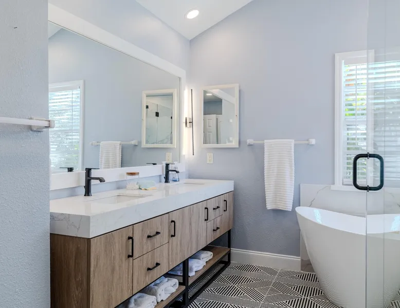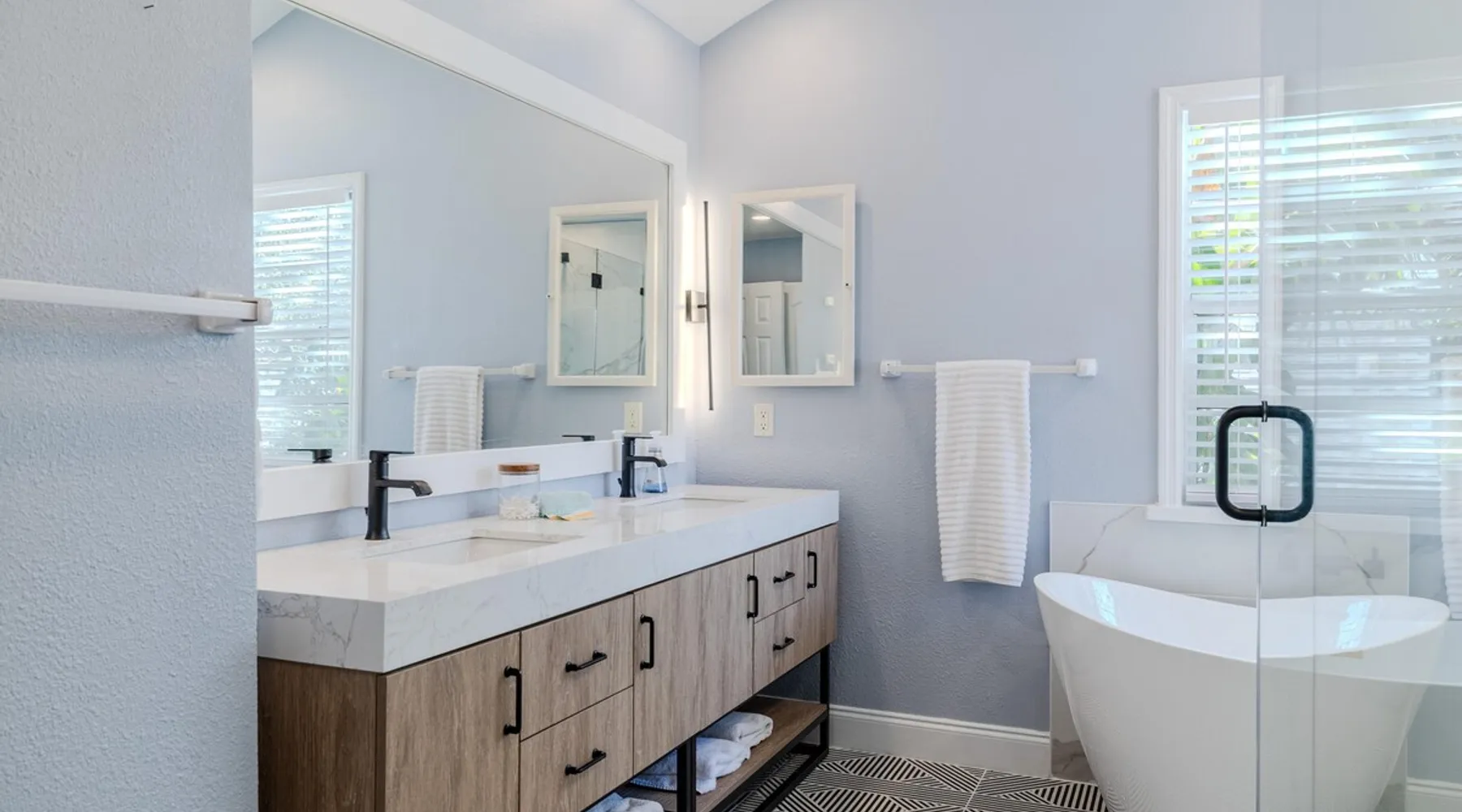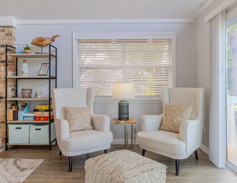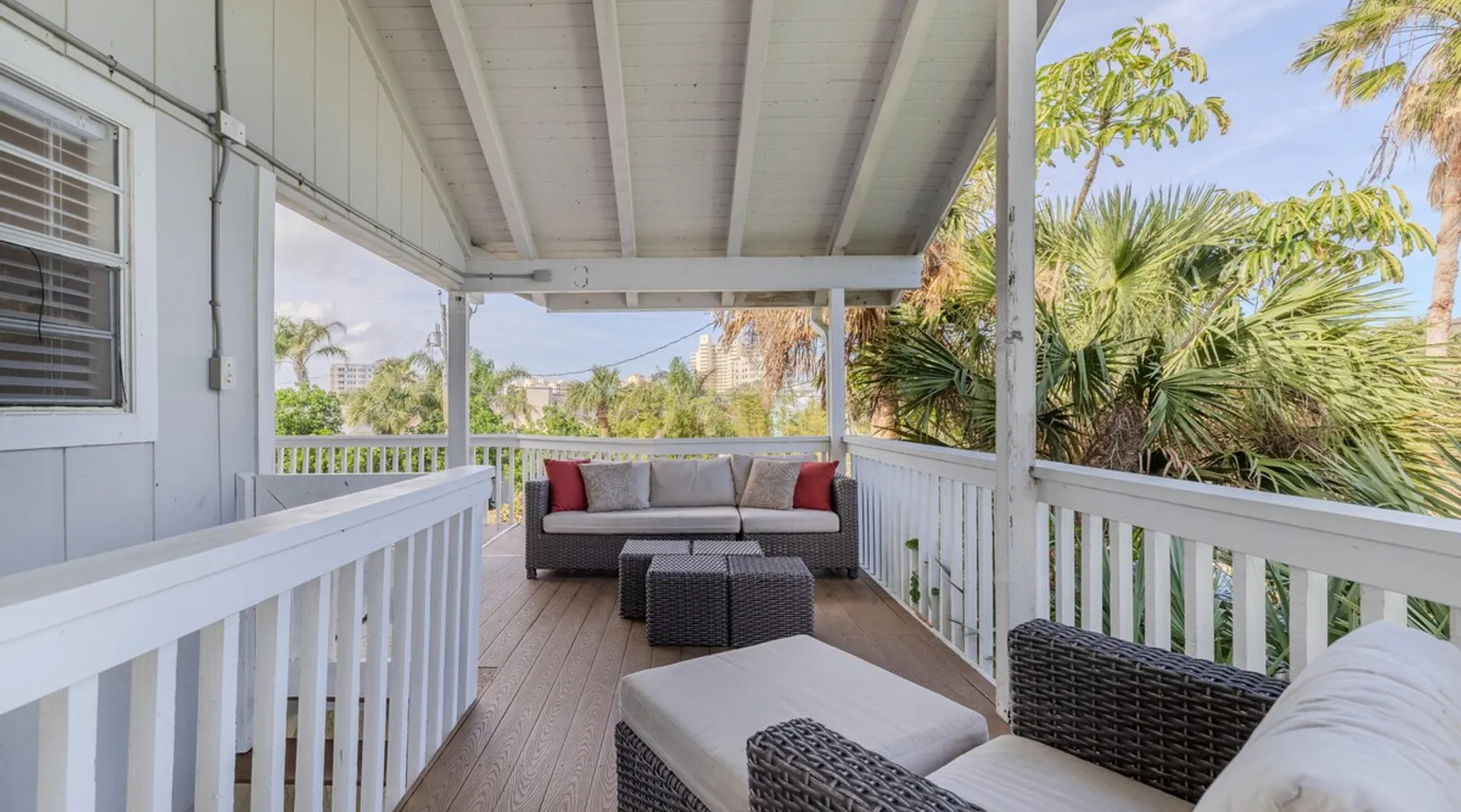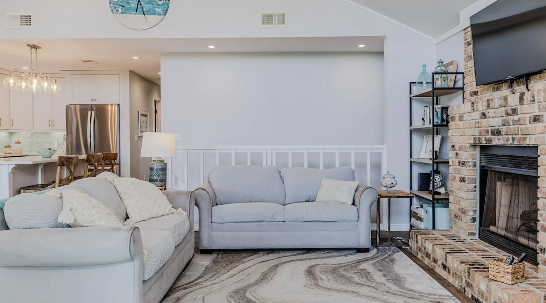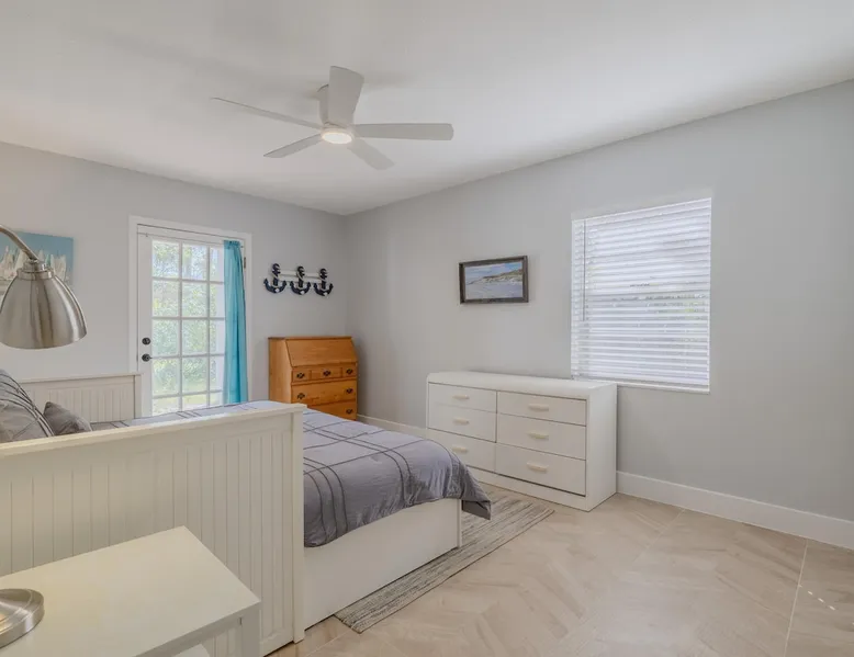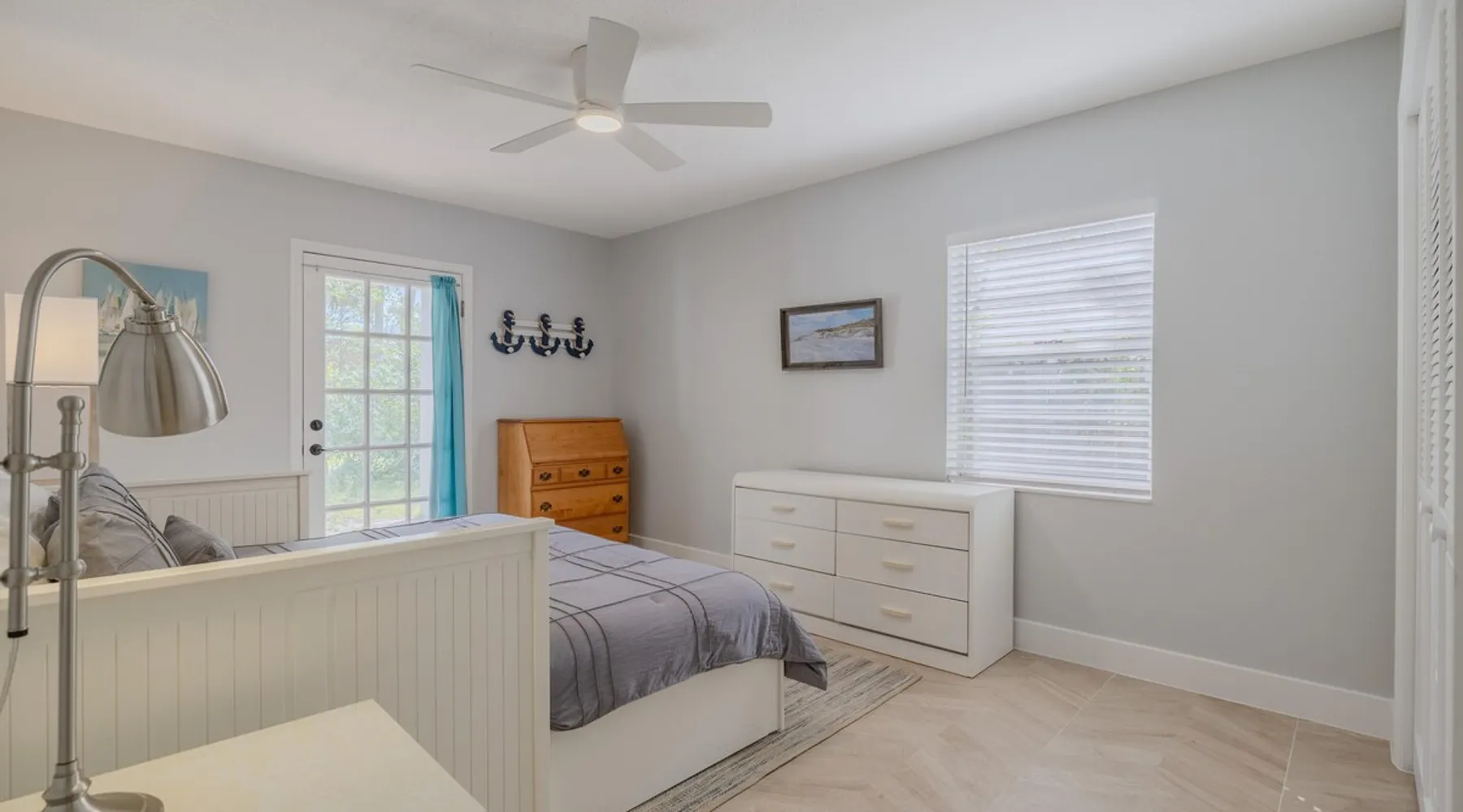 Coastal Oasis | 4 bed 3 bath home Steps to the Ocean The space Welcome to your coastal oasis in North Beach, New Smyrna—a stylish two-story retreat just steps from the ocean. This beautifully appointed home features four spacious bedrooms, three modern baths, and a charming wraparound balcony with a crows nest for breathtaking views. Inside, you’ll be greeted by elegant flooring and an open, airy layout that captures a coastal chic vibe. The large, light-filled kitchen boasts a sizable breakfast bar that seats four, perfect for casual dining or entertaining friends. Adjacent to the kitchen, a separate dining area comfortably accommodates extra guests for memorable dinners. Relax in the inviting living room, complete with a cozy brick fireplace, a large-screen TV, and a quaint nook area ideal for savoring your morning coffee. This beautifully designed vacation home offers four comfortable bedrooms, providing plenty of space for everyone to unwind. The master suite serves as a private retreat with a king-size bed, a dedicated work desk, and its own private balcony access—perfect for enjoying peaceful coastal views from the crows nest. The en-suite bath adds a touch of luxury to your stay offering its own spa-inspired bathroom, complete with a walk-in shower, a soaking tub, and dual vanity sinks. While the second bedroom boasts a convenient trundle that transforms into two twins. The third bedroom offers a cozy king bed, and the fourth includes a versatile trundle that expands to a queen. Whether you’re relaxing after a day of adventure or gathering for a memorable getaway, this home has the perfect blend of comfort and convenience for your stay! This home also features an oversized garage, a spacious fenced backyard for outdoor enjoyment, and a separate laundry room for your convenience. For added fun and easy exploration of the area, a golf cart is available for rent during your stay. Please note that the golf cart rental requires an additional fee, along with a signed rental agreement and waivers. Pets welcome with appropriate pet fee! Experience the best of coastal living and live like a local in this North Beach gem. Book your stay today and start making unforgettable memories by the sea!