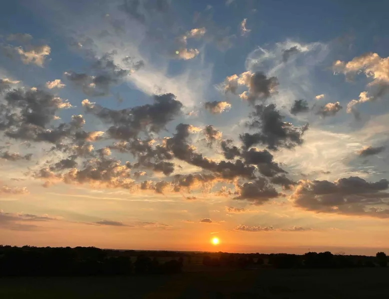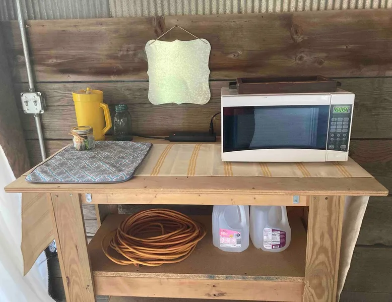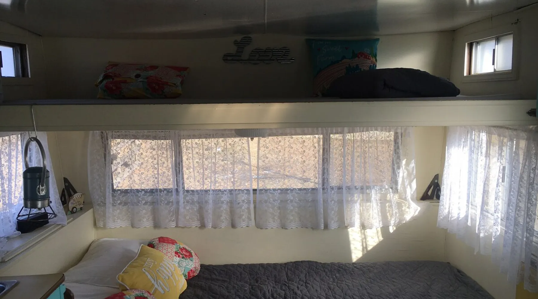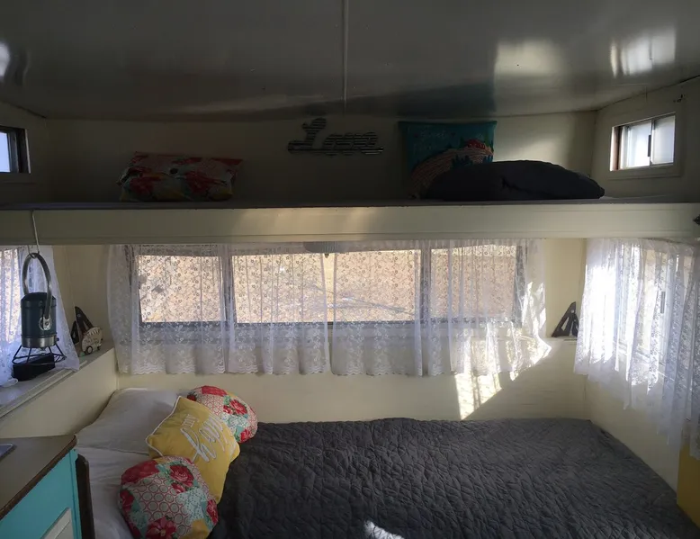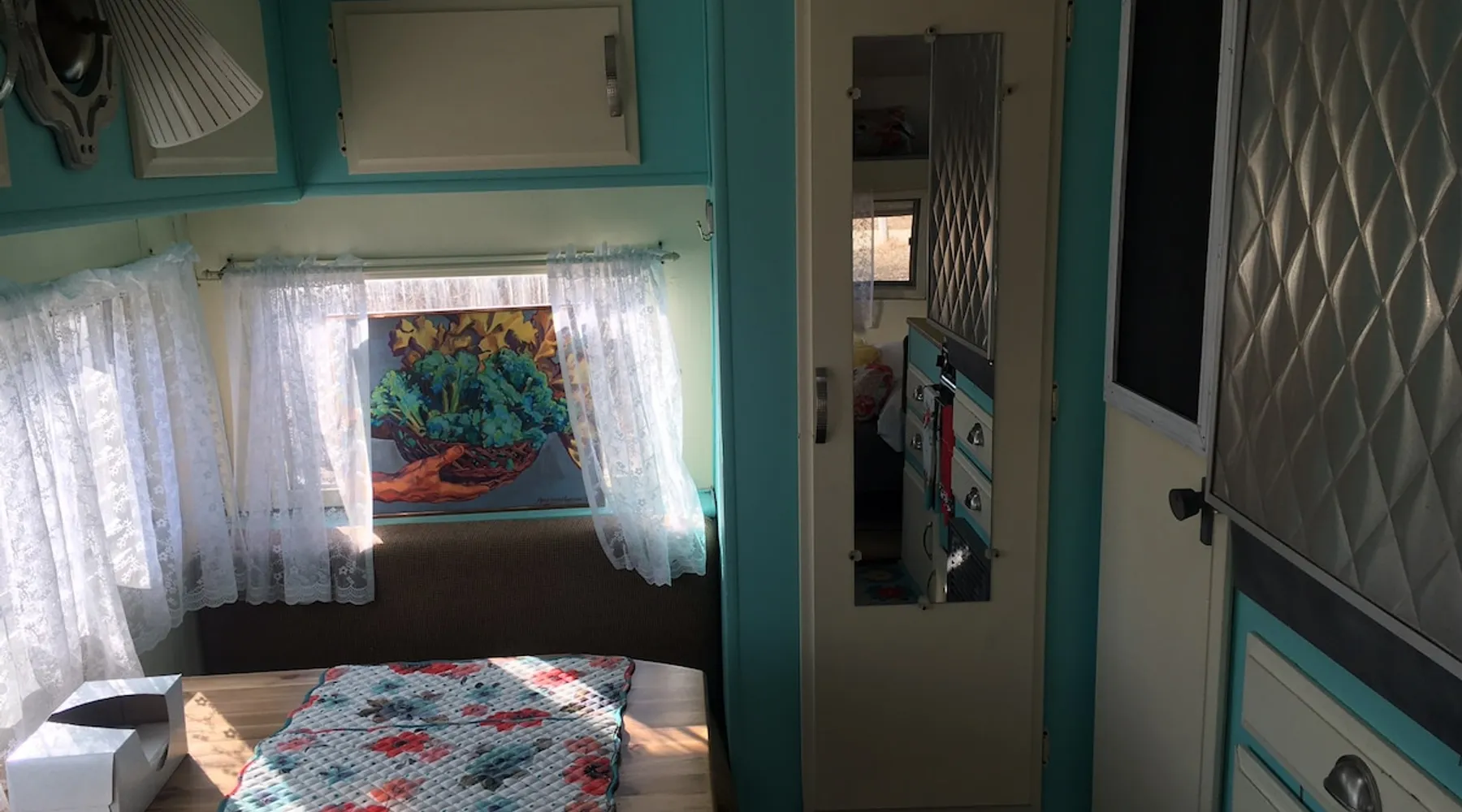 This 1972 Komforter Camper sits on the north side of our farm and is located in the middle of our 10 acres . The camper has its own entrance off Prairie Rd on a small lane called Happy Lane. It's a private oasis with bon fire area ( wood provided) and vintage games for a relaxing getaway. The space The camper does not have electricity but we have puck lights and vintage lanterns . We set up a microwave and coffee maker in the nearby barn . You can run an extension cord out to charge phones and power an electric cooler . You'll have a wonderful view of both the sunrise and sunset over the hay field and soybean field. The garden shed near the camper is available space for gatherings for wet weekends. Guest access Happy Camper has a small bathroom with stool, mirror and sink. Guests can use the farmhouse bathroom for showering. We plan to offer two bikes in the near future for guests.