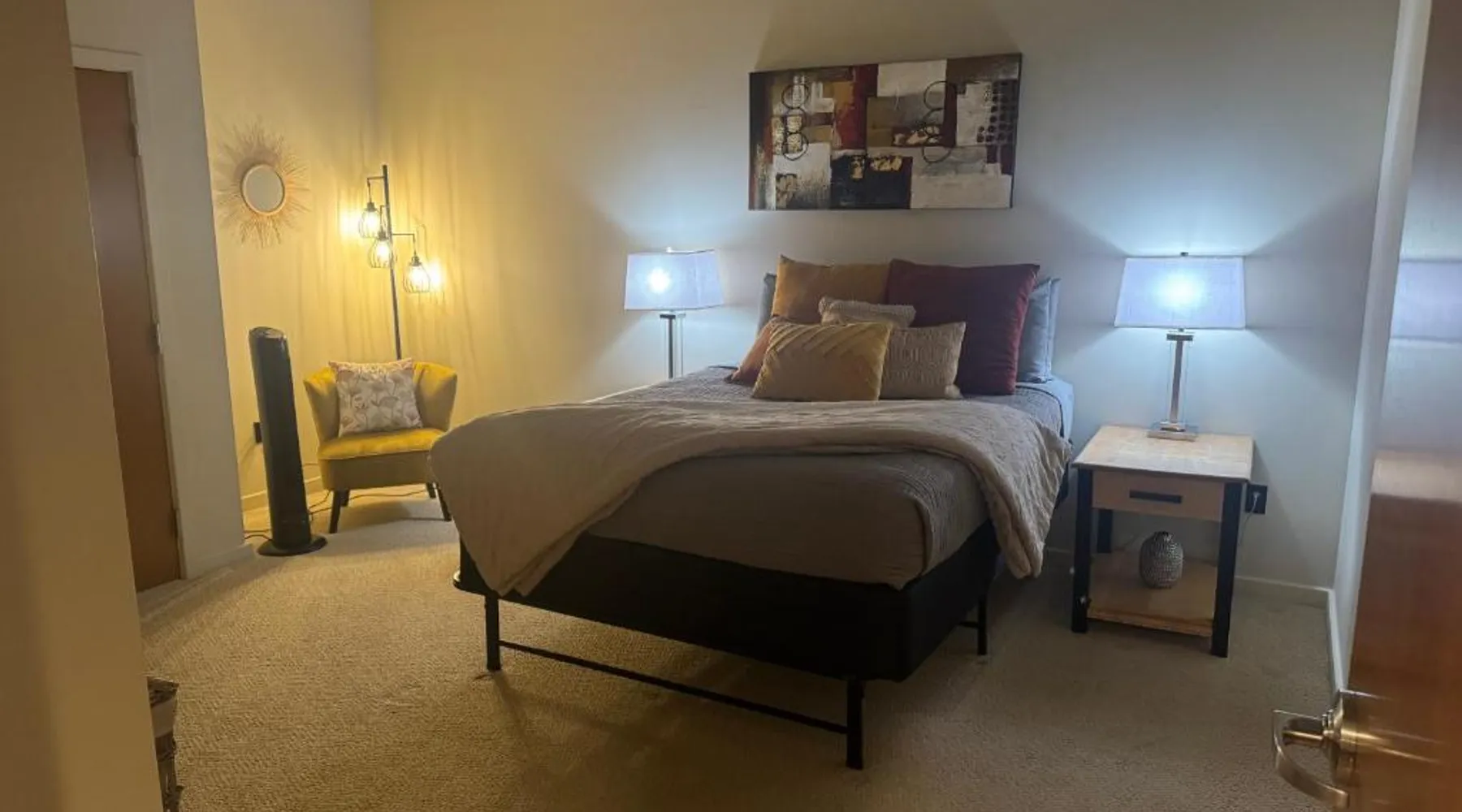 Spacious Accommodations: Cozy Boho Bellerive Condo on the Spokane River in Coeur d'Alene offers a spacious holiday home with two bedrooms and two bathrooms. The living room features a sofa bed and a dining area, providing ample space for relaxation and entertainment. Modern Amenities: Guests enjoy free WiFi, a fitness center, restaurant, and bar. Additional facilities include a minimarket, coffee shop, outdoor seating area, picnic area, and barbecue facilities. Private check-in and check-out services, beauty services, and a fitness room enhance the stay. Convenient Location: Located 37 mi from Spokane International Airport, the property is 18 mi from Silverwood Theme Park and 17 mi from MeadowWood Golf Course. Activities such as fishing, canoeing, hiking, and cycling are available nearby. Boasting a private entrance, this air-conditioned apartment comes with 1 living room, 2 separate bedrooms and 2 bathrooms with a bath and a shower. Guests will find a stovetop, a refrigerator, a dishwasher and kitchenware in the well-equipped kitchen. The apartment also includes a barbecue. The spacious apartment features a flat-screen TV with streaming services, a washing machine, a tea and coffee maker, a seating area as well as city views. The unit has 3 beds.
