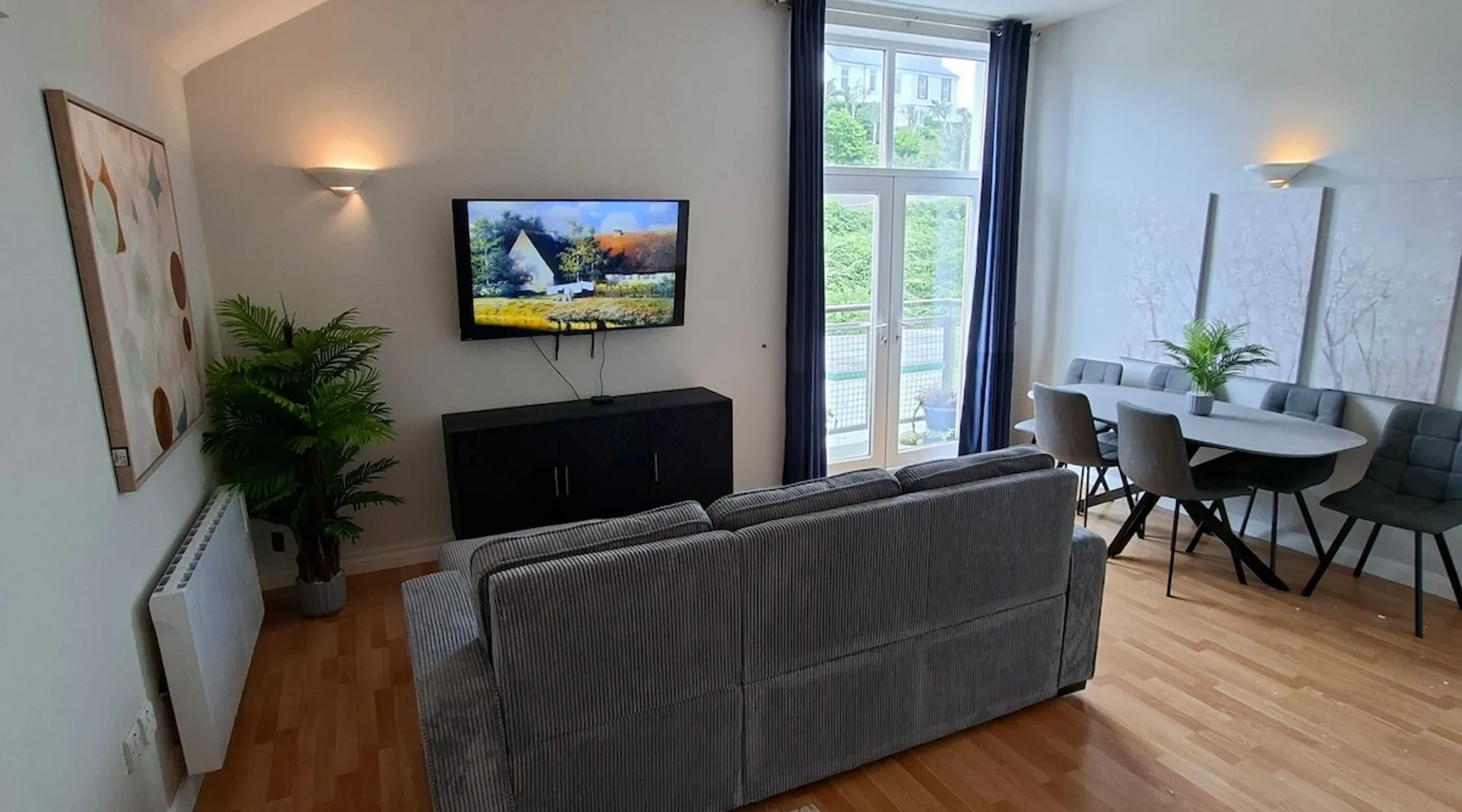 LOCATION! LOCATION ! LOCATION! Relax & enjoy in our stunning beachfront top floor penthouse apt 30secs walk to the blue flag beach! Located Within a minutes walk to the new Youghal to Midleton greenway, with beautiful blue flag beaches, Inc the Eco Boardwalk a 1.9km walkway, a perfect place to get lungfulls of fresh sea air! Brand new furniture, new 55inch TV with Sky tv and super fast fibre internet Clancys bar & restaurant is a 30 sec walk serving classic Irish food, music & drink! The space 2 x double bedrooms and double sofa bed can sleep 5, with lift access to penthouse and private parking. Property has a wall mounted 55inch smart 4k tv,super fast broadband and Sky tv with free boxsets (over 1000 boxsets to choose from ) and netflix access Property has brand new furniture, beds and all new kitchen appliances including washing machine dishwasher fridge cooker airfryer microwave coffee machine kettle toaster Guest access full apartment access Other things to note maximum people allowed in the apartment is 5