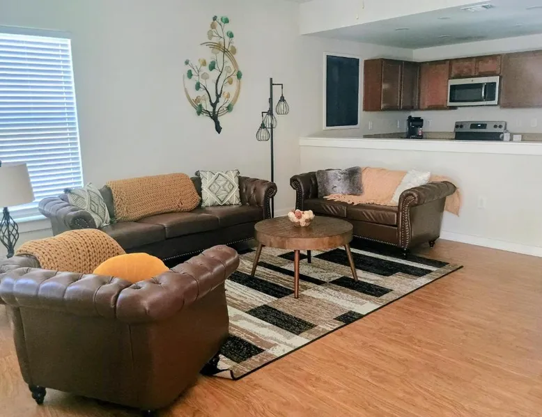 Spacious Accommodations: Townhouse in Albuquerque, NM offers a spacious apartment with five bedrooms and five bathrooms. The property features a private pool, sauna, and hot tub, ensuring relaxation for all guests. Modern Amenities: Guests enjoy free WiFi, air-conditioning, and a fully equipped kitchen. Additional facilities include a washing machine, balcony, and outdoor dining area. Free on-site private parking is available for convenience. Convenient Location: Located 1.2 mi from Albuquerque International Sunport, the apartment is close to attractions such as University Stadium (2.5 mi) and ABQ BioPark - Zoo (4.3 mi). Free on-site private parking is available for guests. Guests will have a special experience as this apartment provides a private pool, a hot tub and a sauna. Featuring a private entrance, this spacious apartment also consists of 5 separate bedrooms and 5 bathrooms with a bath and a shower. Guests will find a stovetop, a refrigerator, a dishwasher and kitchenware in the well-equipped kitchen. The apartment also provides guests with a barbecue. This air-conditioned apartment includes a dining area, a flat-screen TV with cable channels a washing machine and a patio. The unit offers 7 beds.