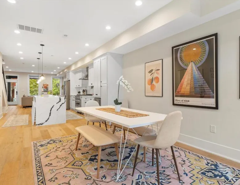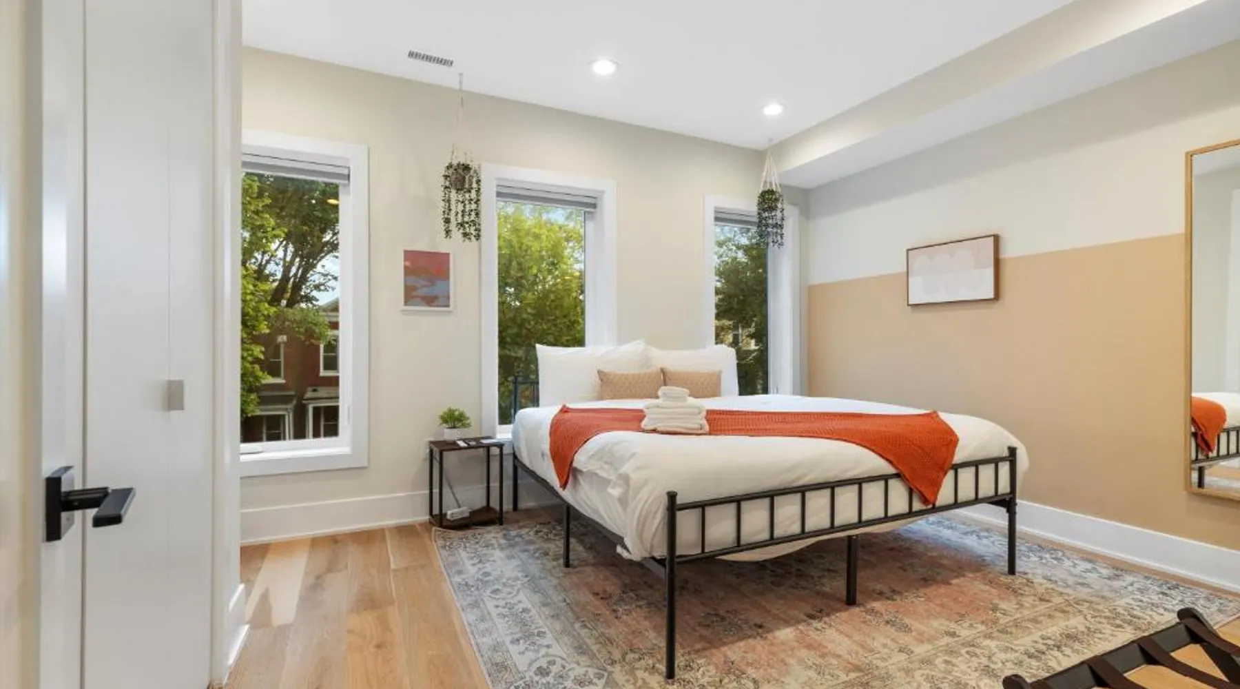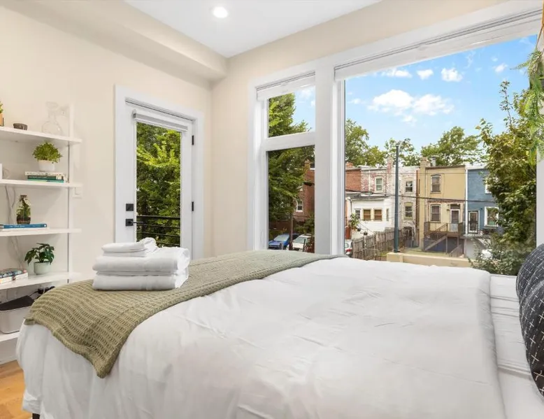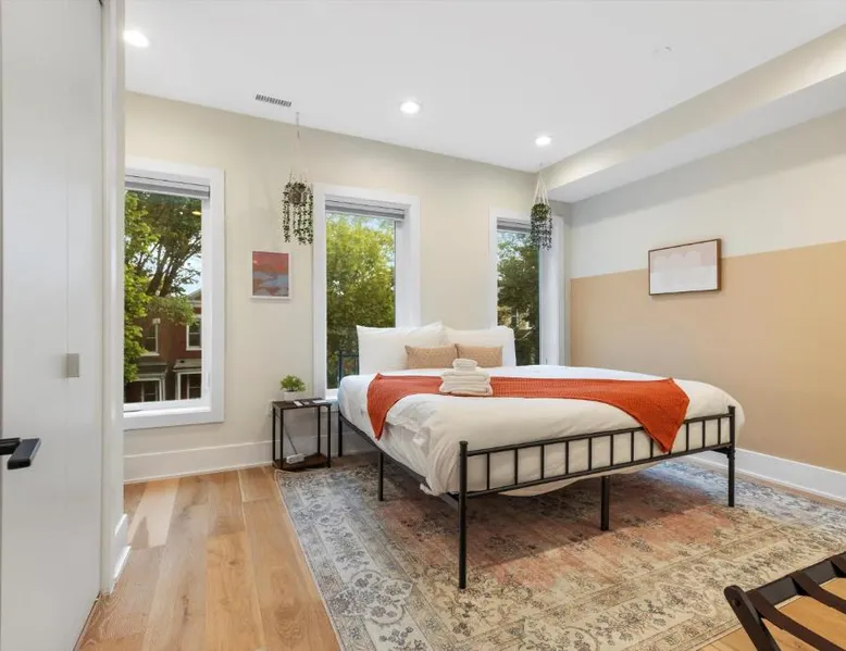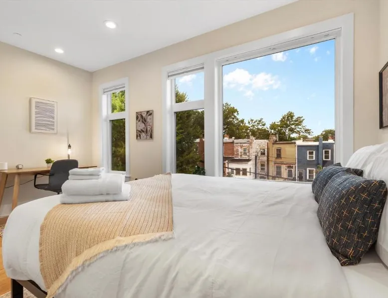 Spacious Accommodations: Central DC 5-BR Townhome in Washington offers a spacious holiday home with five bedrooms and four bathrooms. Guests enjoy free WiFi and complimentary on-site parking. Modern Amenities: The property features air-conditioning, streaming services, a washing machine, and a fully equipped kitchen with a dishwasher and microwave. Additional amenities include a patio, city views, and a work desk. Convenient Location: Located 8.1 mi from Ronald Reagan Washington National Airport, the townhome is close to attractions such as Walter E Washington Convention Center (1.9 mi), Phillips Collection (2.2 mi), and The National Mall (2.9 mi). An ice-skating rink is also nearby. The well-equipped kitchen features a stovetop, a refrigerator, a dishwasher and kitchenware. The spacious air-conditioned holiday home offers a TV with streaming services, a washing machine, a private entrance, a tea and coffee maker as well as city views. The unit offers 5 beds.
