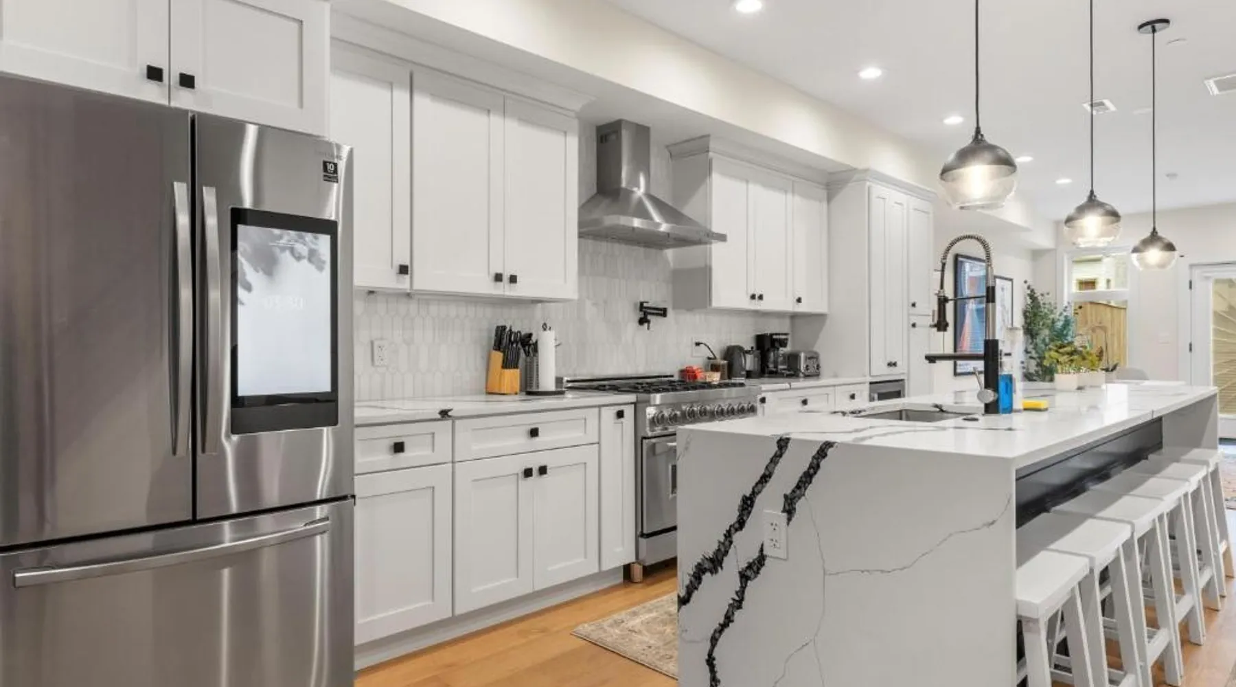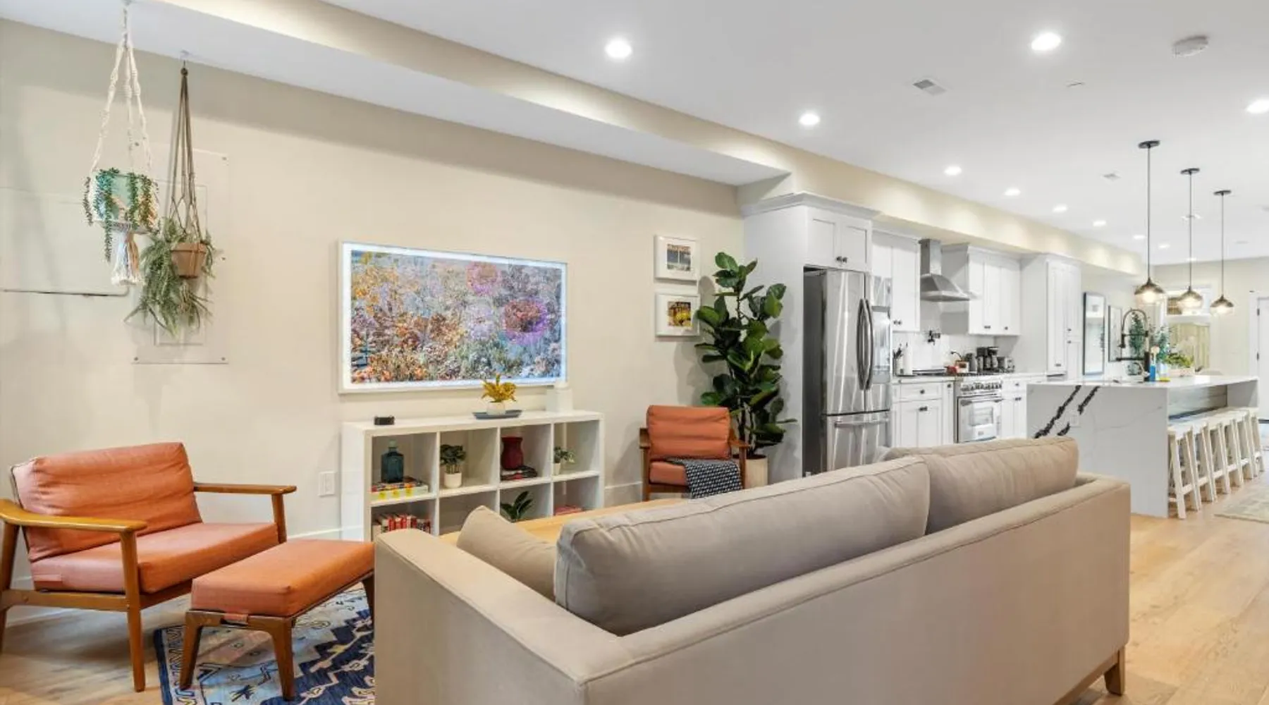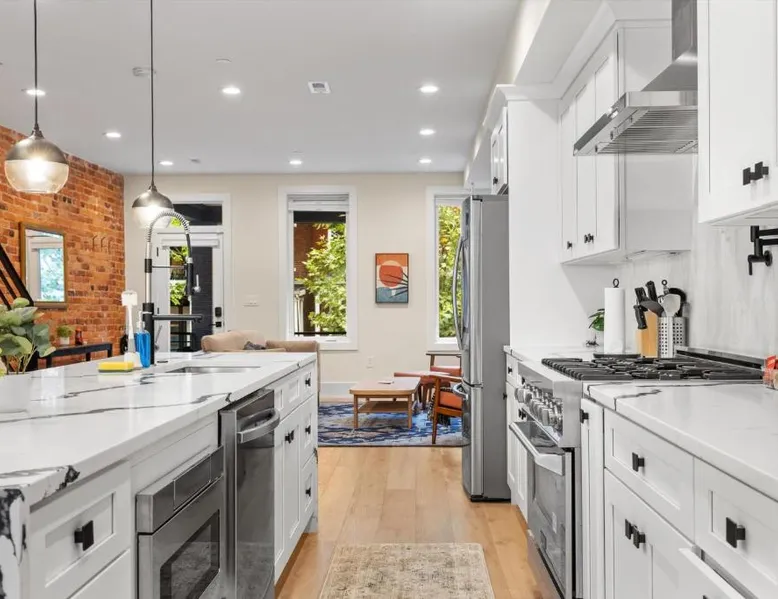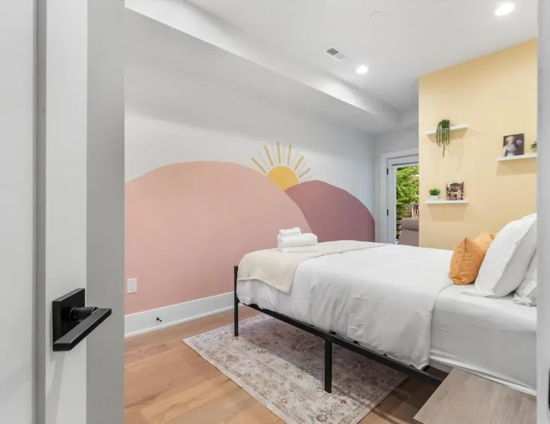 Spacious Accommodations: Central DC 5-BR Townhome in Washington offers a spacious holiday home with five bedrooms and four bathrooms. Guests enjoy free WiFi and complimentary on-site parking. Modern Amenities: The property features air-conditioning, streaming services, a washing machine, and a fully equipped kitchen with a dishwasher and microwave. Additional amenities include a patio, city views, and a work desk. Convenient Location: Located 8.1 mi from Ronald Reagan Washington National Airport, the townhome is close to attractions such as Walter E Washington Convention Center (1.9 mi), Phillips Collection (2.2 mi), and The National Mall (2.9 mi). An ice-skating rink is also nearby. The well-equipped kitchen features a stovetop, a refrigerator, a dishwasher and kitchenware. The spacious air-conditioned holiday home offers a TV with streaming services, a washing machine, a private entrance, a tea and coffee maker as well as city views. The unit offers 5 beds.