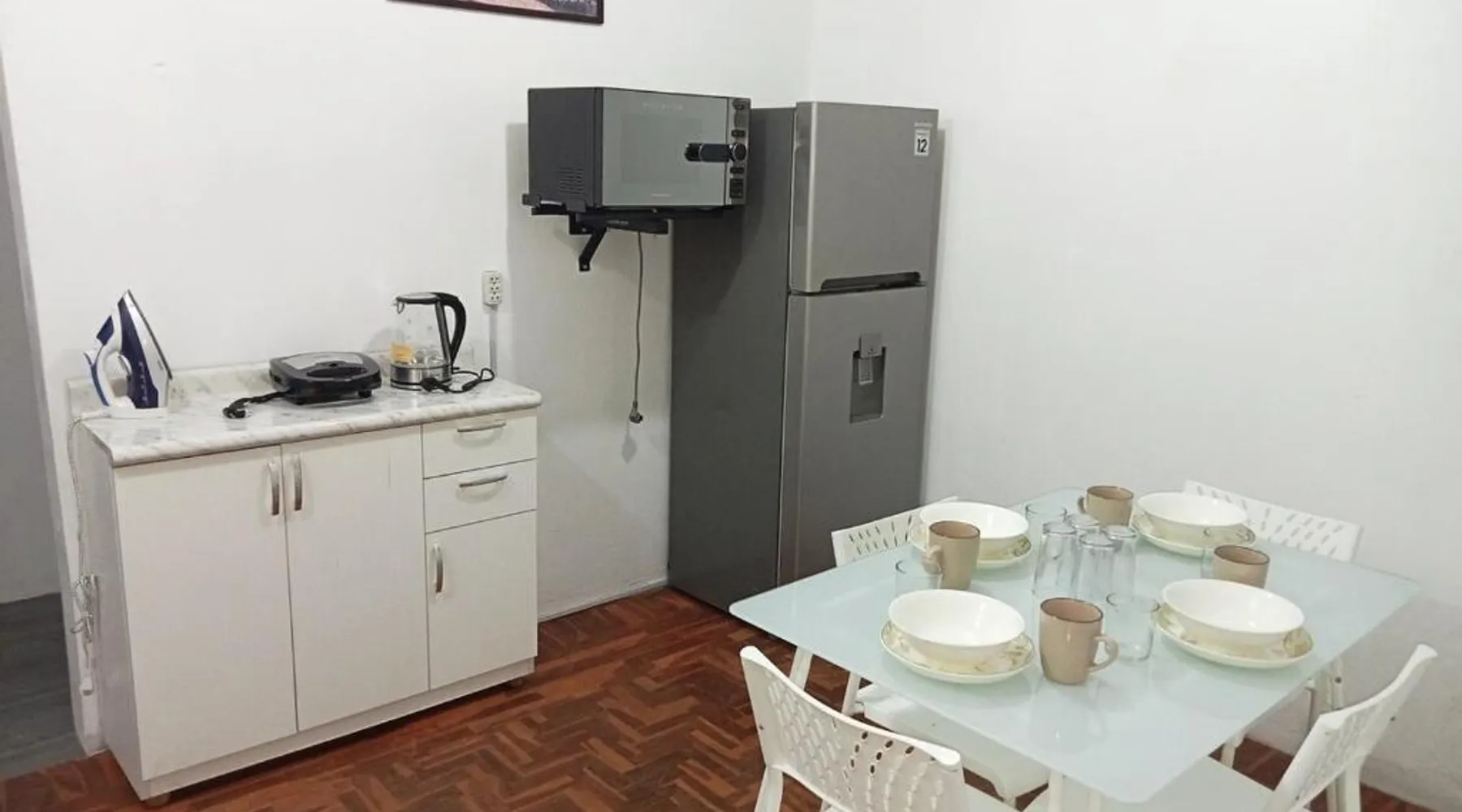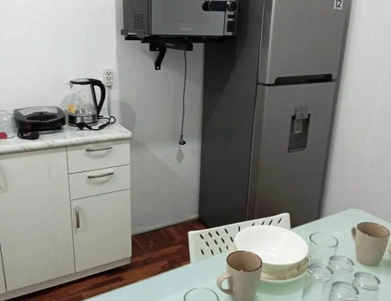 Comfortable Accommodations: Departamento 2 HABITACIONES in Callao offers a recently renovated apartment with two bedrooms and a living room. The property features family rooms and a private entrance, ensuring a pleasant stay. Modern Amenities: Guests enjoy free WiFi, a dining table, refrigerator, microwave, bath or shower, TV, electric kettle, and a dining area. The apartment is equipped with all necessary amenities for a comfortable stay. Convenient Location: Located 1.9 mi from Jorge Chavez International Airport and 1.2 mi from Miguel Grau Stadium, the apartment provides easy access to key attractions. Nearby points include Las Nazarenas Church (5.6 mi) and San Martín Square (6.2 mi). Featuring a private entrance, this apartment also consists of 1 living room, 2 separate bedrooms and 1 bathroom with a bath or a shower. This apartment features a dining area, an electric kettle and a flat-screen TV. The unit offers 3 beds.