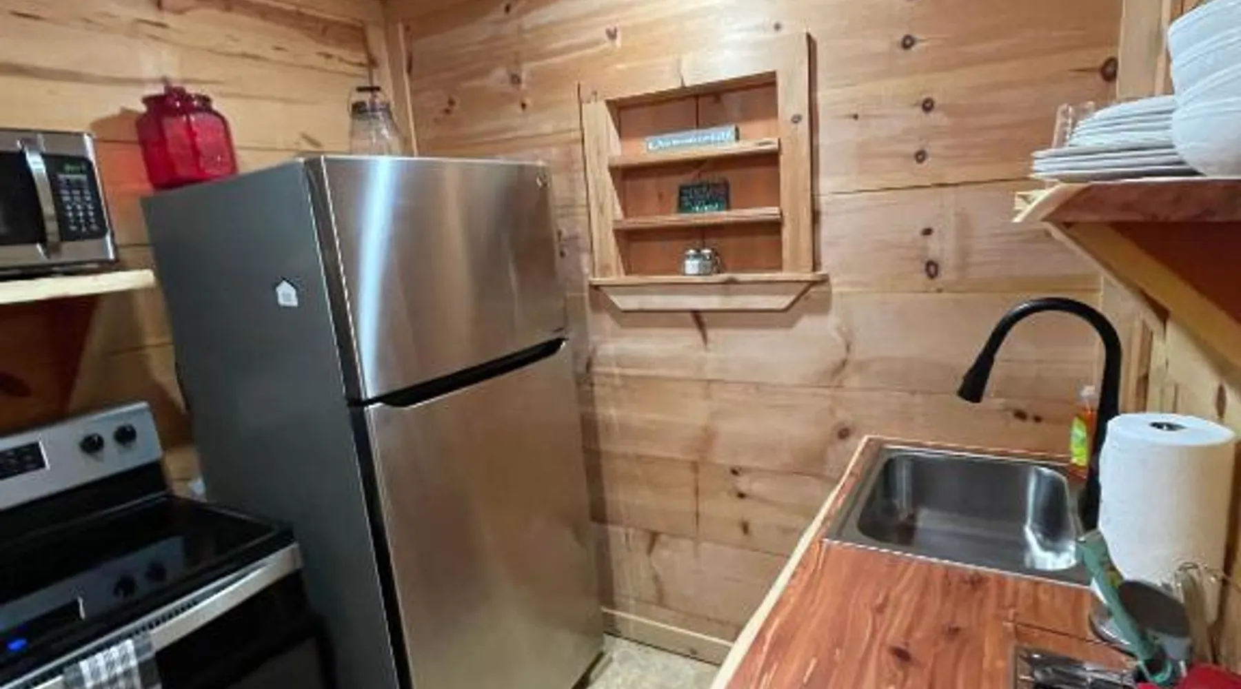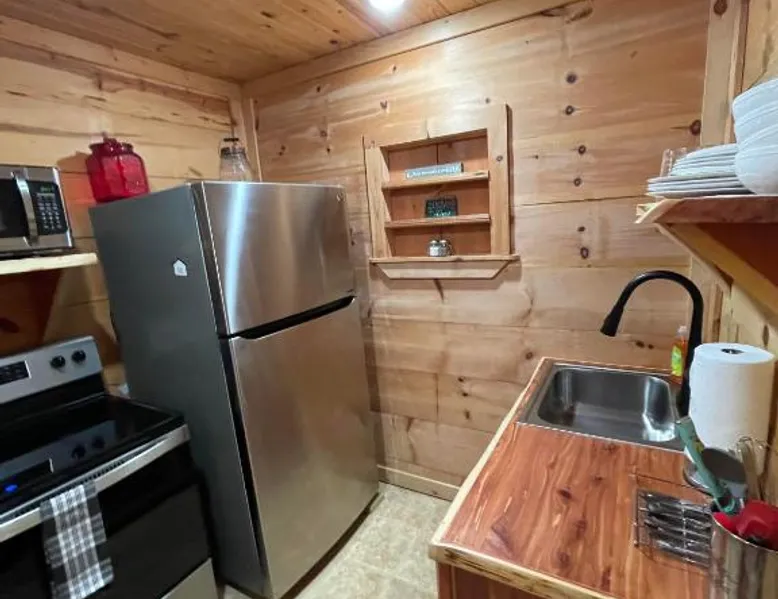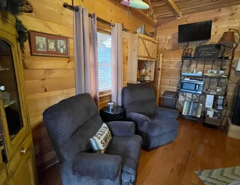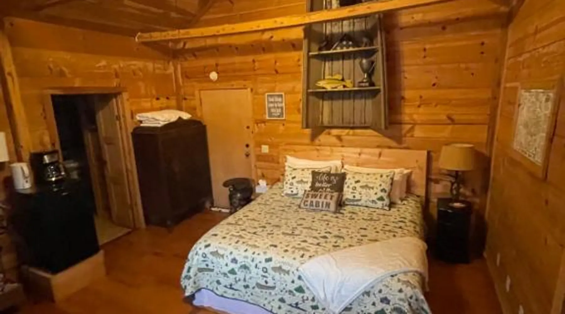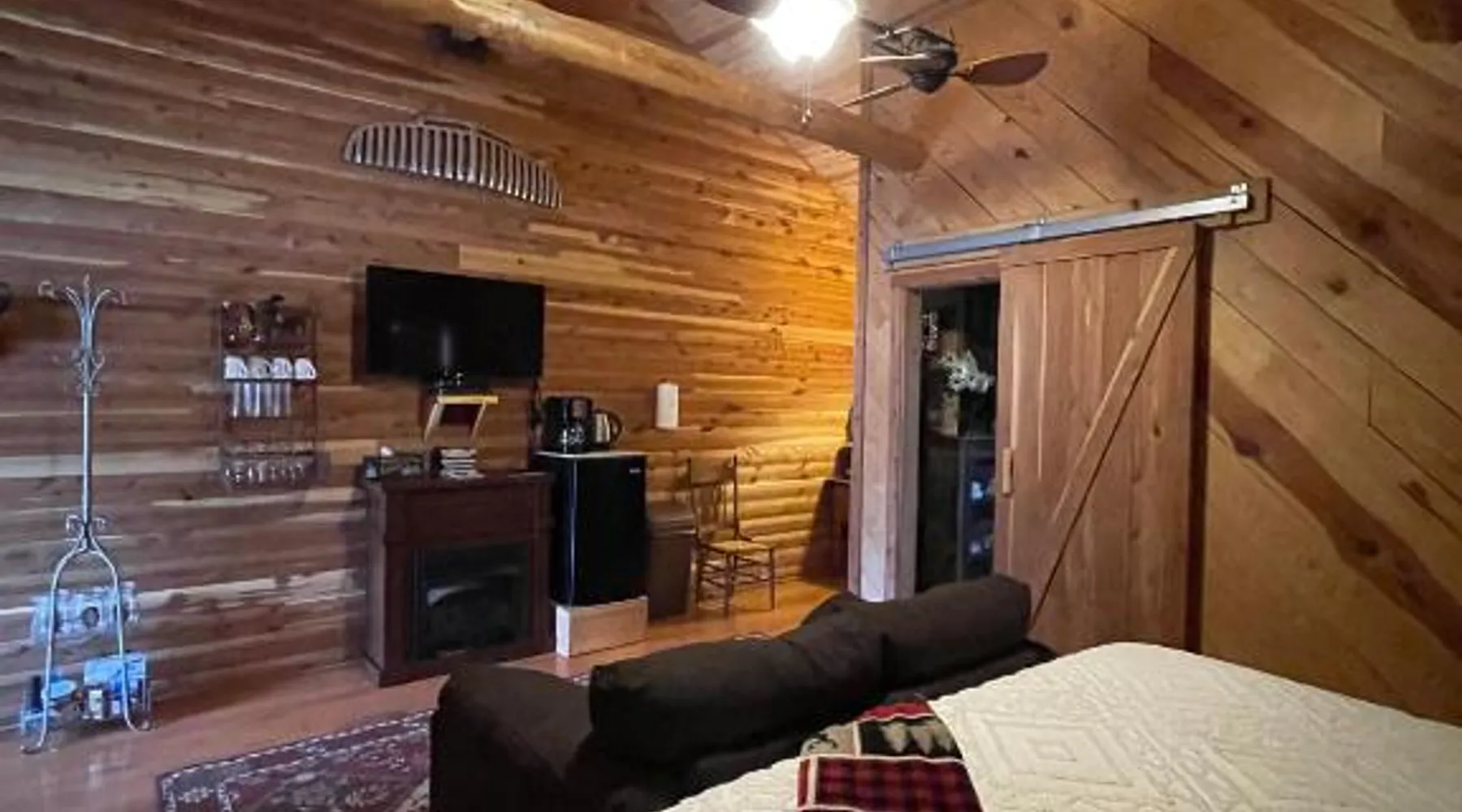 Comfortable Accommodations: Cedar Street Lodge in Mountain View offers family rooms with private bathrooms, air-conditioning, and parquet floors. Each room includes a tea and coffee maker, hairdryer, and free toiletries. Essential Facilities: Guests enjoy free WiFi, private check-in and check-out services, and free on-site private parking. The property features an outdoor seating area, picnic area, and outdoor dining space. Additional Amenities: The guest house provides a kitchenette with a refrigerator, microwave, oven, and stovetop. Amenities include a fireplace, TV, and dining area, ensuring a pleasant stay. Location and Accessibility: Located 83 mi from Boone County Airport, Cedar Street Lodge offers a quiet street view and is highly rated by guests. This suite features a fireplace. Boasting a private entrance, this air-conditioned suite features 1 living room, 1 separate bedroom and 1 bathroom with a walk-in shower and a hairdryer. The well-fitted kitchenette has a refrigerator, kitchenware and a microwave. Featuring an outdoor dining area, this suite also features a tea and coffee maker, a seating area and a flat-screen TV with cable channels. The unit has 1 bed.