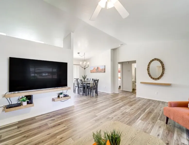 Spacious Holiday Home in Cottonwood: 3 Mi to Old Town Cottonwood Quiet Home with Patio offers a spacious setting in Cottonwood. Guests enjoy free WiFi, air-conditioning, and a games room. Modern Amenities: The property features a fully equipped kitchen with a coffee machine, dishwasher, and microwave. Additional amenities include a washing machine, patio, and barbecue. Convenient Location: Located 39 mi from Ernest A Love Field Airport, the holiday home is near attractions such as Cliff Castle Casino (16 mi), Montezuma Castle National Monument (18 mi), and Chapel of the Holy Cross (24 mi). Highly Rated by Guests: Guests appreciate the spaciousness, comfortable living areas, and excellent facilities. Featuring a private entrance, this air-conditioned holiday home consists of 1 living room, 3 separate bedrooms and 2 bathrooms with a bath and a shower. Guests will find a stovetop, a refrigerator, a dishwasher and kitchenware in the well-fitted kitchen. The holiday home also offers a barbecue. The spacious holiday home provides a washing machine, a coffee machine, a wardrobe, tumble dryer and a flat-screen TV with cable channels. The unit offers 3 beds.