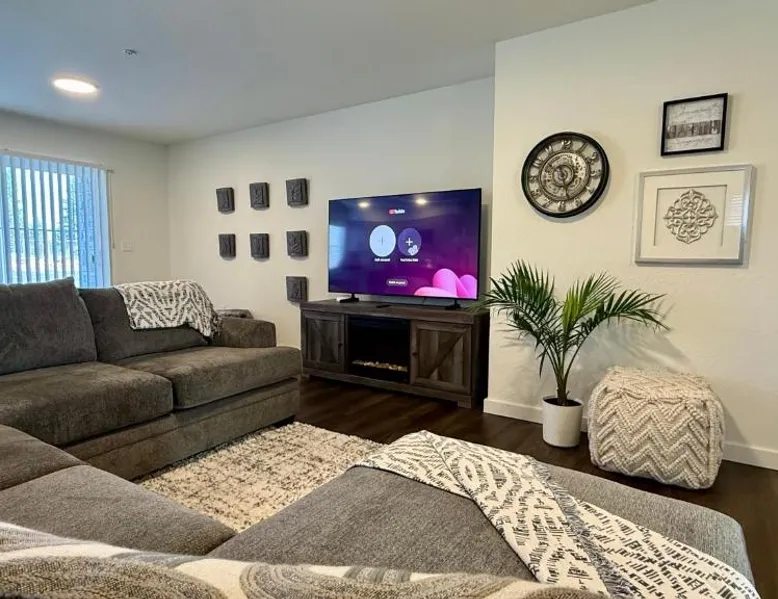 Spacious Accommodations: Homestead Village - Two Bedroom Condo Ground Floor in Sandpoint offers a spacious apartment with two bedrooms and a living room. The ground-floor unit features a private entrance and parquet floors. Modern Amenities: Guests enjoy free WiFi, air-conditioning, and a fully equipped kitchen with a refrigerator, microwave, dishwasher, oven, stovetop, and toaster. Additional amenities include a patio with garden views, dining area, and a seating area. Convenient Location: Located 78 mi from Spokane International Airport, the property is 1.9 mi from City Beach and 23 mi from Kasamatsu Park. Silverwood Theme Park is 30 mi away. Free on-site private parking is available. Featuring a private entrance, this air-conditioned apartment consists of 1 living room, 2 separate bedrooms and 1 bathroom with a shower and a hairdryer. Guests can make meals in the kitchen that is equipped with a stovetop, a refrigerator, a dishwasher and an oven. The spacious apartment provides a tea and coffee maker, a seating area, a dining area, a flat-screen TV, as well as garden views. The unit offers 2 beds.