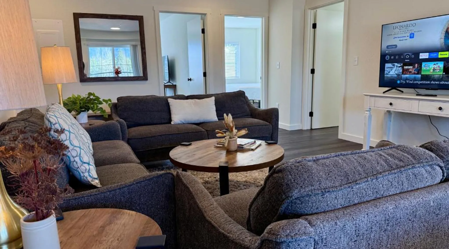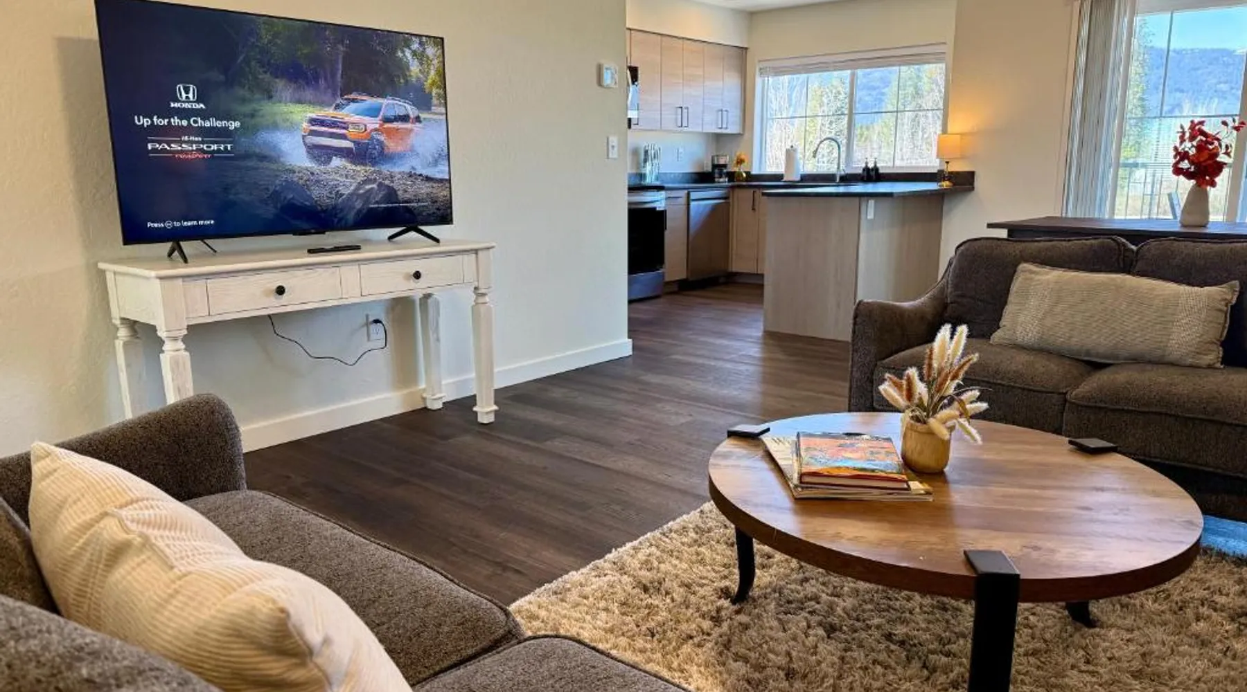 Spacious Accommodations: Homestead Village - Two Bedroom Condo Top Floor in Sandpoint offers a spacious apartment with two bedrooms and a living room. The property features parquet floors and a private entrance. Modern Amenities: Guests enjoy free WiFi, air-conditioning, and a balcony. The kitchen is equipped with a refrigerator, microwave, dishwasher, oven, stovetop, toaster, and coffee machine. Additional amenities include a dining table, TV, and sofa. Convenient Services: The property provides private check-in and check-out services, free on-site private parking, and a private bathroom with a shower. Local Attractions: City Beach is 1.9 mi away, and Spokane International Airport is 78 mi from the apartment. Featuring a private entrance, this air-conditioned apartment consists of 1 living room, 2 separate bedrooms and 1 bathroom with a bath and a shower. Meals can be prepared in the kitchen, which is equipped with a stovetop, a refrigerator, a dishwasher and kitchenware. A sofa, a flat-screen TV, a tea and coffee maker and a balcony are provided in this spacious apartment. The unit offers 2 beds.