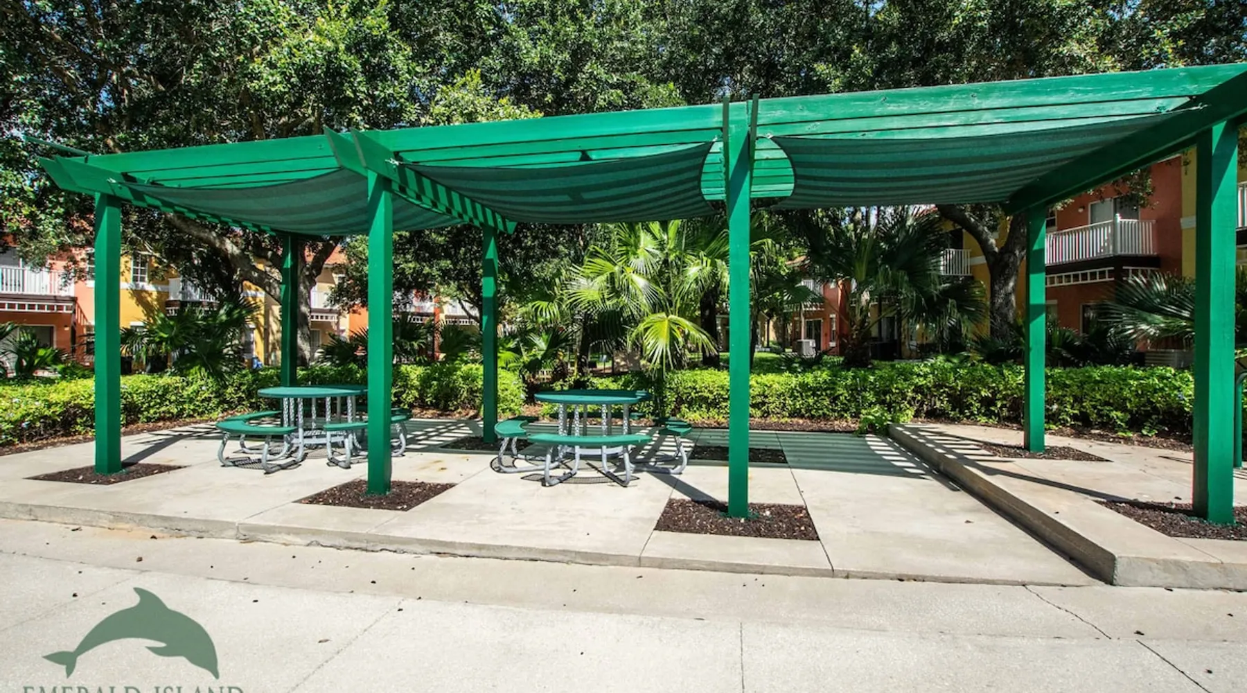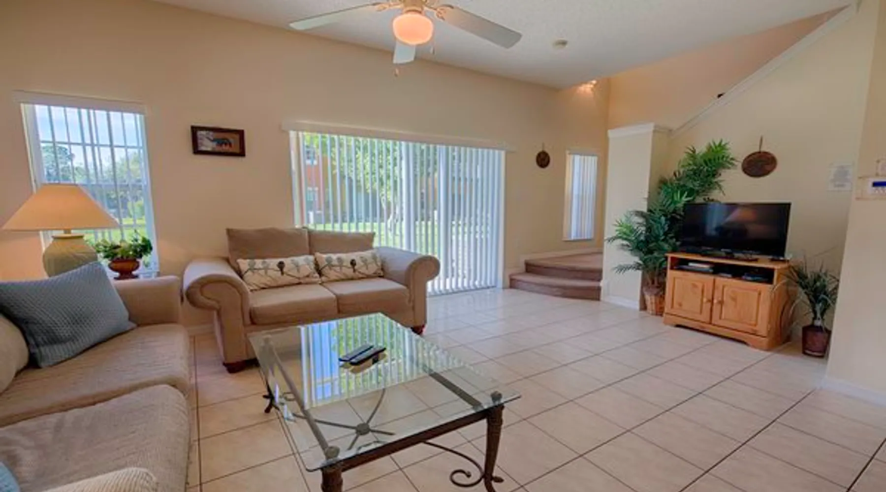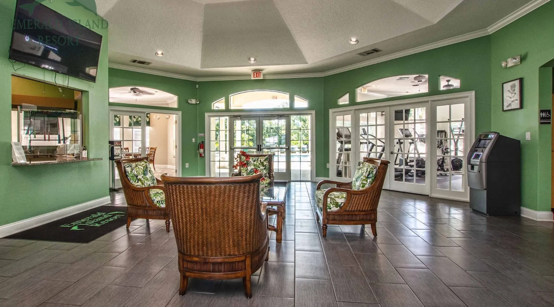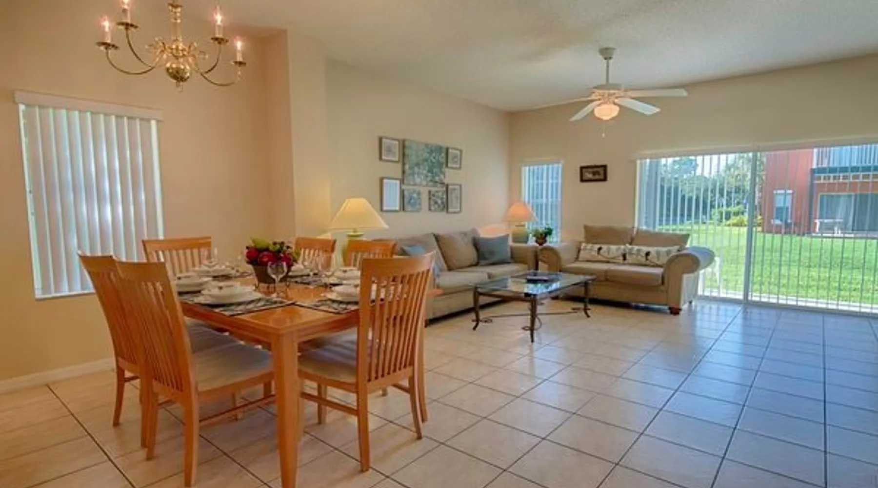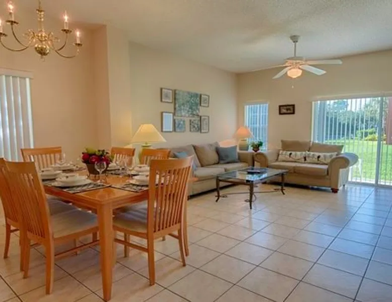 This "Timon's Magic" villa is proudly presented to you by "Emerald Island Rentals" "Timon's Magic" villa offers 3 bedrooms, 2.5 bathrooms and comes with all new upgraded furniture and furnishings. This premium Emerald Island Resort vacation condo is located 3 miles (5 minutes) from Disney World. Whether you are visiting Orlando area for one of the many attractions or planning to do shopping, you can be comfortable in this economical accommodation. The space Highlights •3 bedrooms, 2.5 bathrooms •Accommodates 8 guests •No per person charge •High quality linens •Free wireless internet •Free phone calls •Pack-n-play crib •TVs and DVD players in every bedroom •Free access to resort facilities •Electronic lock, no keys to pick-up •3 Miles to Disney Our luxury townhouse is only a couple of minutes walk from all the resort facilities and comprises of the following: Living Room The living room has a 2 seater and 3 seater sofa and a large coffee table. For your entertainment we have provided a Flat-Screen TV and DVD player. Dining Area Adjacent to the living room and kitchen is the dining area and has a large table with seating for up to 6 diners and is beautifully set out for those special dining occasions. Kids will love the bar-stools over the nook area. Kitchen The fully equipped kitchen complete with all mod cons to make your holiday as relaxing as possible. Amenities include full size cooker, waste disposal, fridge/freezer with ice & water dispenser, microwave, dishwasher, coffee maker, crockery, cutlery and a toaster. All that's needed is the food and drink!! The breakfast bar provides additional seating on bar stools for 3. We have even provided an infant high chair for your little one. Laundry Facilities The laundry room provides a washing machine, tumble dryer, ironing board and an iron for your convenience – leave space in your luggage for all those cheap designer clothes you are likely to purchase at the excellent designer outlet malls!! Ground Floor Half Bathroom This bathroom nestled under the stairs next to the laundry room features a single vanity unit and a WC. Master Bedroom This wonderful contemporary styled bedroom is furnished with a king sized bed with matching furnishings and provides a closet and ample drawer space. This bedroom has its own Flat-Screen TV with DVD, alarm clock radio and telephone. The enclosed en-suite bathroom has a single vanity unit, bath with walk-in shower cubicle and WC. There is also a hairdryer in the vanity unit. Bedroom 2 This bedroom features a queen sized bed and built-in wardrobe. Additional features include a Cable TV with DVD and alarm clock radio. Bedroom 3 This kids bedroom features twin beds and a built-in wardrobe. Additional features include a flat-screen TV with DVD player. Family Bathroom This bathroom shared by bedrooms 2 & 3, features a single vanity unit, bath with shower over and WC. Baby Equipment We have provided a pack and play cot (crib) for your everyday convenience. Additional Features We have provided protected high speed wireless DSL internet access throughout the property – just bring your laptop. All local, national and international telephone calls are included so you can keep in touch with loved ones back home and not worry about the cost. Guest access All our villas can be accessed via a secure keyless access code or electronic lock or lockbox feature. Access to the community is free but guests are required to purchase an access card for each vehicle at a cost of $20 per vehicle (for the entire stay) which can be used on all future visits. Guests will have full access to the entire townhome. They will also have free access to all resort community features and common areas such as Club House, Gym, Internet Café, Swimming pools, Tennis courts, Volleyball Court, Walking trials, and more.