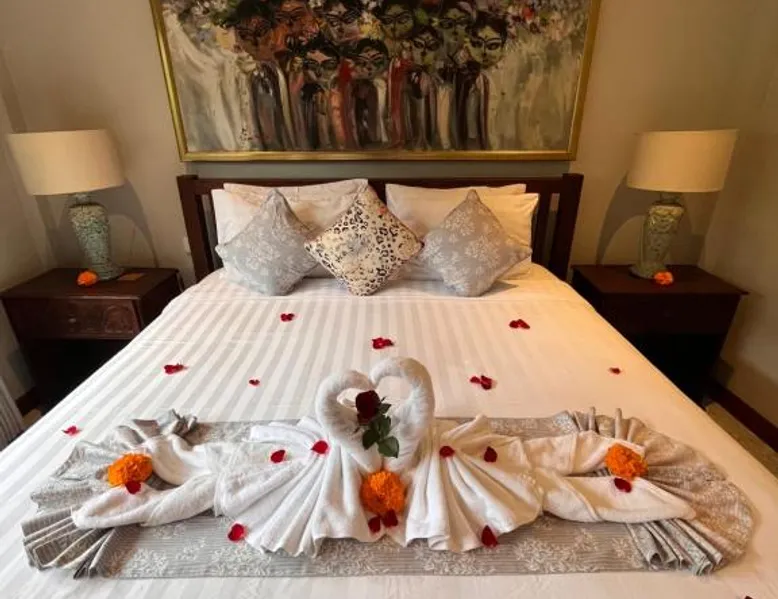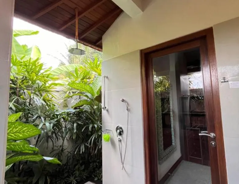 Elegant Accommodations: Badra House Frangipani in Gianyar offers a villa with a garden, terrace, and a year-round outdoor swimming pool. Free WiFi is available throughout the property. Comfortable Amenities: The villa features air-conditioning, a fully equipped kitchen, and a private pool. Guests can enjoy garden and pool views, a dining area, and a seating space. Dining Options: Breakfast options include American, à la carte, vegetarian, vegan, and gluten-free. Additional amenities include streaming services, a tea and coffee maker, and a refrigerator. Local Attractions: Located 21 mi from Ngurah Rai International Airport, the property is a short walk from Blanco Museum and 1.2 mi from Saraswati Temple. Nearby attractions include Neka Art Museum and Monkey Forest Ubud. The private pool is the special feature of this villa. Meals can be prepared in the well-fitted kitchen, which comes with a stovetop, a refrigerator, kitchenware and a toaster. The air-conditioned villa provides a flat-screen TV with streaming services, a private entrance, soundproof walls, a tea and coffee maker as well as garden views. The unit offers 1 bed.
