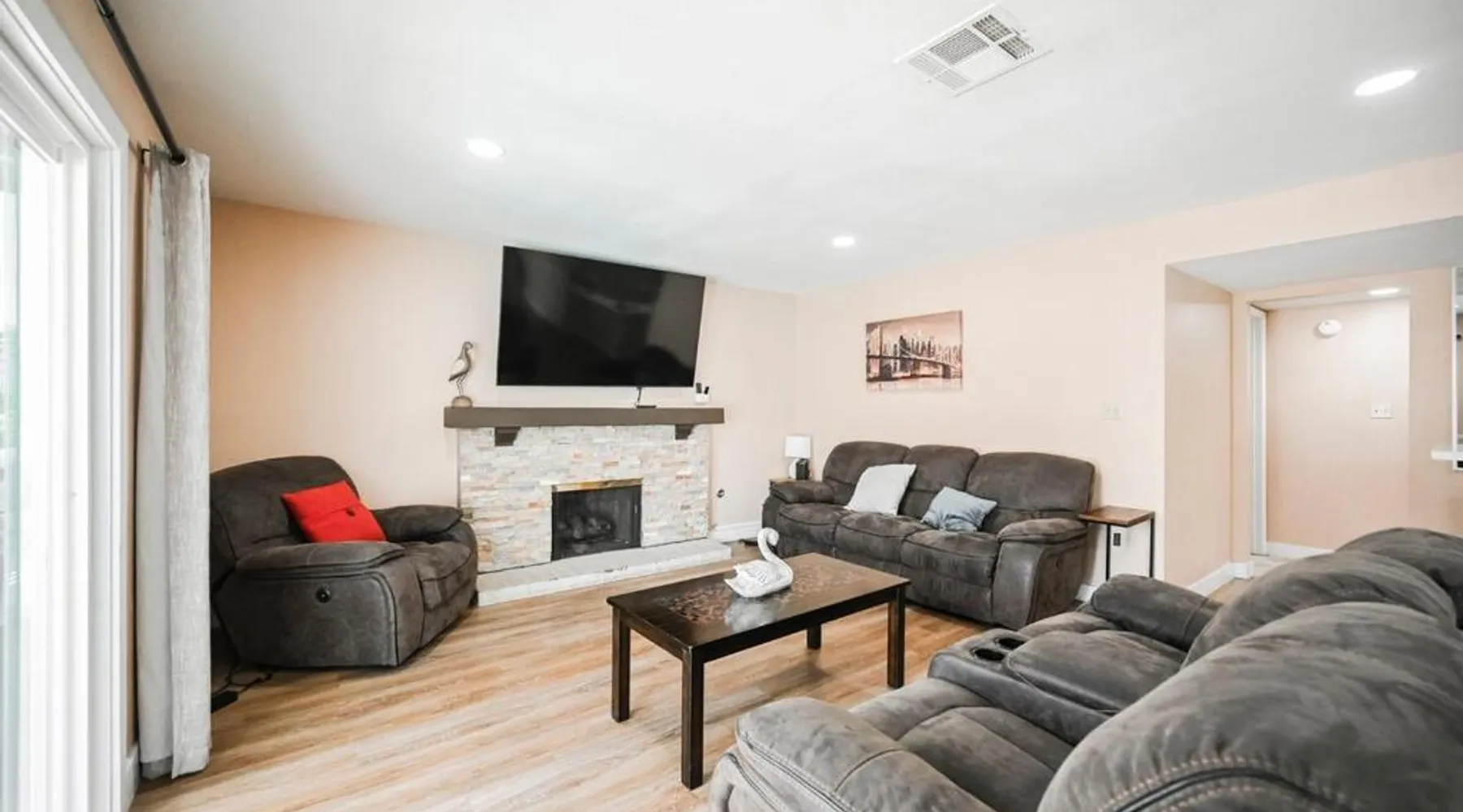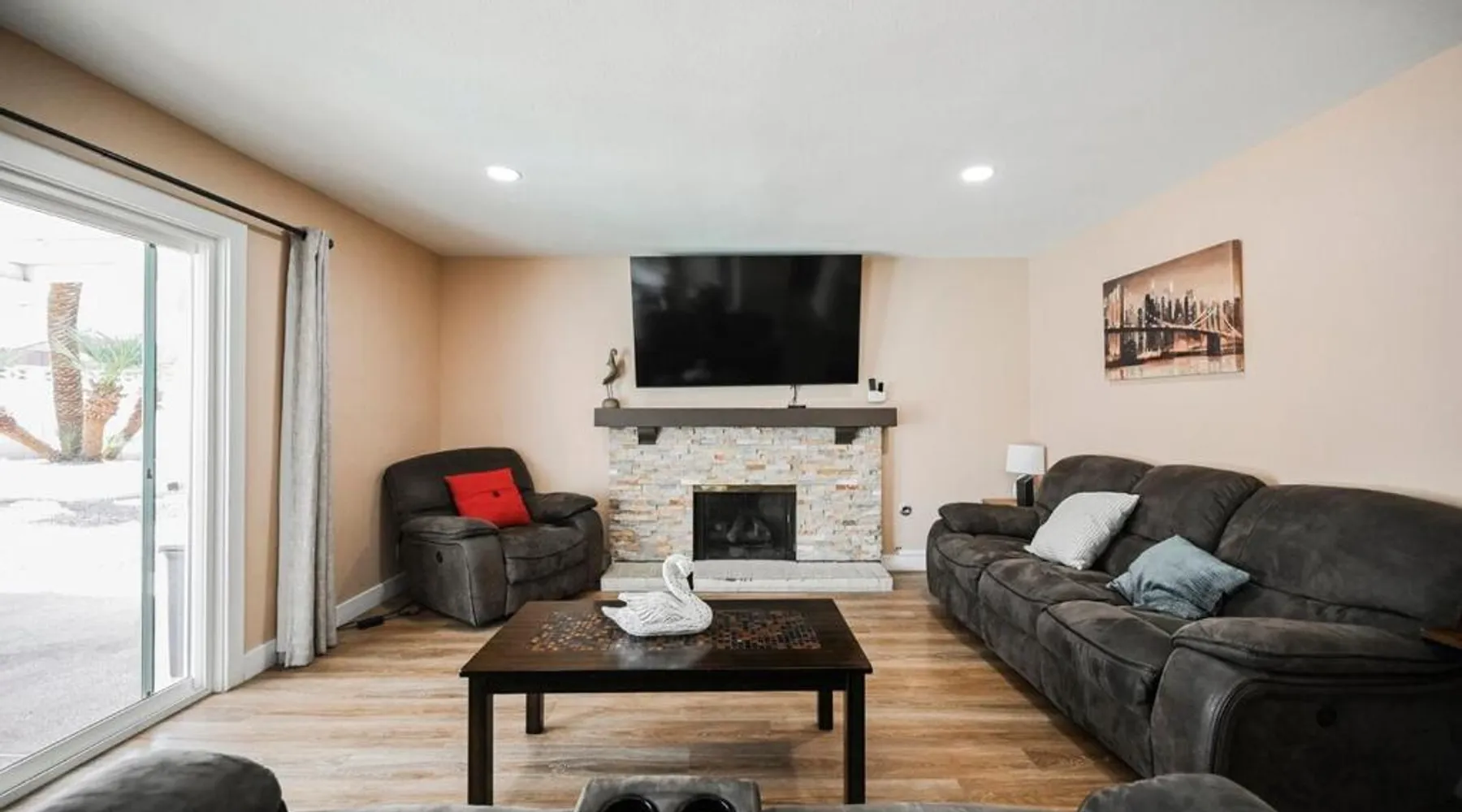 Spacious Accommodations: Spacious Henderson Hidden Gem! in Las Vegas offers a spacious apartment with five bedrooms and three bathrooms. The living room features a sofa bed and a work desk, ensuring comfort and convenience for all guests. Leisure Facilities: Guests can enjoy a garden, indoor swimming pool, and free WiFi. Additional amenities include a hot tub, balcony, and outdoor seating area, providing ample opportunities for relaxation and entertainment. Convenient Location: Located 4.3 mi from Harry Reid International Airport, the property is close to attractions such as Mandalay Bay Convention Center (8.7 mi) and Bellagio Fountains (11 mi). Free on-site private parking is available for guests' convenience. Guests will have a special experience as this apartment features a pool with a view, a hot tub and a fireplace. Featuring a private entrance, this air-conditioned apartment consists of 1 living room, 5 separate bedrooms and 3 bathrooms with a walk-in shower and a bath. Guests will find a refrigerator, a dishwasher, an oven and a microwave in the kitchen. The apartment also offers a barbecue. The spacious apartment provides a flat-screen TV, a washing machine, a coffee machine, a seating area as well as garden views. The unit offers 6 beds.
