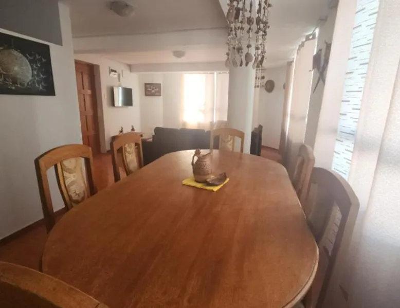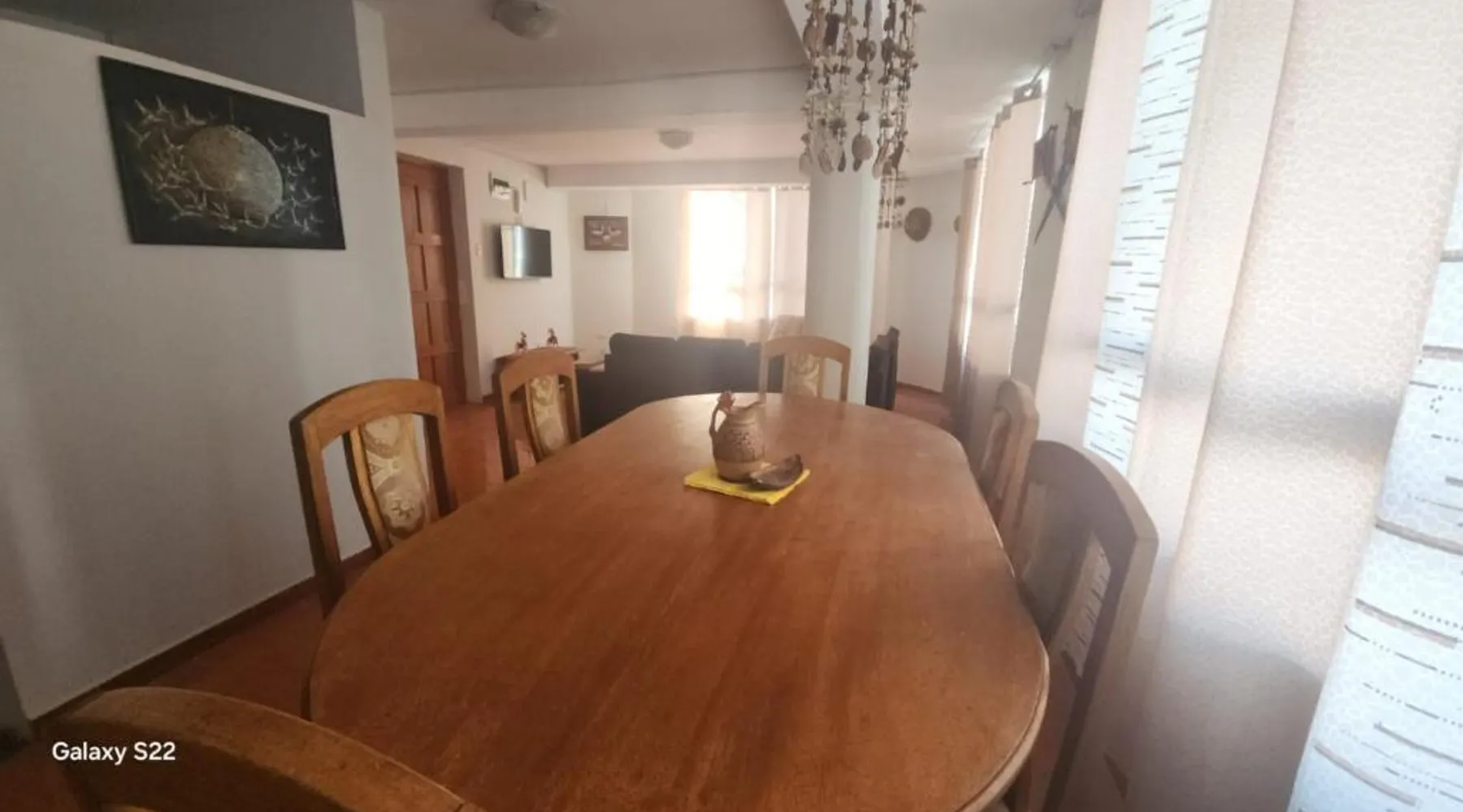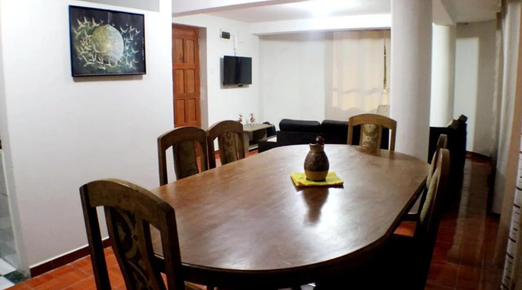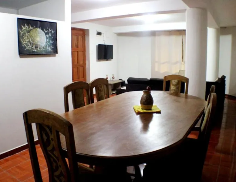 Modern Comforts: Casa rutz cusco in Cusco offers a recently renovated holiday home with three bedrooms and a living room. Free WiFi and a sun terrace provide relaxing spaces. Convenient Facilities: Guests enjoy a shared kitchen, lounge, and family rooms. Additional amenities include free parking, bicycle parking, bike hire, tour desk, and luggage storage. Local Attractions: Located 1.2 mi from Alejandro Velasco Astete International Airport, the property is near Wanchaq Train station (13-minute walk), Central bus station (984 feet), and Santo Domingo Church (1.2 mi). Activities and Services: The holiday home offers pub crawls and bike tours. Reception staff speak English and Spanish. The holiday home offers a sofa, as well as a shared bathroom featuring a shower. Meals can be prepared in the kitchen, which is equipped with a refrigerator, kitchenware and an electric kettle. The holiday home provides a seating area, a dining area, a wardrobe, a flat-screen TV, as well as mountain views. The unit offers 5 beds.