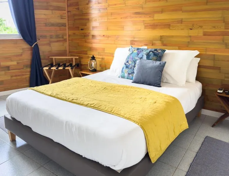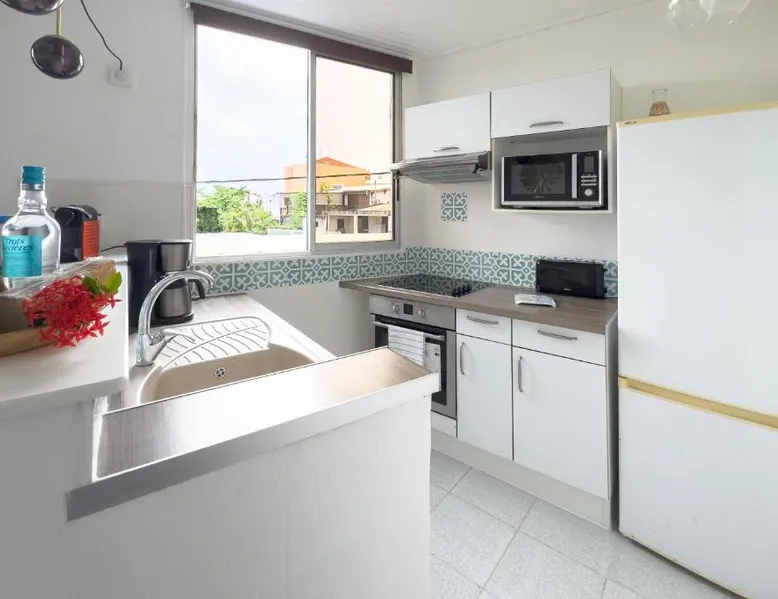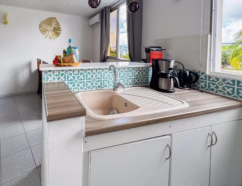 Comfortable Living: Ti Arums - Appt climatisé vue mer in Les Trois-Ilets offers a one-bedroom apartment with a living room. The property features a fully equipped kitchenette, air-conditioning, and free WiFi. Modern Amenities: Guests can enjoy sea views, a washing machine, and a dining table. The apartment includes a refrigerator, microwave, oven, toaster, electric kettle, and kitchenware. Additional amenities include a hairdryer, TV, and wardrobe. Prime Location: Located a few steps from Anse Mitan, the apartment is 1.2 mi from Anse a l'Ane Beach. Martinique Aime Cesaire International Airport is 16 mi away. Scuba diving opportunities are available in the surrounding area. This air-conditioned apartment is consisted of of 1 living room, 1 separate bedroom and 1 bathroom with a shower. Meals can be prepared in the well-fitted kitchen, which comes with a refrigerator, kitchenware, an oven and a microwave. The apartment offers a TV with cable channels, a washing machine, a tea and coffee maker, a wardrobe as well as sea views. The unit offers 2 beds.