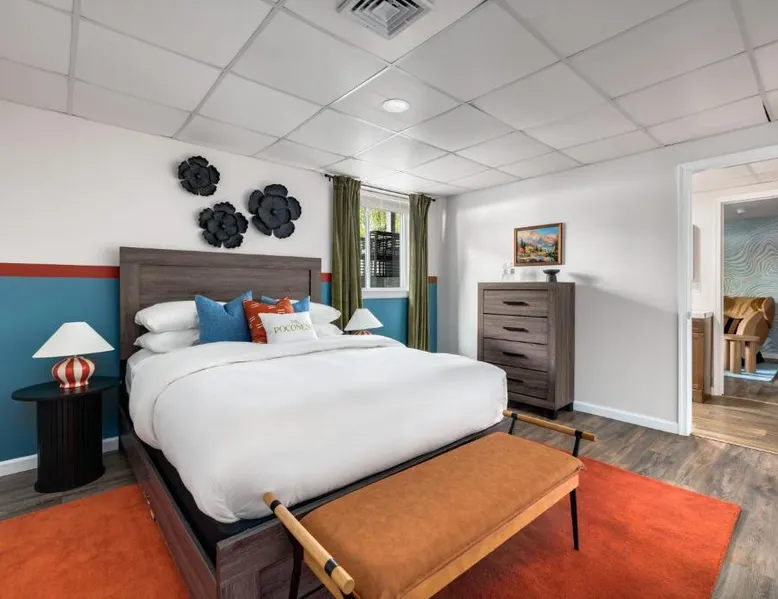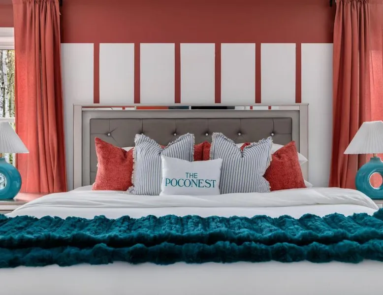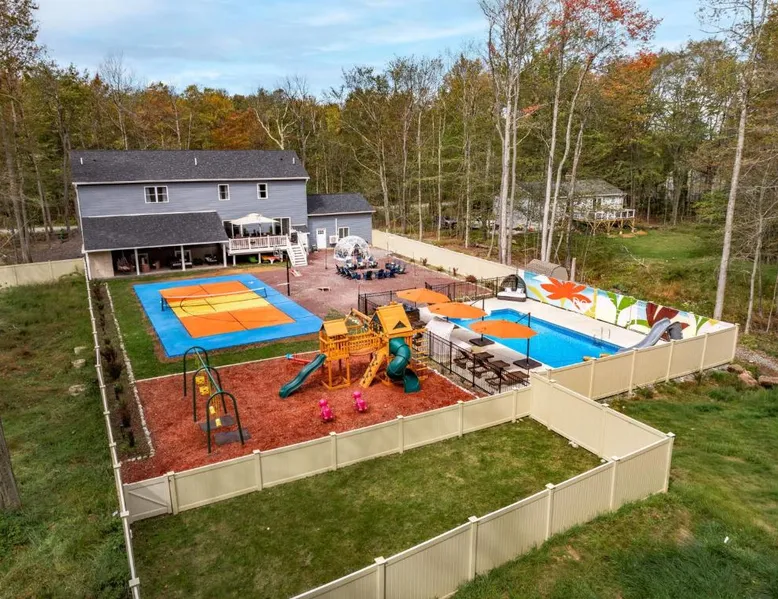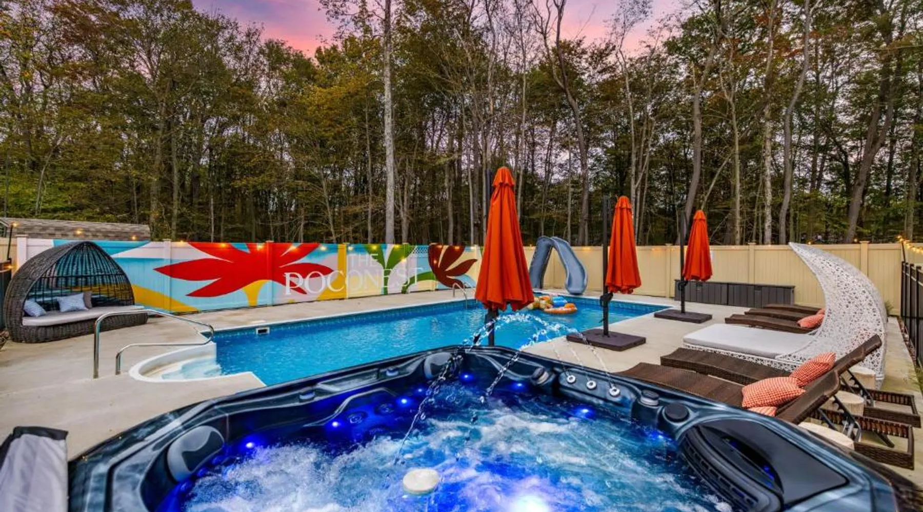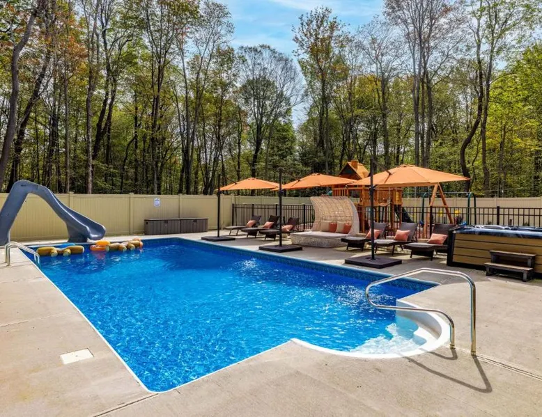 Spacious Accommodations: The Poconest - Luxurious Mountain Mansion in Long Pond offers six bedrooms and six bathrooms. The property features a private pool, sauna, and outdoor swimming pool. Guests enjoy a garden and free WiFi throughout the holiday home. Leisure Facilities: The holiday home includes a waterpark, games room, and hot tub. Additional amenities include air-conditioning, streaming services, washing machine, and a fully equipped kitchen. Free on-site parking is available for guests. Local Attractions: Located 39 mi from Lehigh Valley International Airport, the property is near Delaware Water Gap National Recreation Area (26 mi), Pocono Raceway (4.3 mi), Kalahari Waterpark (7.5 mi), Jack Frost Mountain Resort (11 mi), and Great Wolf Lodge Pocono Mountains (14 mi). Cycling activities are available nearby. This luxurious holiday home has a private pool, a hot tub and a sauna. Featuring a private entrance, this spacious holiday home also consists of 6 separate bedrooms and 6 bathrooms with a bath and a hairdryer. Guests will find a stovetop, a refrigerator, a dishwasher and kitchenware in the well-equipped kitchen. The holiday home also offers a barbecue. This holiday home features air conditioning, a washing machine, a TV with streaming services and a patio. The unit offers 10 beds.