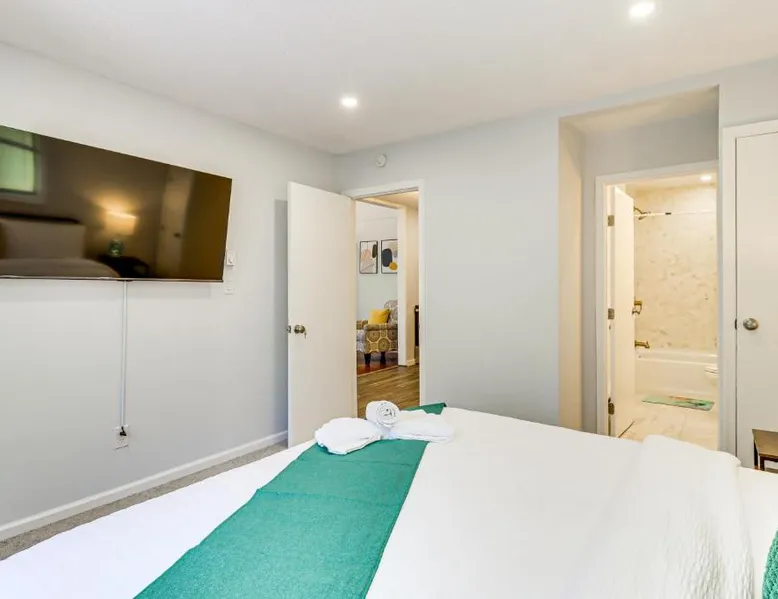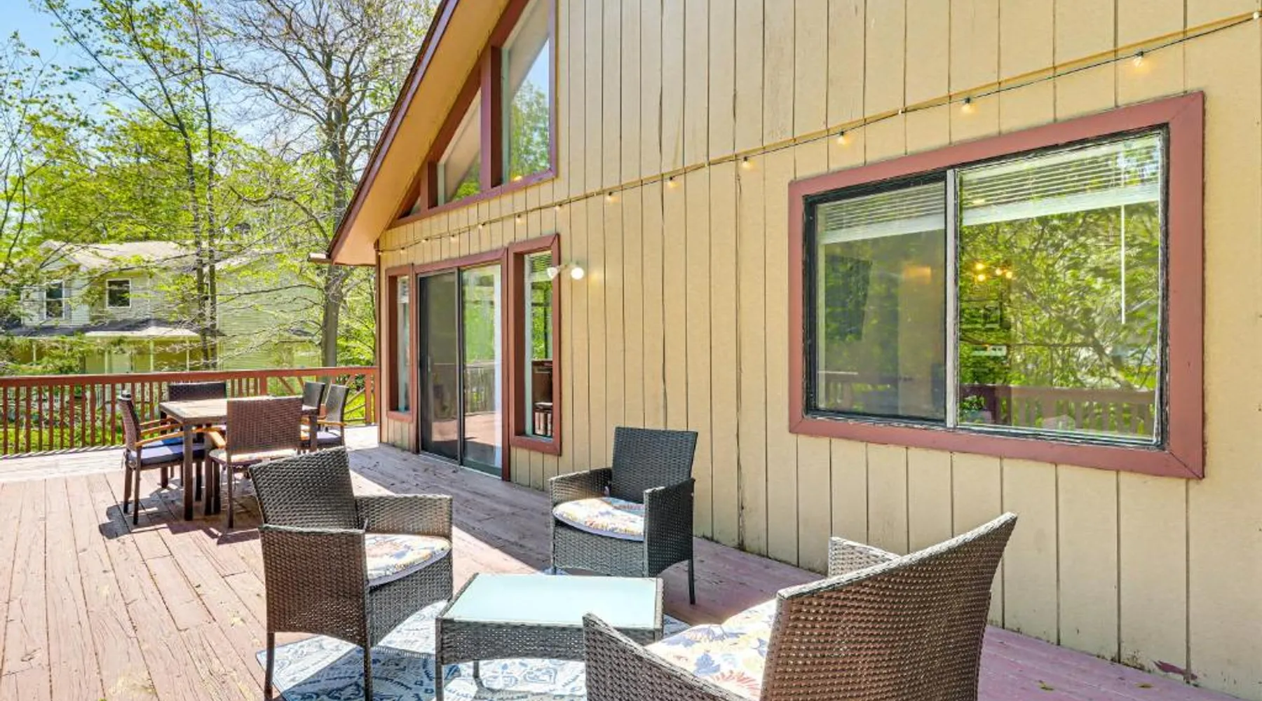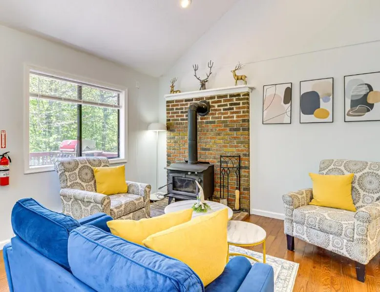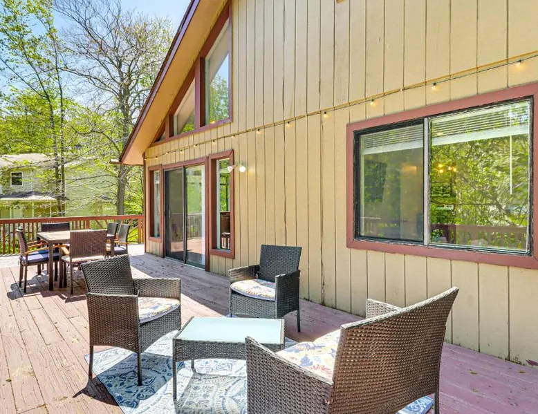 Spacious Accommodations: Poconos Family Home with Lake Access and Game Room in Tobyhanna offers three bedrooms and three bathrooms. The living room includes a fireplace and dining area. Outdoor Amenities: Guests can enjoy an outdoor swimming pool and a games room. Free WiFi is available throughout the property. Convenient Facilities: The holiday home features air-conditioning, a washing machine, and a fully equipped kitchen. Additional amenities include a barbecue, dishwasher, and free toiletries. Local Attractions: Wilkes-Barre/Scranton International Airport is 40 mi away. Nearby attractions include Delaware Water Gap National Recreation Area (26 mi), Kalahari Waterpark (9.3 mi), and Great Wolf Lodge Pocono Mountains (12 mi). This holiday home's standout feature is the fireplace. Boasting a private entrance, this air-conditioned holiday home includes 2 living rooms, 3 separate bedrooms and 3 bathrooms with a bath and a shower. The holiday home's kitchen, which has a dishwasher and kitchenware, is available for cooking and storing food. The spacious holiday home offers a washing machine, a coffee machine, tumble dryer, a barbecue and a flat-screen TV. The unit has 5 beds.