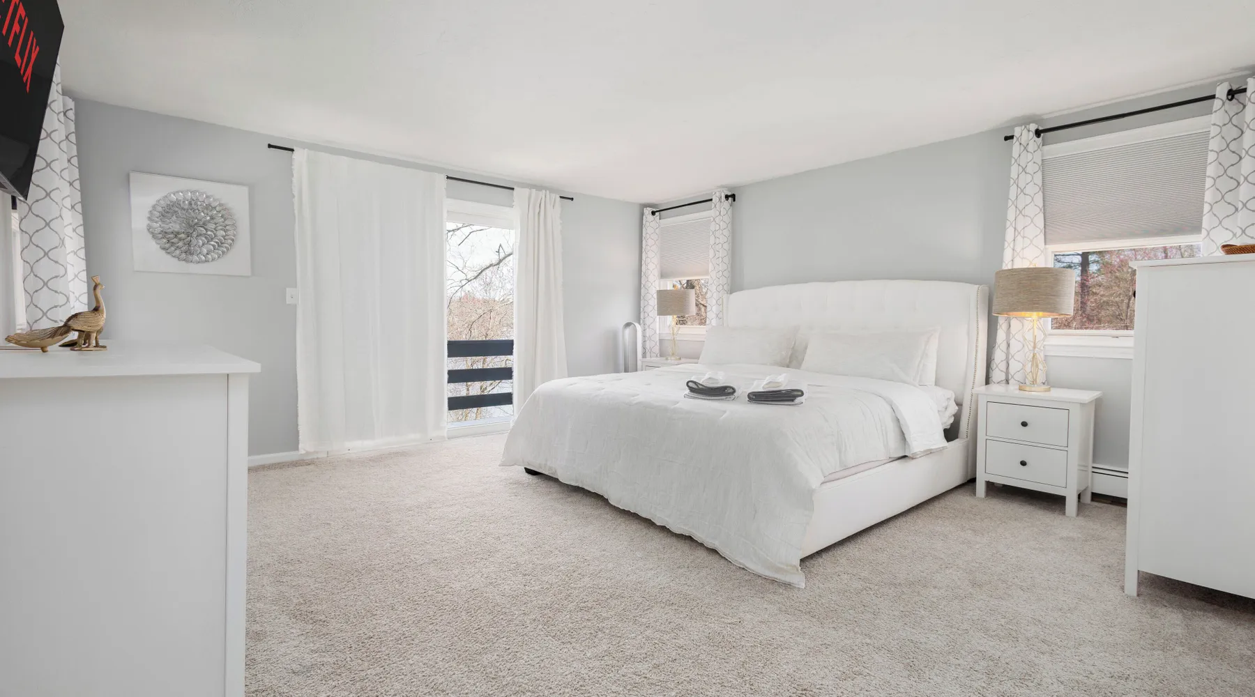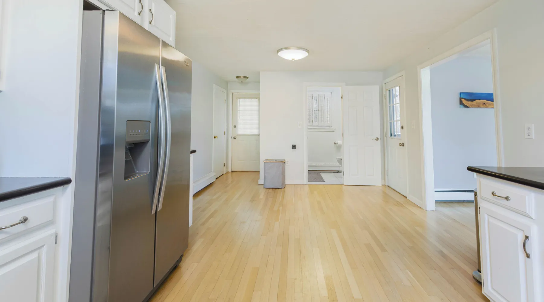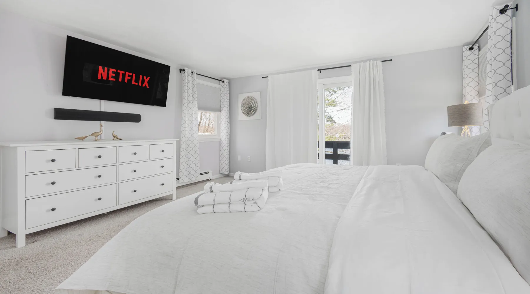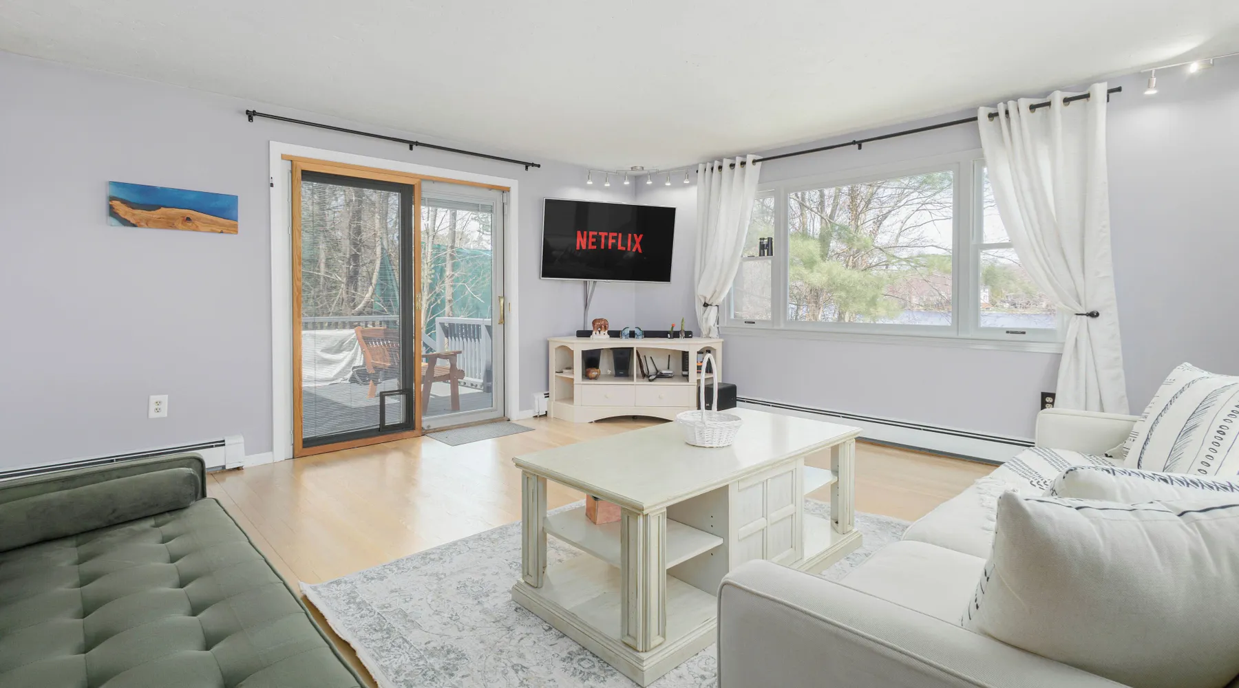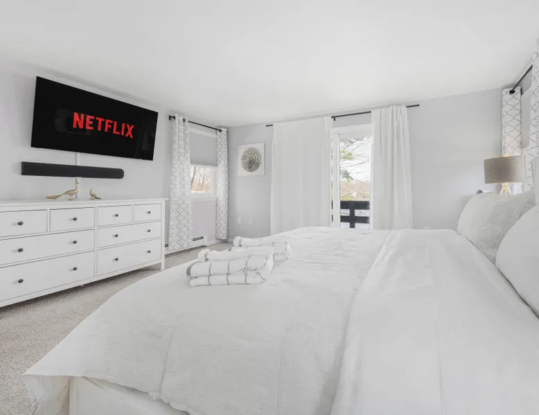 This lake house is a Hidden Gem! The perfect house for a getaway, visit to Boston and to explore all the local amenities. Designed for relaxation, bring your family and friends to this peaceful home. Equipped with a private and peaceful backyard, dock and firepit. This home will have you leaving your worries at the door. The space Main floor: > Fully stocked kitchen w/ Coffee and Tea provided > Dining area: 6 person dining table > Living room: 2 couches + TV w/ Roku > Washroom Top Floor: > Full Bathroom with Shower > Bedroom 1: 1 King Bed + ensuite Full Bathroom w/ Bathtub > Bedroom 2: 1 Queen Bed > Bedroom 3: 1 Queen Bed + Computer Monitor and Desk Ground floor / Lower Level: >Washer and Dryer > Gym Weight Set > Desk > Small Couch with TV Outside > Outdoor seating on the Deck >BBQ > Dock w/ Firepit We supply towels and linens, basic toiletries, body wash, shampoo & conditioner. The kitchen includes basic cooking utensils, oil and spices. We also provide a roll of paper towel and a few rolls of toilet paper to get you started. Please plan accordingly for the length of your stay. Considerations - This home is on a lake, all children must be supervised. From the front door there are several steps to get up into the home, this front door is where the electronic door lock is located. There are several steps to get onto the deck from the outside. From the Livingroom, the deck is on the same level. Home is located in a small neighborhood with many families, quiet hours are strictly enforced. 19 Miles / ~35min drive to TD Garden 21 Miles /~30min drive to Gillette Stadium 30 Miles /~40min drive to Xfinity Center *** We reserve the right to conduct additional guest screening outside of the booking platform. The guest is responsible for the additional $40 non-refundable fee. If your account was created within a year, or have less than 3 reviews, you will be required to perform this background check. *** Booking a stay at this home is acknowledgement of this. Booking your stay gives us as the manager and our 3rd party vendor to screen your identity and check criminal databases to confirm your reservation. Complete terms regarding guest screening can be found on Tenant Alert's website. *** You will receive an automated message with a link to the screening once your reservation is confirmed, this process must be completed within 3 days. Your reservation will not be finalized until this is completed. Please reach out with an inquiry for an questions prior to making a reservation.